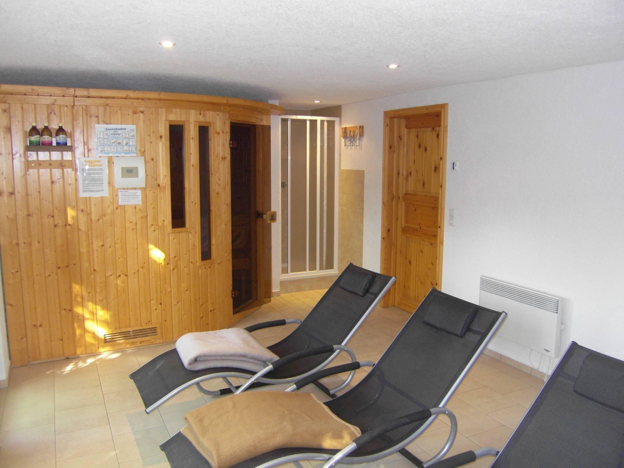 Wellness: Gemeinschaftssauna und Ruheraum in der Anlage für entspannende Momente