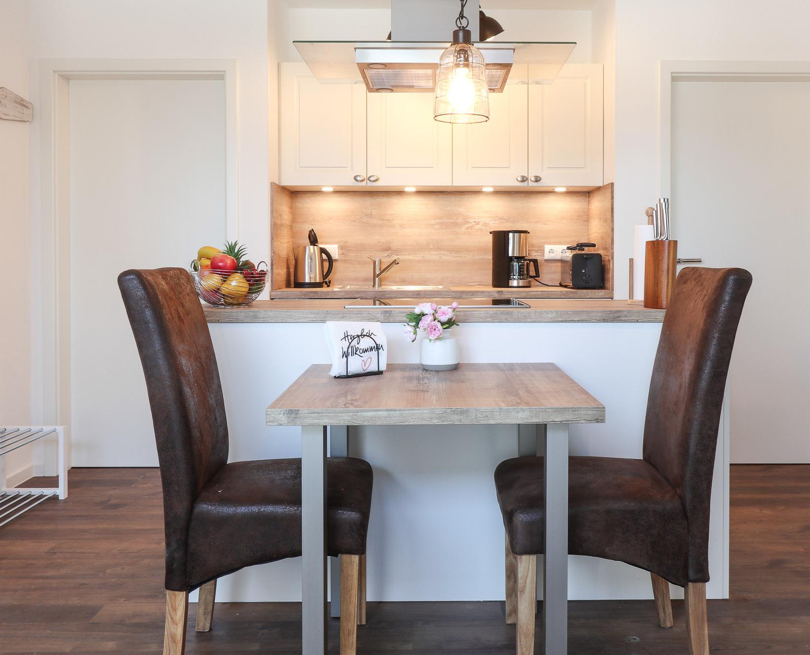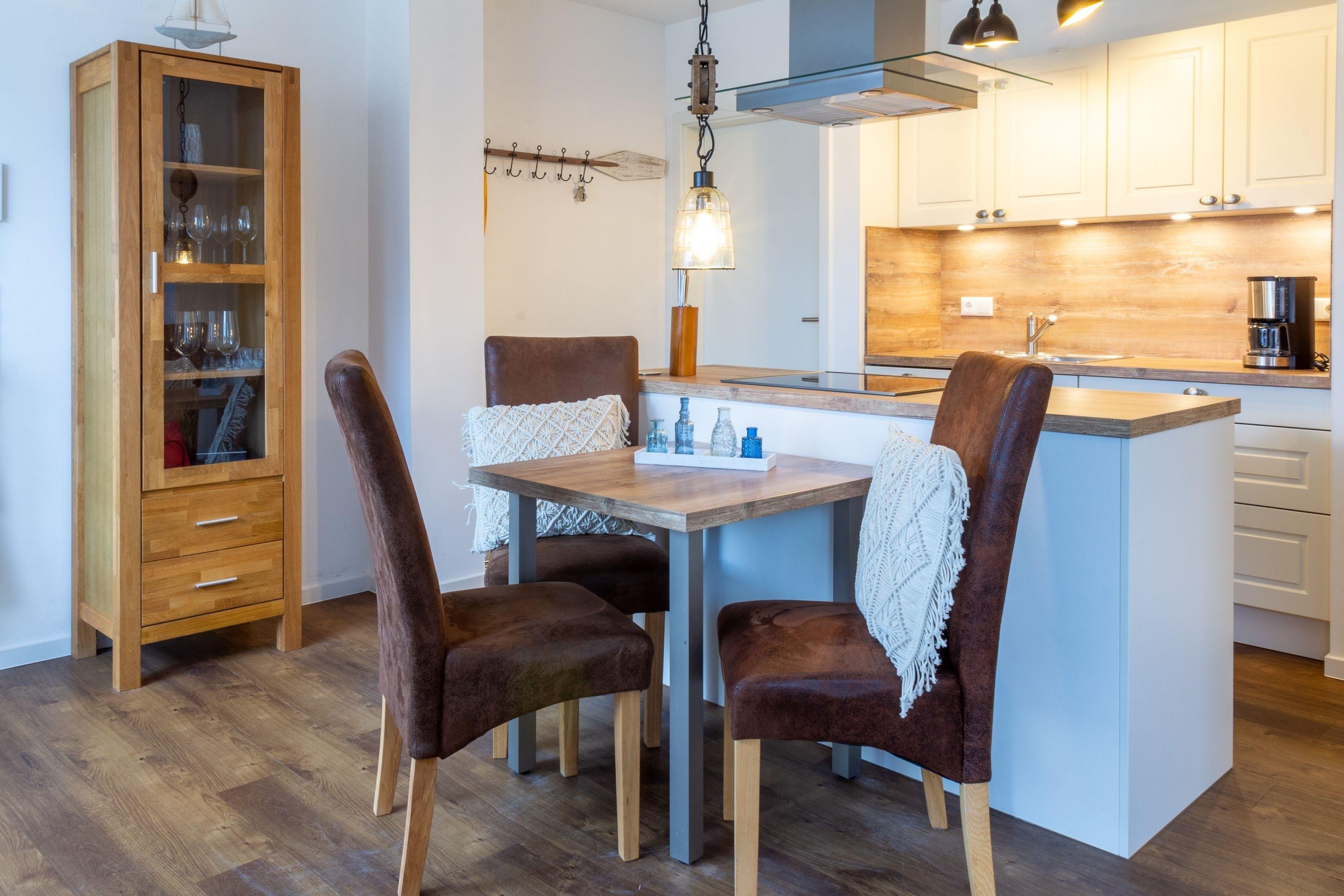 Die Ferienwohnung "Sterntaucher, Whg. 03" empfängt Sie mit einer harmonischen Kombination aus modernem Komfort und maritimem Ambiente. Der helle Wohnbereich mit Kamin lädt zu entspannten Stunden ein, während die voll ausgestattete Küche keine Wünsche offenlässt. Genießen Sie Ihre Mahlzeiten auf der eigenen Terrasse mit Blick ins Grüne. Das luxuriöse Badezimmer und das gemütliche Schlafzimmer bieten zusätzlichen Komfort für erholsame Nächte.