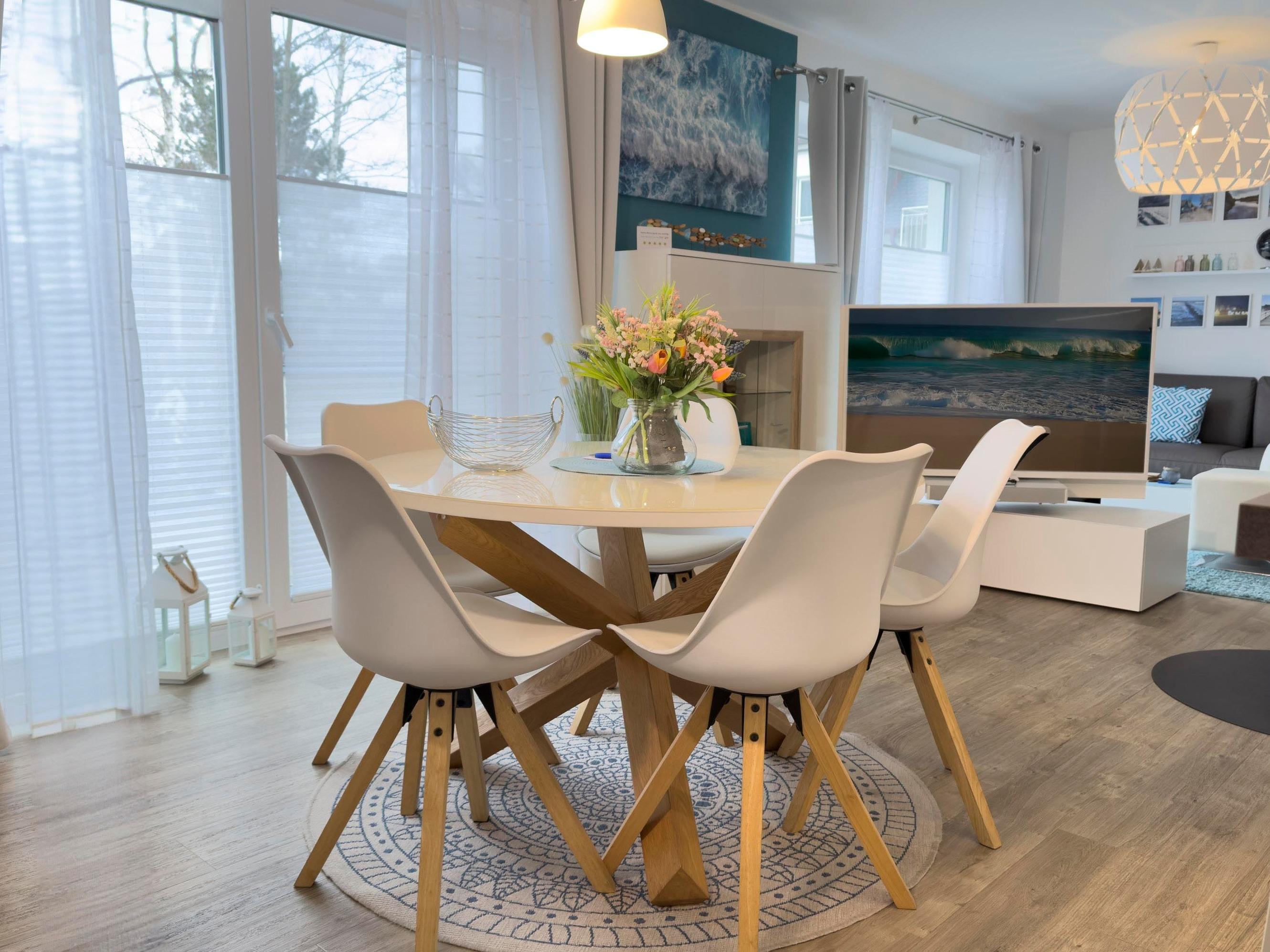 Willkommen in der Ferienwohnung "Sterntaucher, Whg. 04 'Seaside'" in Prerow! Diese stilvolle Unterkunft bietet auf 61 m² Platz für bis zu 4 Personen und verbindet modernen Komfort mit maritimem Flair.