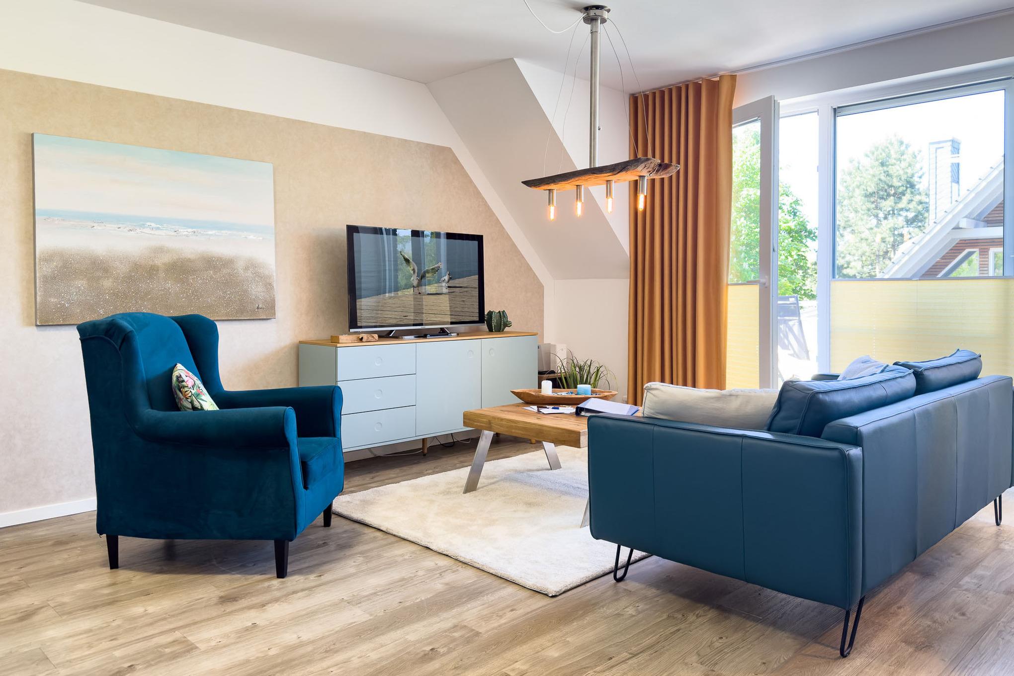 Die Ferienwohnung "Tordalk, Whg. 06" empfängt Sie mit einer harmonischen Kombination aus modernem Komfort und maritimem Ambiente. Der helle Wohnbereich mit Kamin lädt zu entspannten Stunden ein, während die voll ausgestattete Küche keine Wünsche offenlässt. Genießen Sie Ihre Mahlzeiten auf dem westlich ausgerichteten Balkon und lassen Sie den Tag in gemütlicher Atmosphäre ausklingen. Die modernen Badezimmer und die komfortablen Schlafzimmer bieten zusätzlichen Komfort für erholsame Nächte.