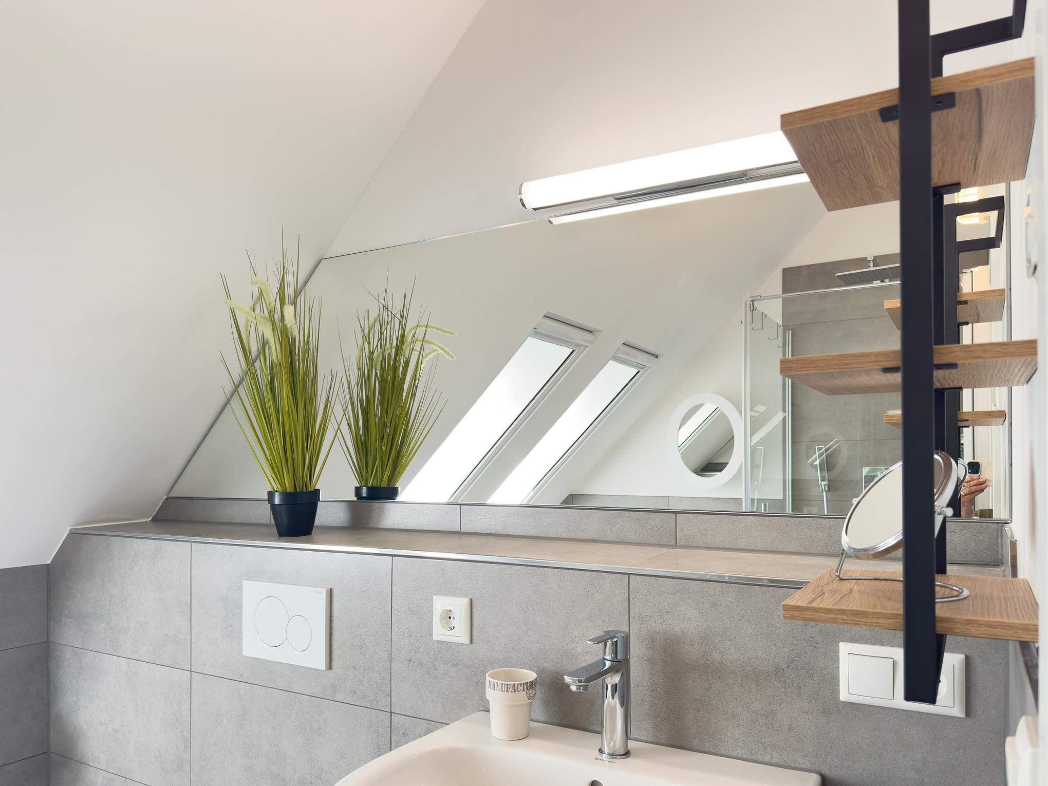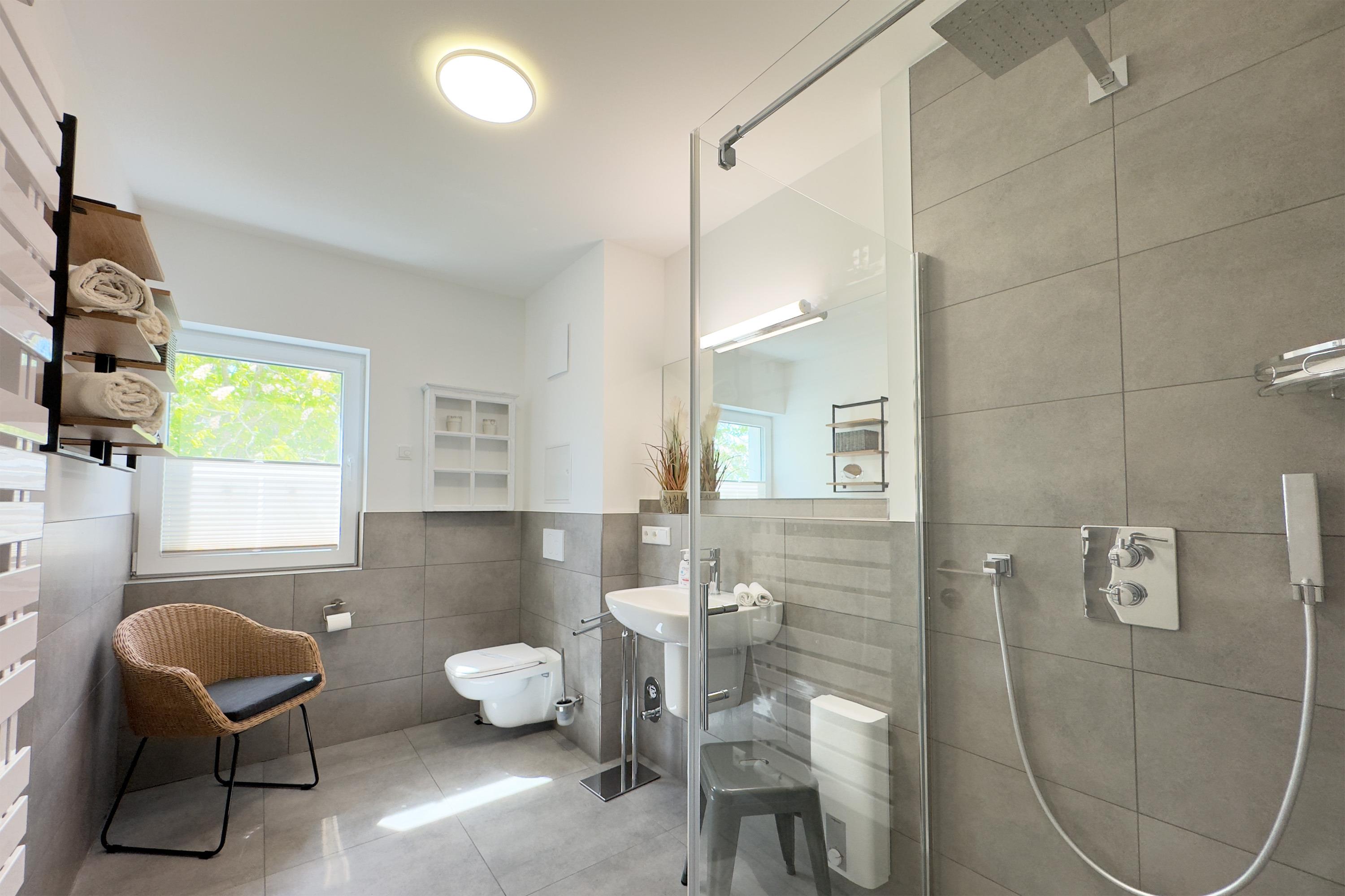 Badezimmer: Fußbodenheizung, ebenerdige Dusche und eine zusätzliche Dusche für noch mehr Komfort.