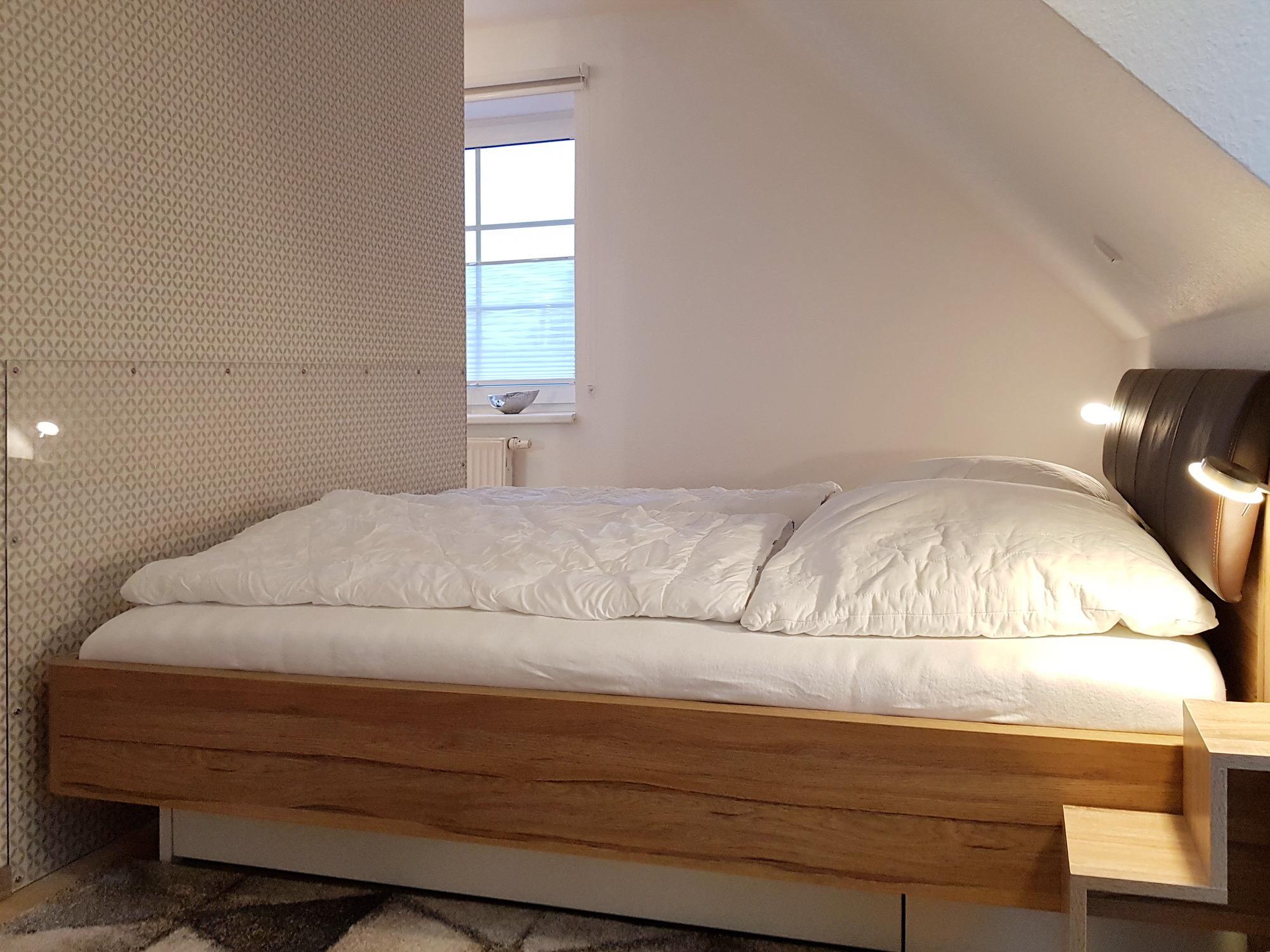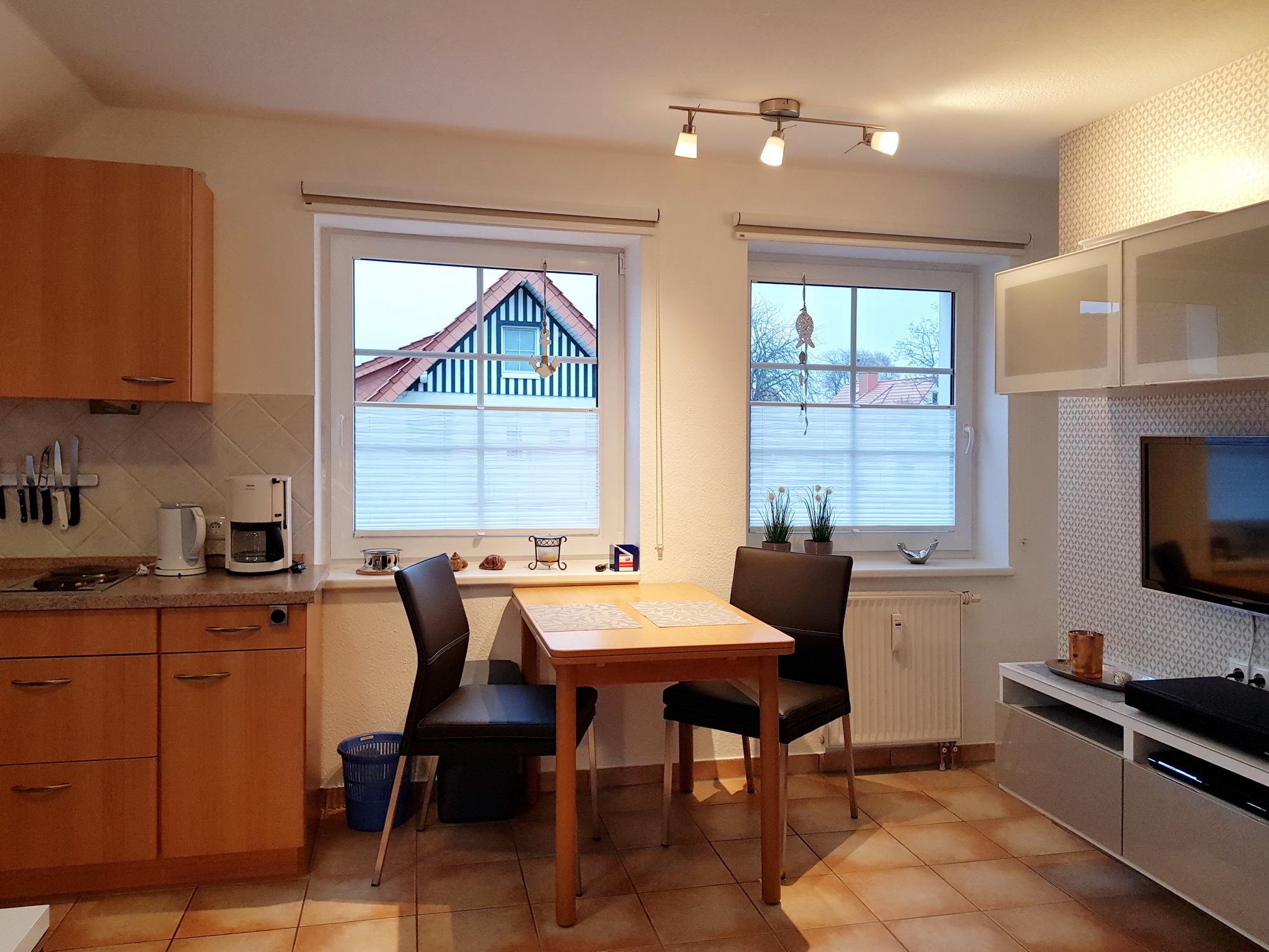 Die Fewo (36 qm) ist hell und freundlich eingerichtet und mit allem Komfort ausgestattet. In der Küchenzeile gehören eine Mikrowelle, eine Geschirrspülmaschine sowie ausreichend Geschirr mit zur Ausstattung. Die Küche wurde 2022 komplett erneuert.