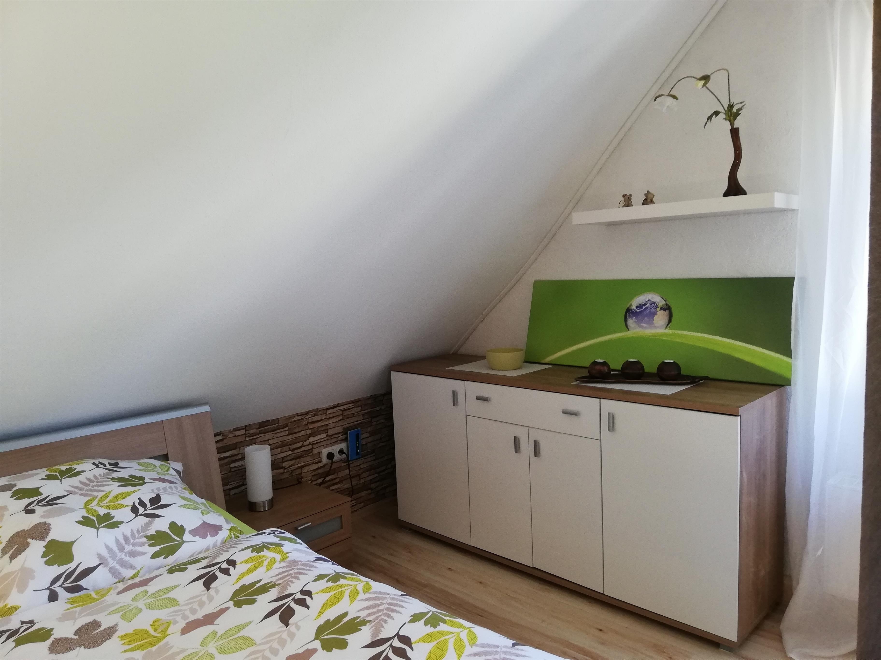 Der weitere Schlafraum besitzt 2 Einzelbetten 1,0 x 2,0m. Nachtkonsolen und einen kleinen Kleiderschrank für Ihre Garderobe.