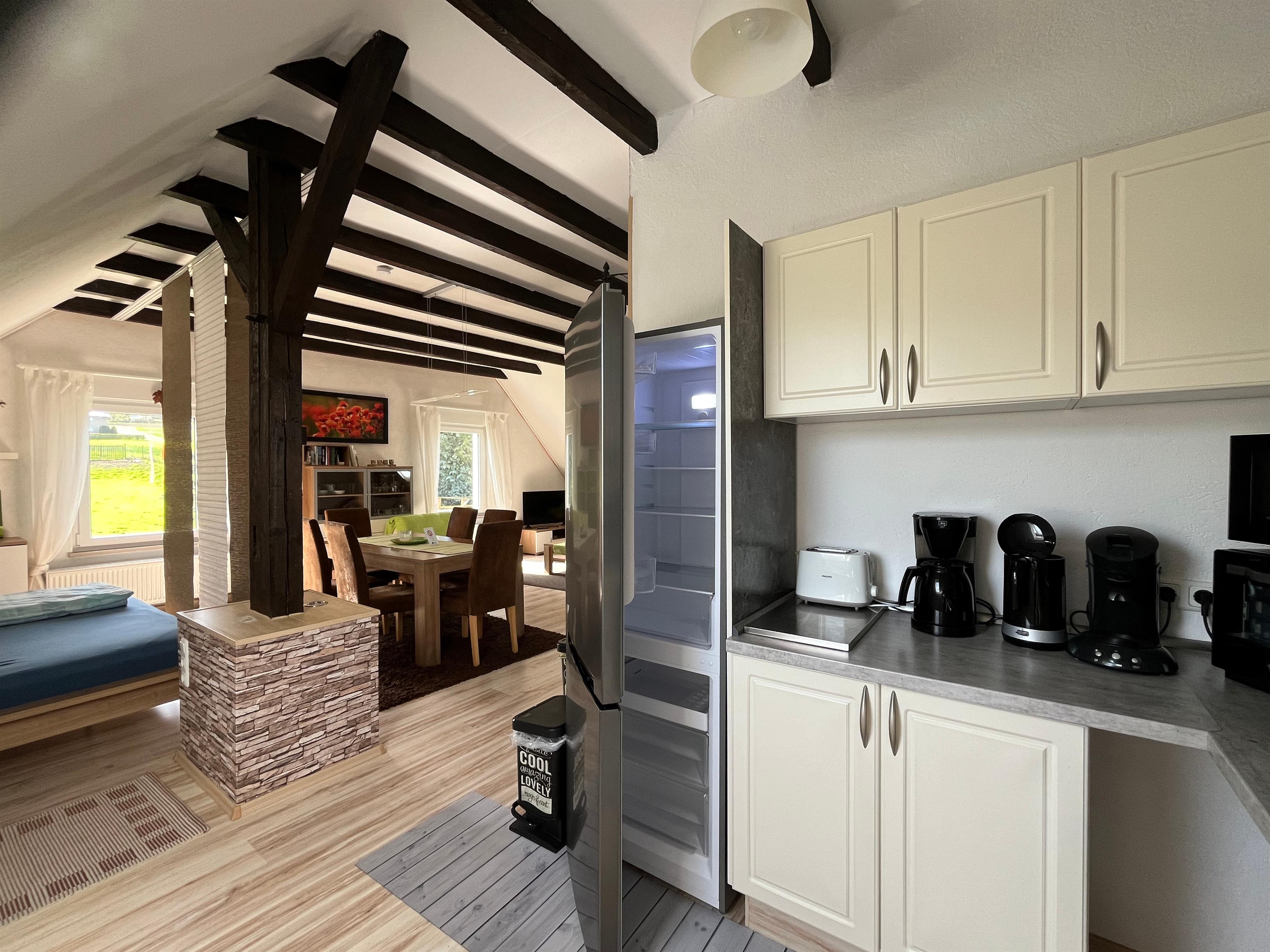 Platten Herd; Kaffee und Senseo-Maschine,Spülmaschine, Kühl und Gefrierschrank.
