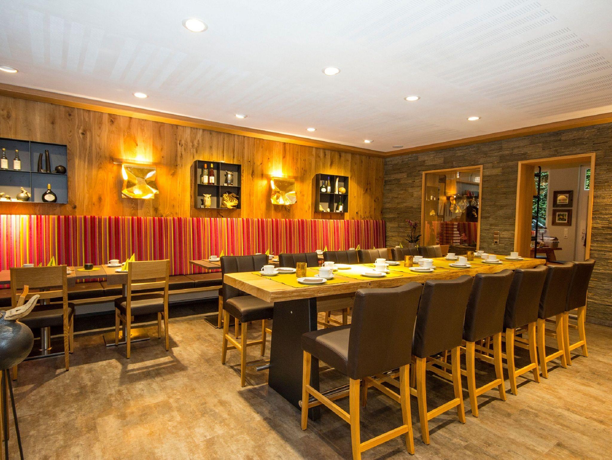 Dies servieren wir in unserem modern gestalteten Frühstücksraum am Buffet mit regionalen Produkten sowie hausgemachter Marmelade.