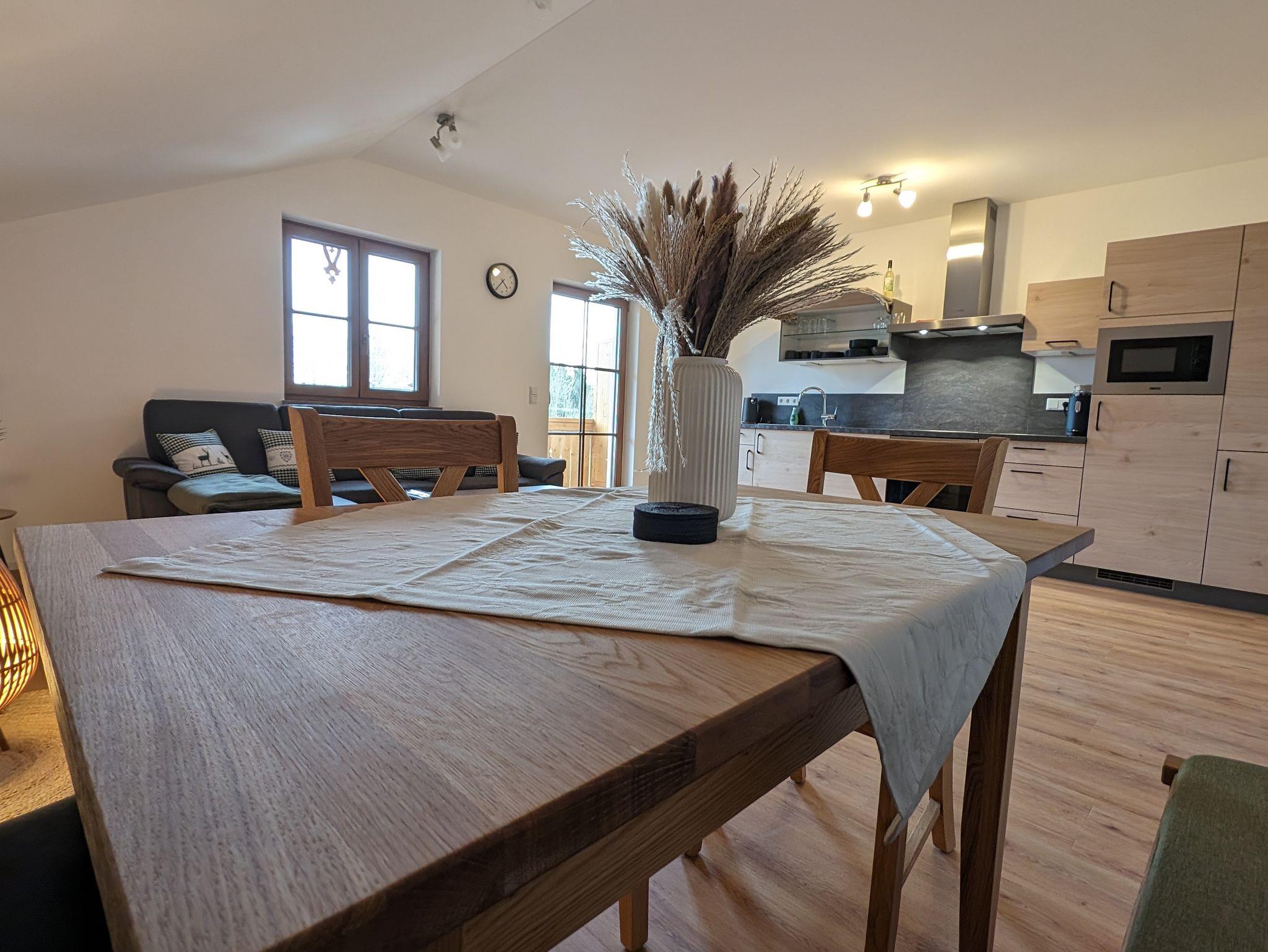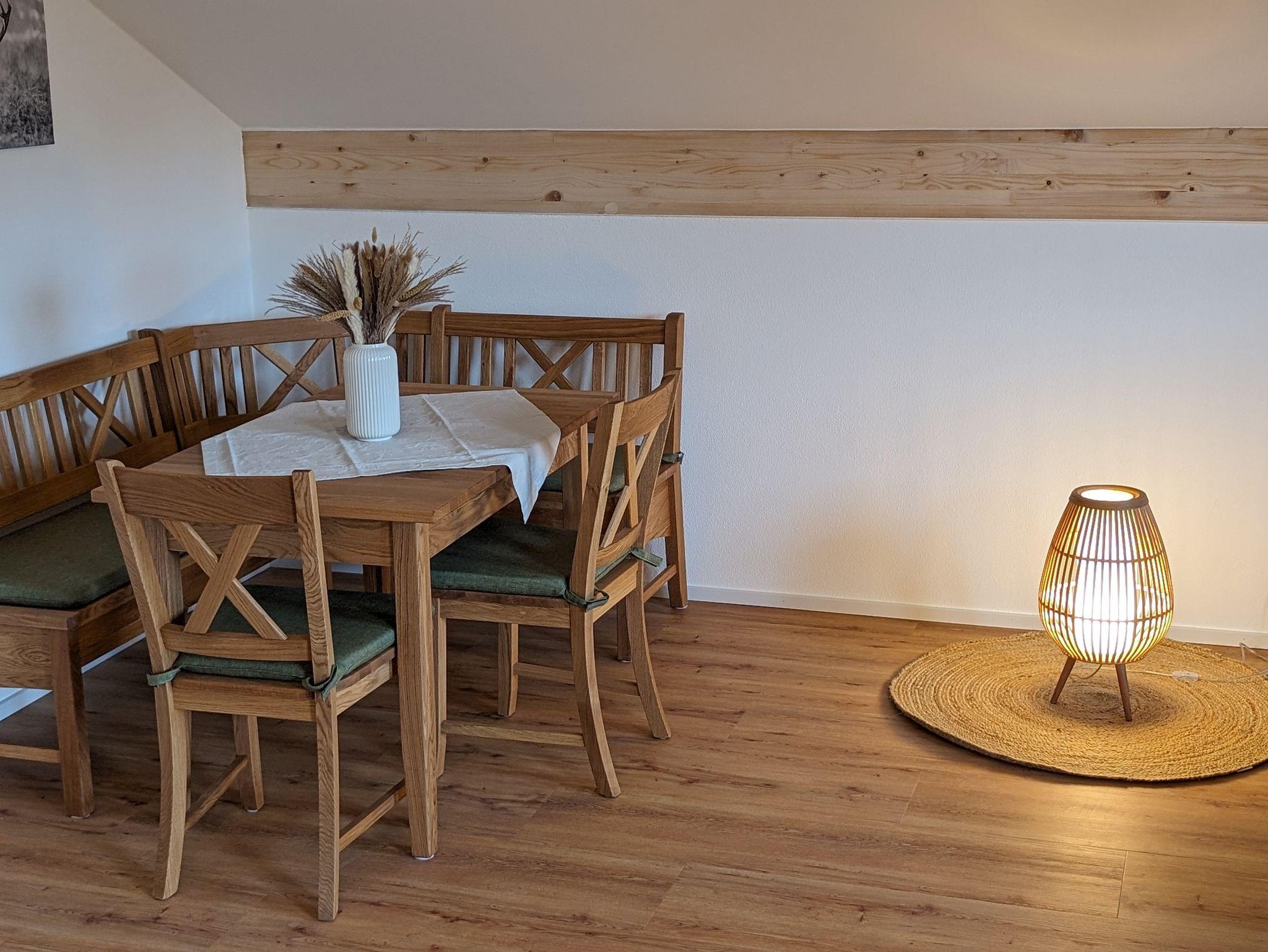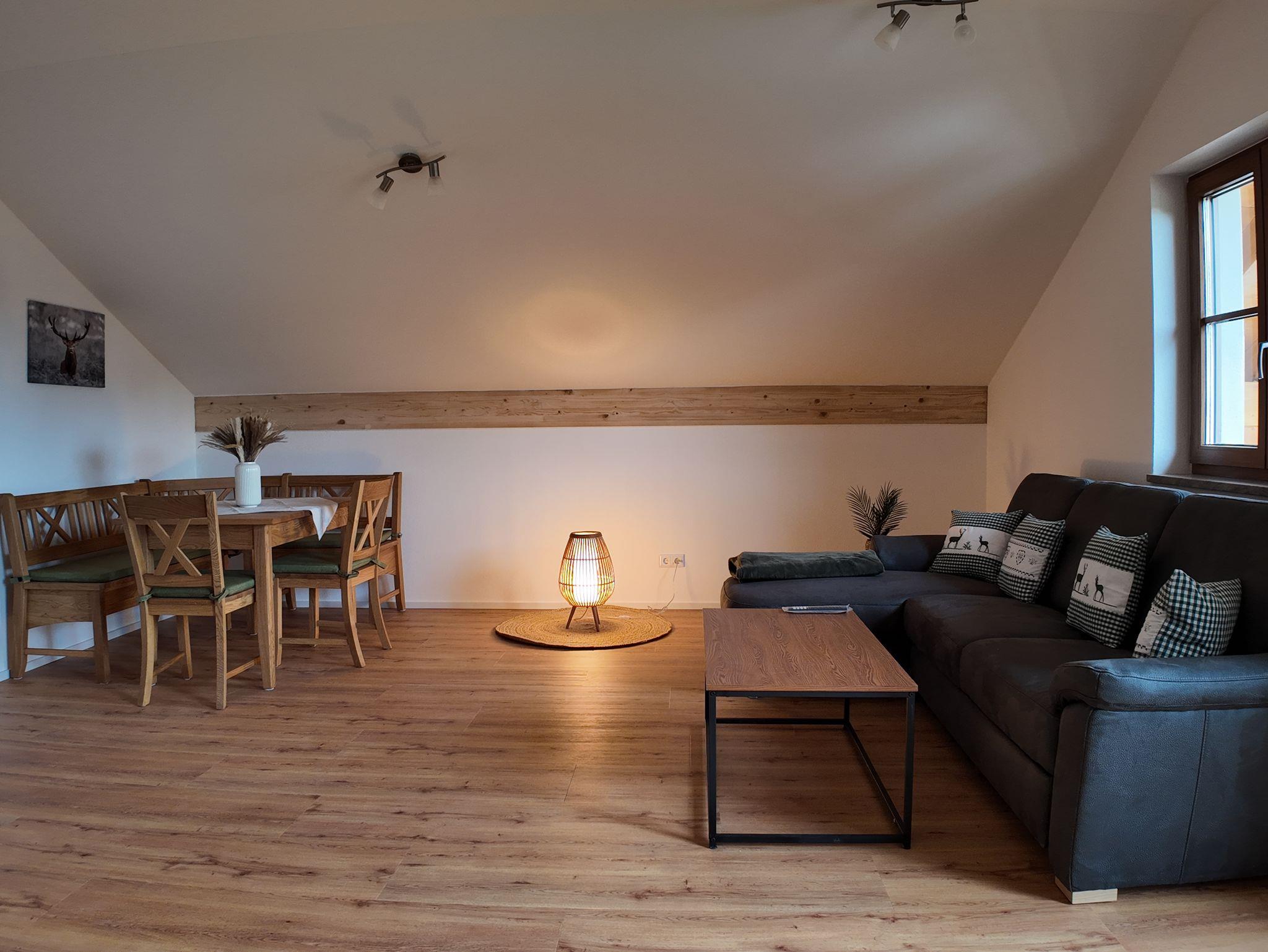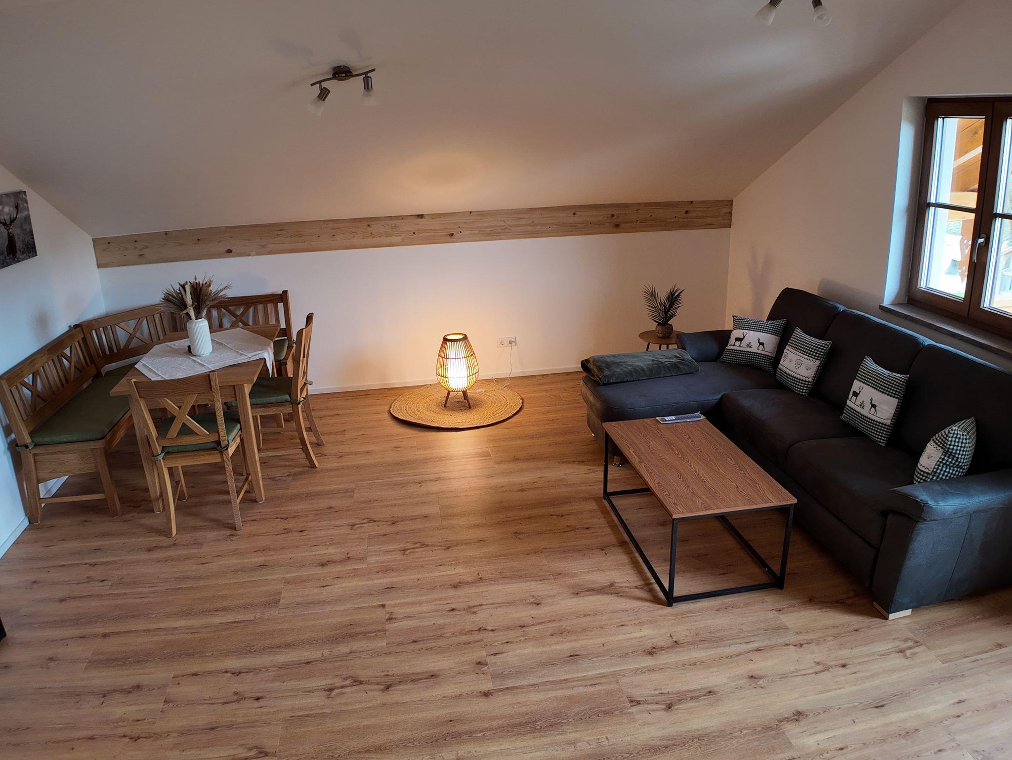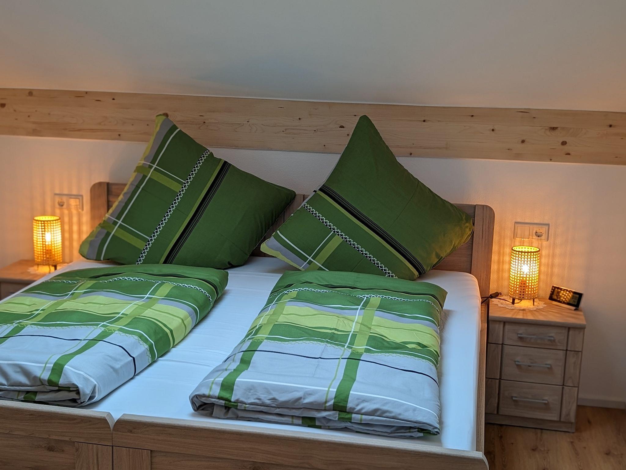 Die Ferienwohnung befindet sich im Dachgeschoss (2.Stock). Sie bietet Platz für bis zu 5 Personen. 2 Schlafzimmer und 1 Wohnküche In einem der Schlafzimmer ist es möglich zwischen einem Doppelbett oder zwei Einzelbetten zu wählen. Für eine 5te Person wäre eine Schlafcouch zur verfügung. Babybetten sind auf Anfrage verfügbar. Die Küchenzeile ist komplett ausgestattet mit E-Herd, Spülmaschine, Backofen und Mikrowelle. Geschirr und Besteck gehören zur Ausstattung dazu. Eine Kaffeemaschine, Wasserkocher und Toaster stehen ebenfalls zur Verfügung. Das Badezimmer verfügt über eine gemütliche Badewanne und einer Dusche, Föhn vorhanden. Das WC ist seperat Sat-TV und W-Lan vorhanden. Eine wunderschöne Aussicht haben sie von dem kleinen Ost Balkon. Eine Liegewiese um die Sonne zu genießen und ein Platz zum Grillen sind verfügbar. Liegen sind auf Anfrage Es ist optimal für Kinder geeignet es gibt Spielemöglichkeiten (Sandkasten, Rutsche, Trampolin, Schaukel) und es herrscht kein Autoverkehr. Ein Bäcker ist fußläufig erreichbar. Eine Rosi Mobil und eine Bushaltestelle sind vor der Haustür. Zum Zentrum sind es ca 1,5 km die sie auch gerne zu fuß fernab der Straße über einen schönen Wanderweg gehen können. /embed/1u0Pi27c6YU?si=IsGHO34UMxqf337f