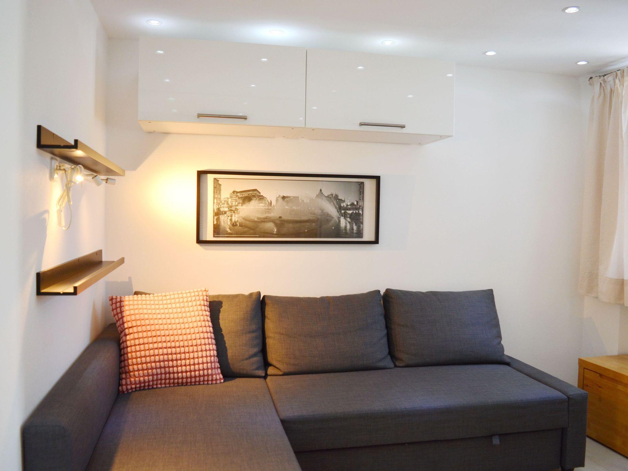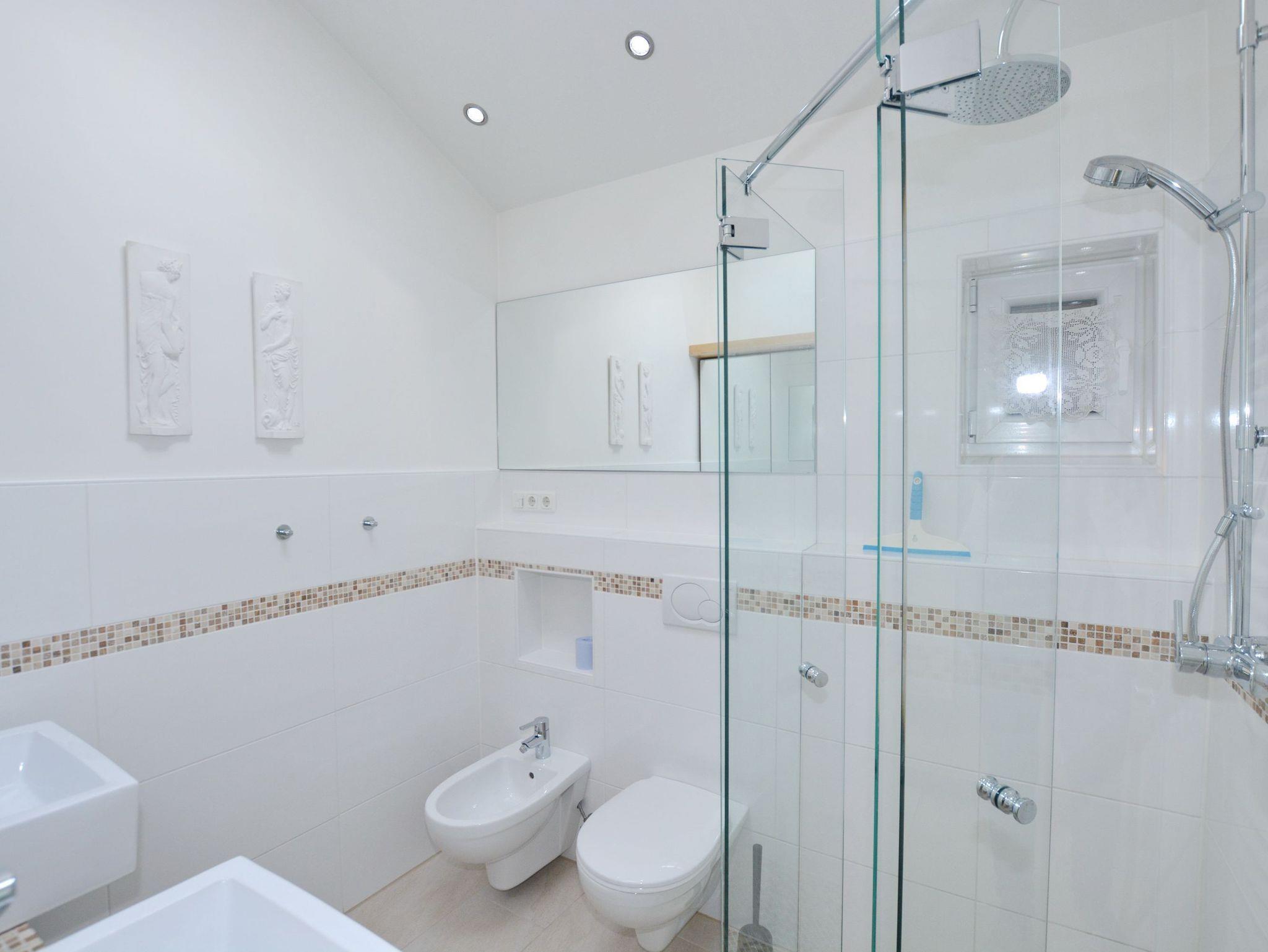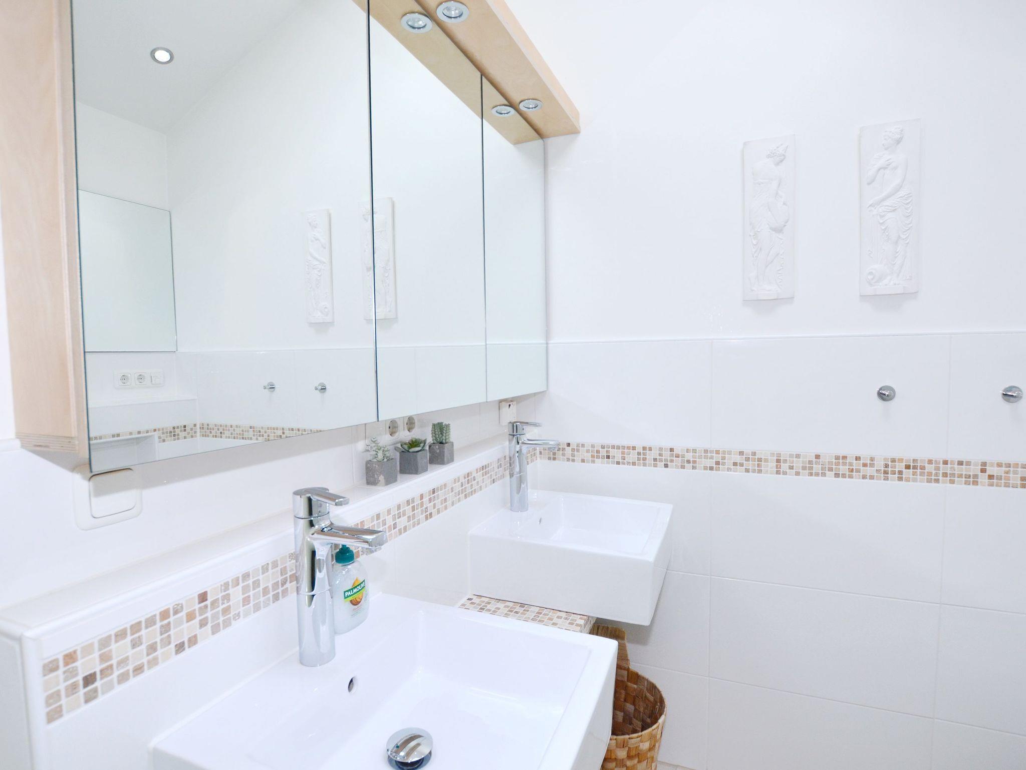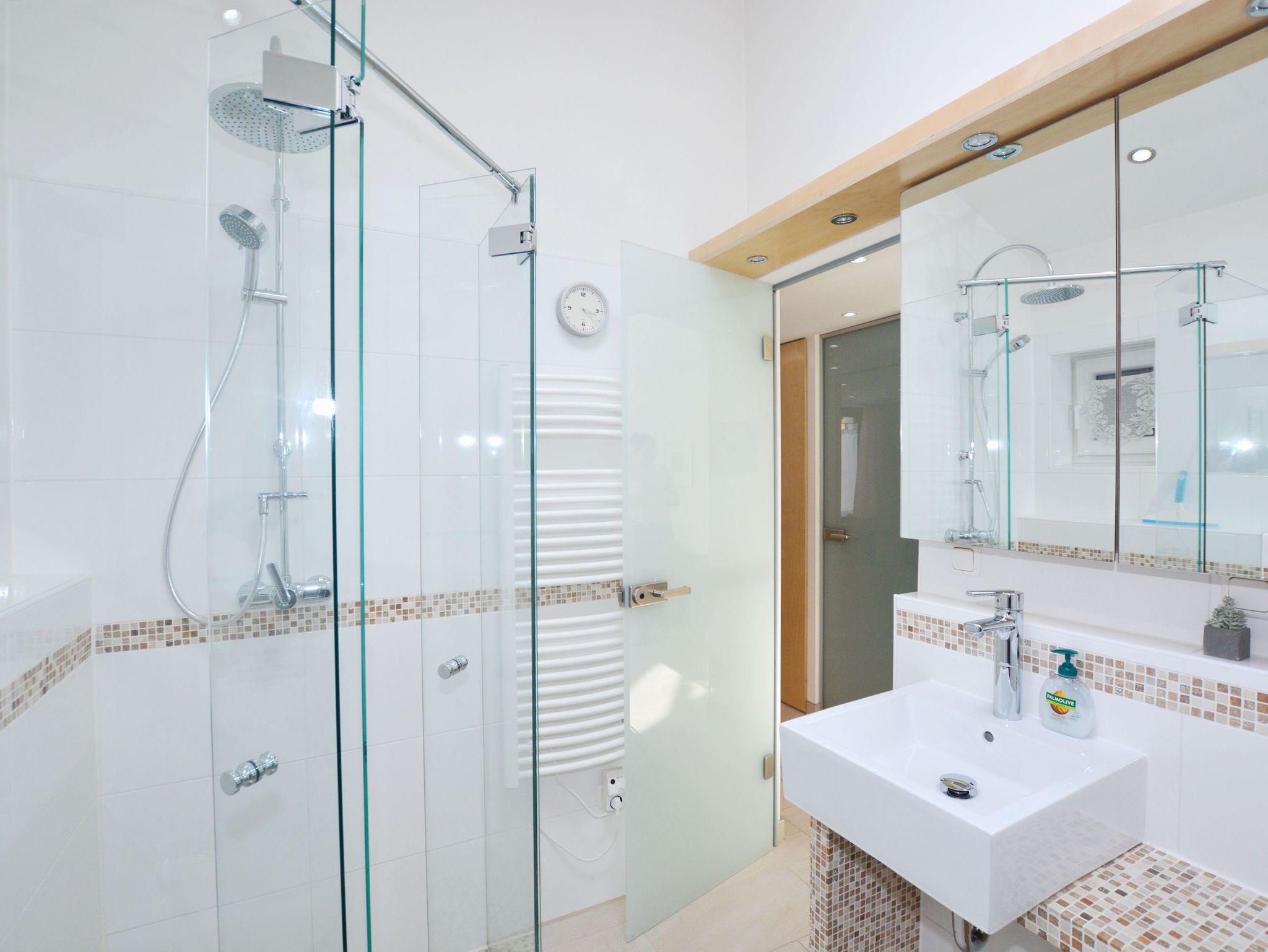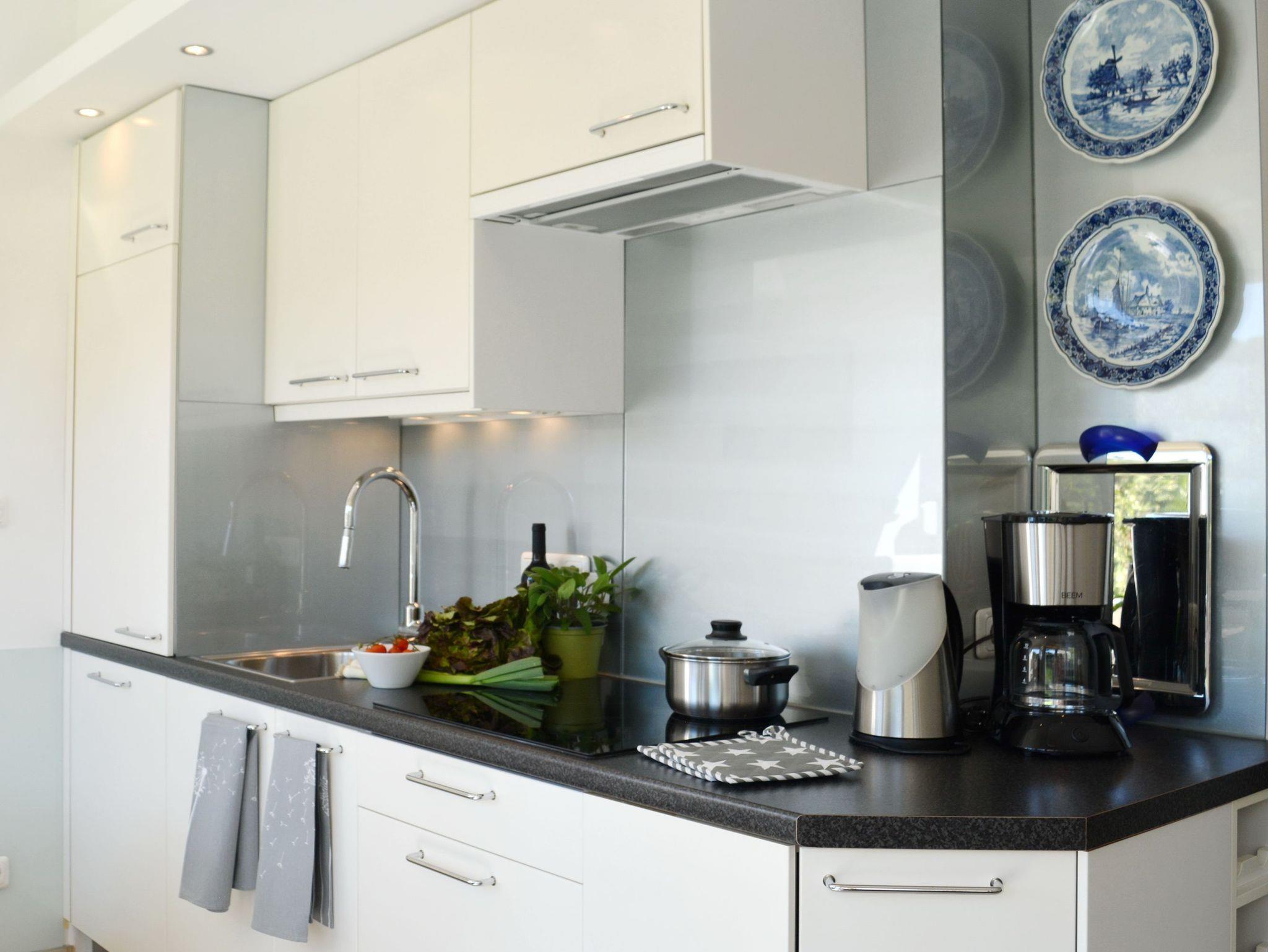 Im Herzen des kleinen, wunderschön gestalteten Häuschens befindet sich der helle und offene Wohnbereich. Hier kann man es sich auf dem Sofa vor dem knisternden Kaminfeuer gemütlich machen. Die offene Küche mit Essbereich ist direkt mit dem Wohnbereich verbunden. Ein besonderes Highlight ist der große Wintergarten, hier kann man die Seele baumeln lassen. Von dort aus gelangt man in den kleinen, eingewachsenen Garten, schöne Stunden sind schon jetzt vorprogrammiert. Einen weiteren Rückzugsort bietet der kleine, offene Wohnbereich mit Sofa und Fernseher im Eingangsbereich, der auch durch Schiebetüren abgetrennt werden kann. Im Erdgeschoss befinden sich außerdem ein Schlafzimmer mit Doppelbett, ein Flur und ein modernes Badezimmer mit Doppelwaschbecken, ebener Dusche mit Regenbrause und WC. Eine Treppe führt vom Wohnbereich zum Schlafbereich im Dachgeschoss, welcher ebenfalls mit einem Doppelbett ausgestattet ist - allerdings ist hier aufgrund der Dachschrägen kein aufrechtes Stehen möglich.