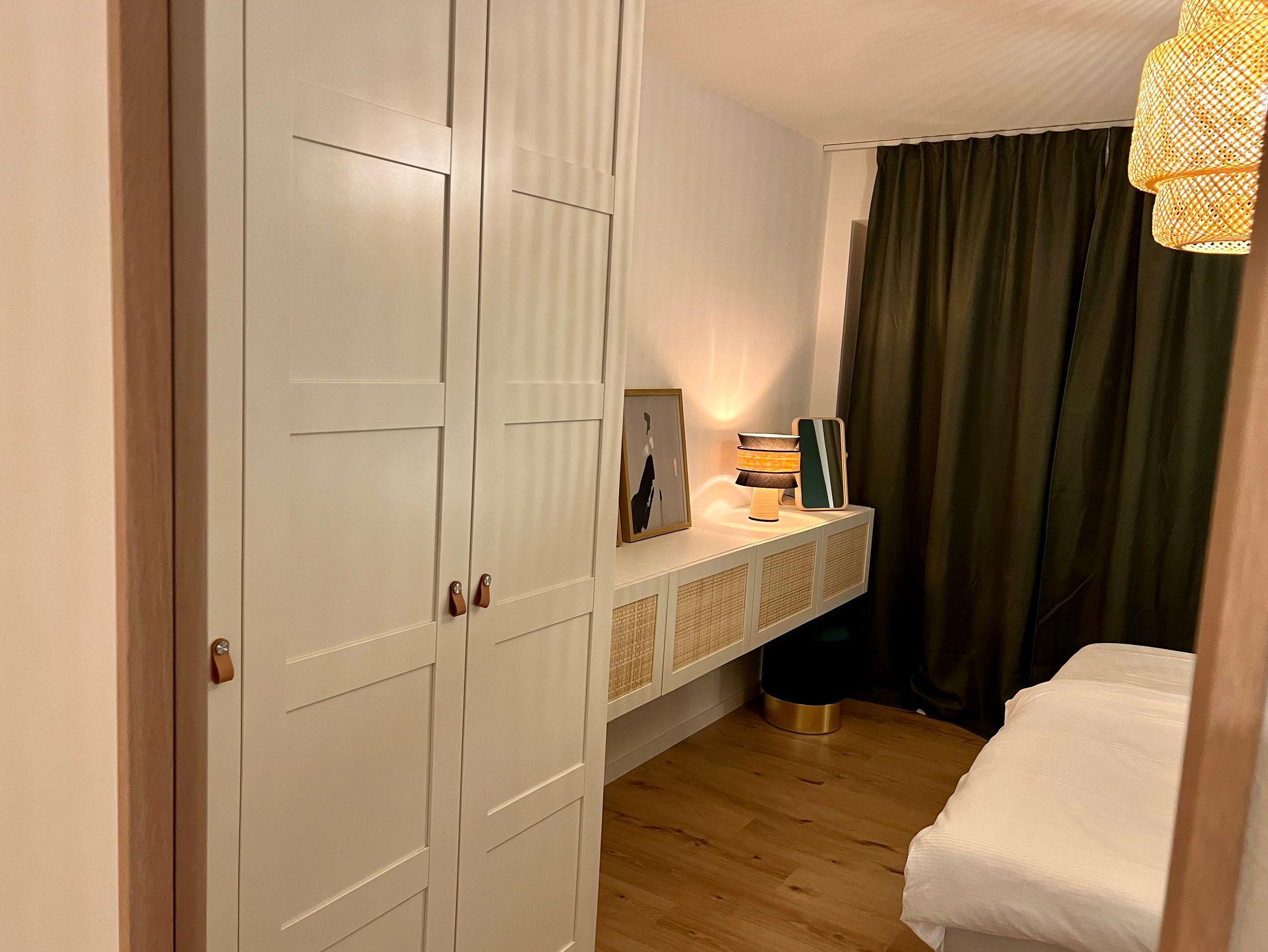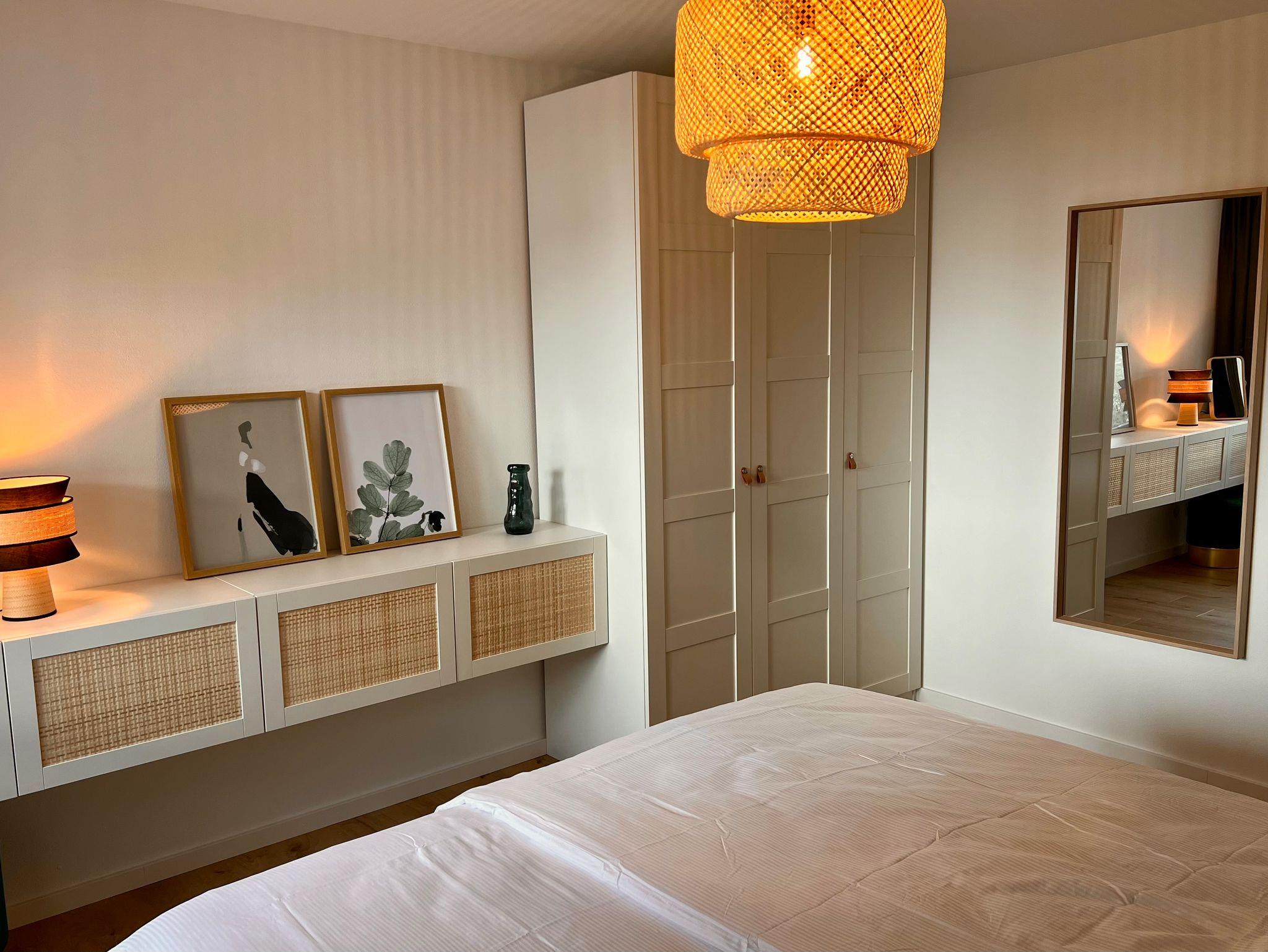 Das gemütliche Schlafzimmer ist mit einem großen Boxspringbett (180x200 cm) ausgestattet und bietet viel Stauraum um den Koffer auszupacken. Die Wohnung verfügt außerdem über ein Bad mit ebenerdiger Regendusche. Alle Fenster sind mit Außenrollos und Fliegengitter ausgestattet und ermöglichen eine optimale Verdunklung. Im großen und hellen Wohn-Essbereich befindet sich eine Schlafcouch, die beispielsweise perfekt für bis zu zwei Kinder geeignet ist und ein Fernseher. Die voll ausgestattete Küche beinhaltet eine Spülmaschine, Kühlschrank, Herd, Backofen, Filterkaffeemaschine und eine Nespresso-Kaffeemaschine mit Milchaufschäumer. Vom Wohn-Essbereich gelangt man über eine Terrassentüre auf die sonnige Westterrasse mit Weber Gasgrill, Sitzgelegenheiten, Sonnenschirm und Liegestühlen.