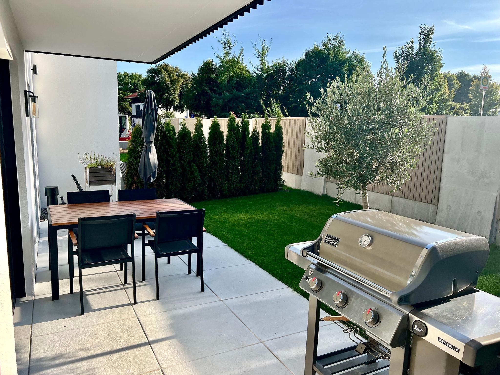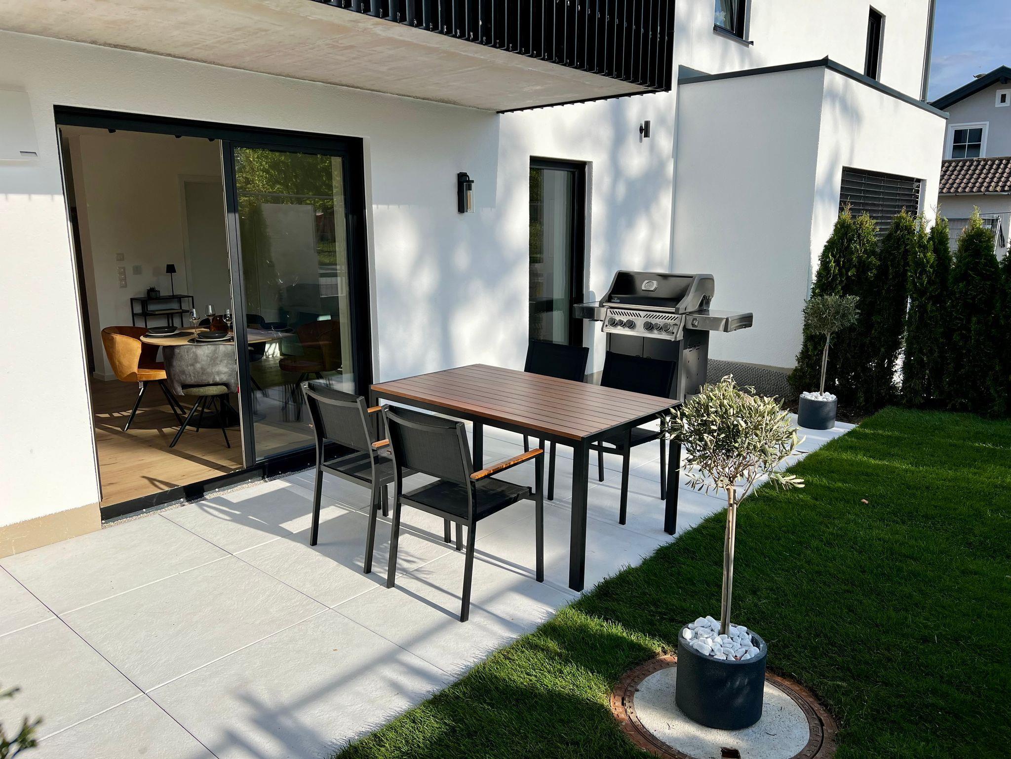Eine nach Westen hin ausgerichtete Terrasse mit Grill und kleinem Gartenanteil macht die Wohnung perfekt, um hier eine ruhige Auszeit zu genießen. Die Wohnung befindet sich im Zentrum von Prien mit vielen Cafes, Restaurants und Einkaufsmöglichkeiten in der Nähe. Das Chiemseeufer ist mit einer Entfernung von nur 1,2 km auch schnell und einfach zu erreichen.