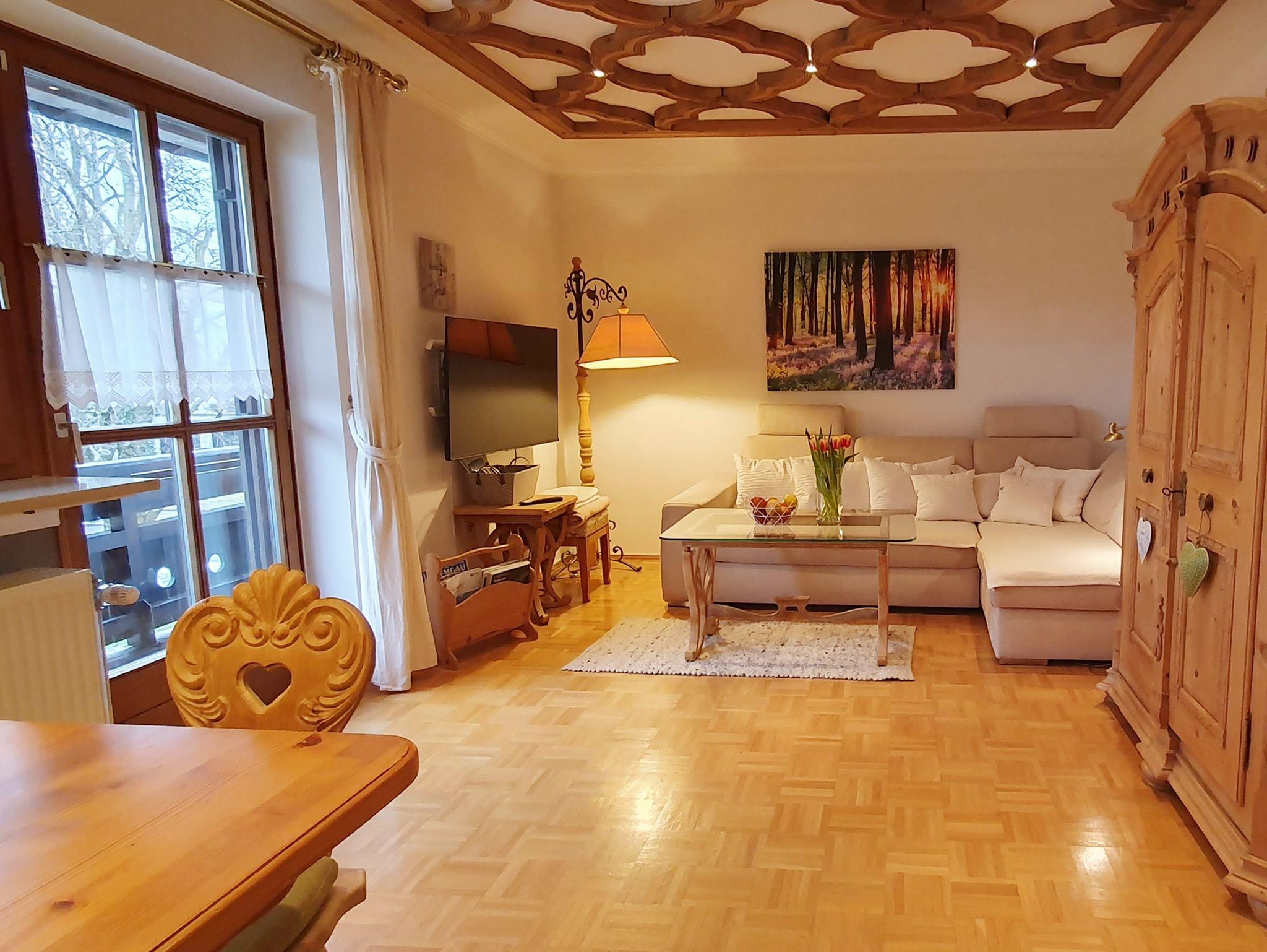 Optimal erreichen Sie von dieser ruhig gelegenen Ferienwohnung, 63 qm Wohlfühlunterkunft im bayerischen Stil, diverse urlaubsrelevante Ziele. In wenigen Minuten sind Sie am Chiemsee Ufer mit Schiffsanlegestelle. Ebenso einfach gelangt man in das Priener Zentrum mit Geschäften, Bahnhof auch ICE, Bäckerei, Metzgerei, Restaurants, Kino und Kliniken. Ein kostenfreier PKW-Stellplatz ist direkt vor der Haustür. Die weitläufige Rasenfläche ist als Liegewiese nutzbar. Fahrräder können in der TG abgestellt werden. Die hauseigene Sauna ist gegen eine Gebühr (Münzeinwurf) für unsere Gäste vorhanden. Das Wäschepaket (Bettwäsche und Handtücher) ist ab 8 Nächten imcl.