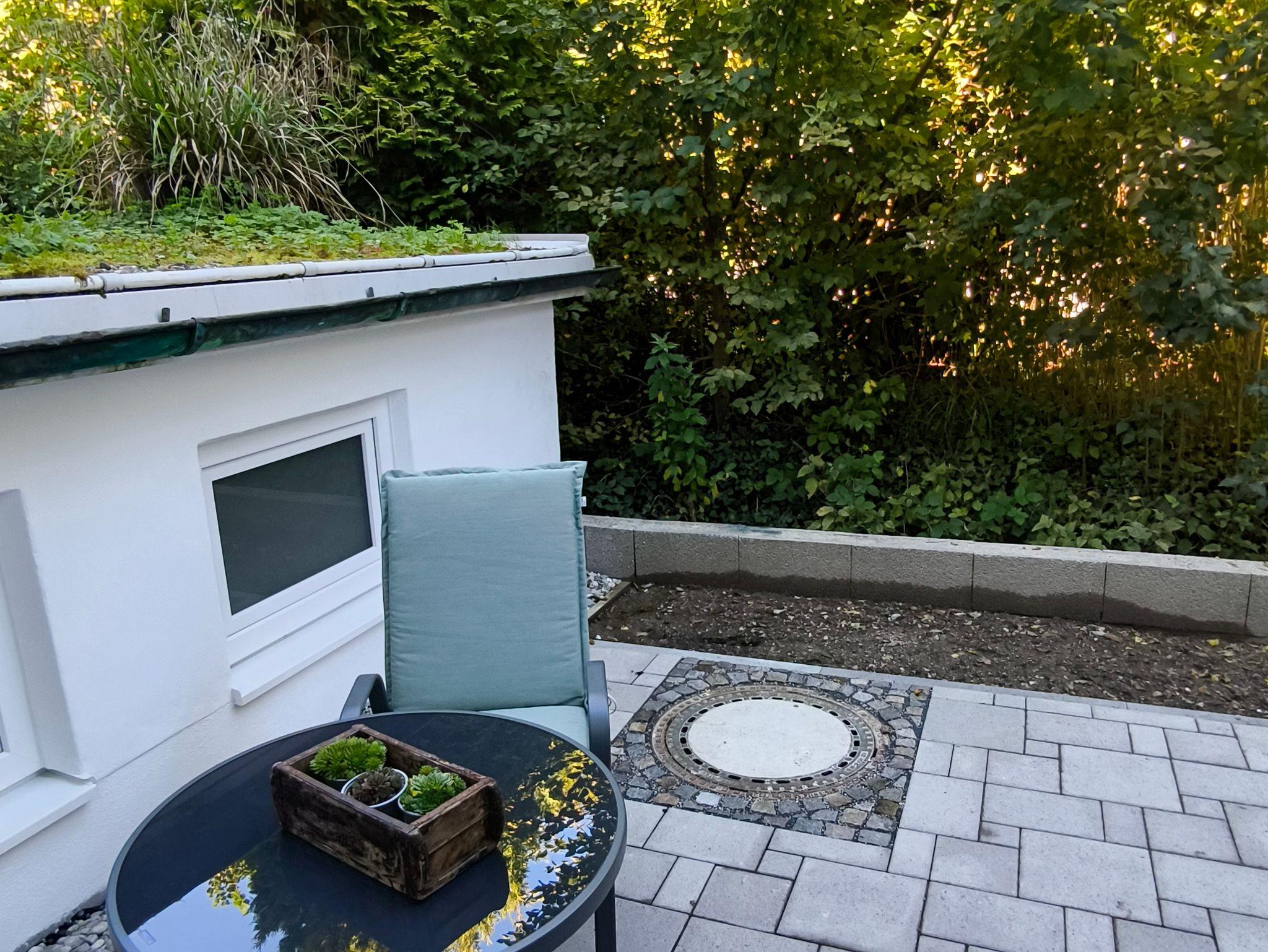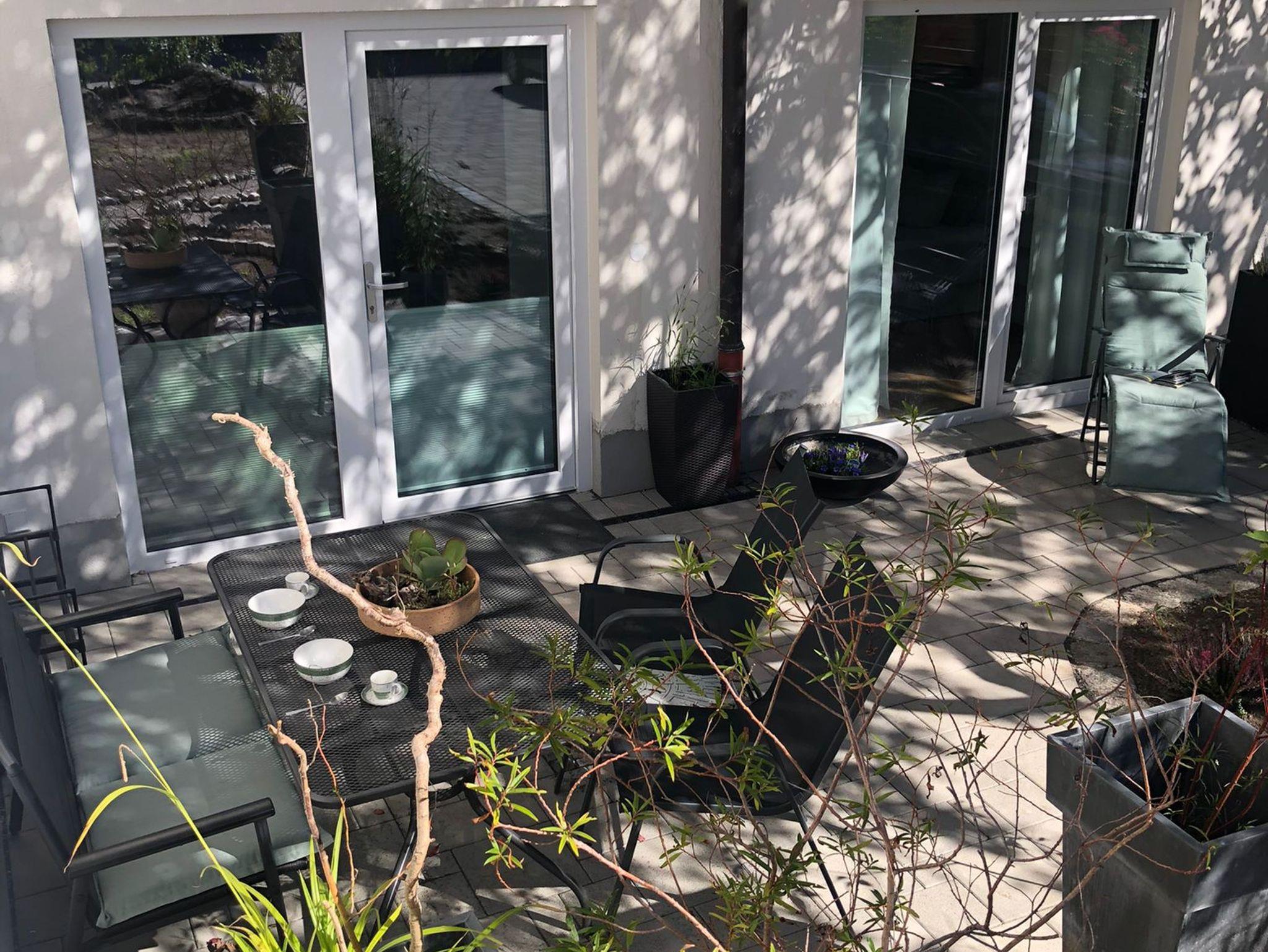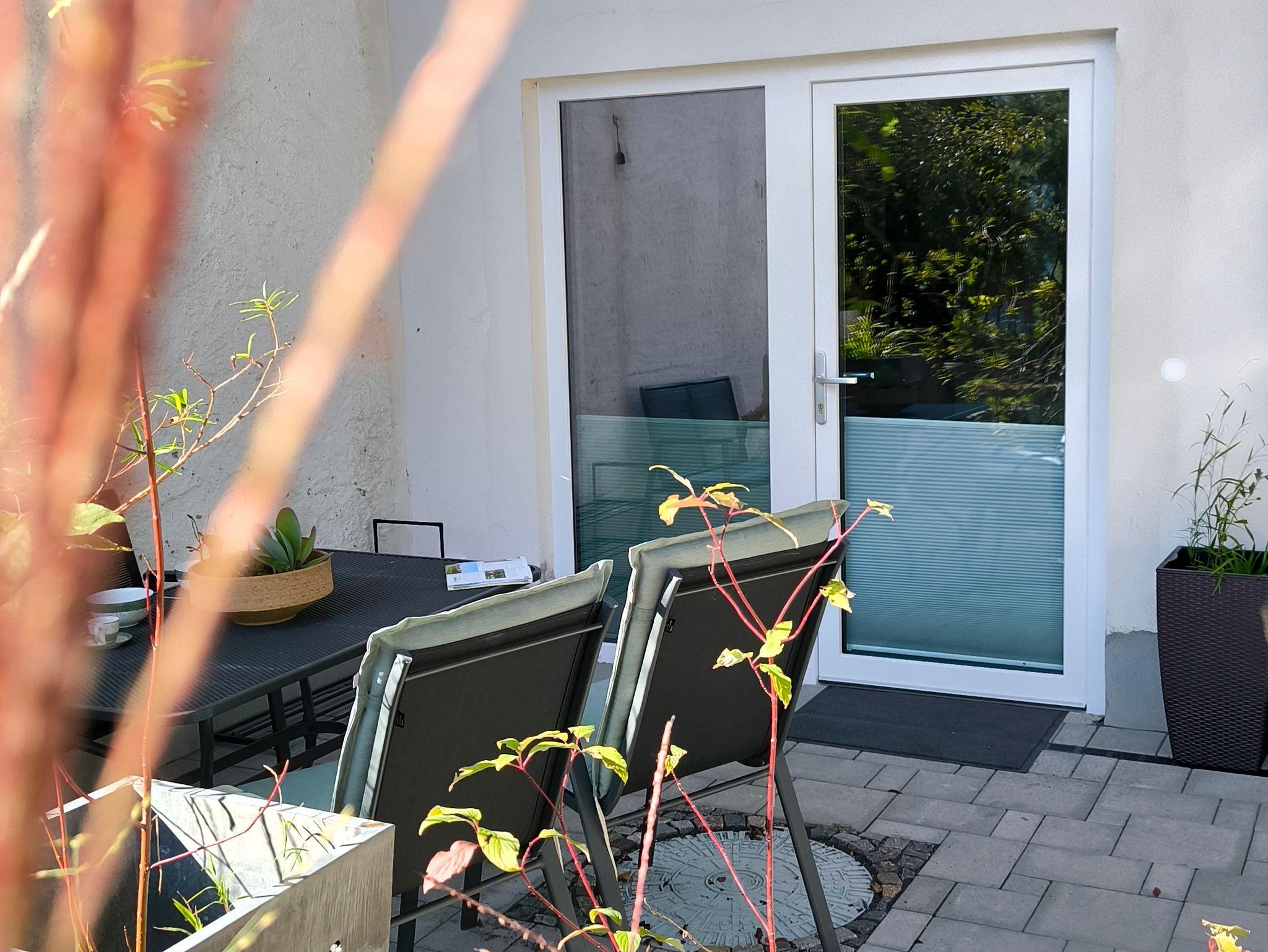 Diese ruhig gelegene Terrasse liegt angenehm im Schatten – perfekt, um sich an heißen Sommertagen abzukühlen. Ausgestattet mit gemütlichen Sitzmöbeln und einem kleinen Tisch, lädt sie zum entspannten Lesen, Kaffeetrinken oder einfach zum Zurückziehen ein. Der Bereich ist gut abgeschirmt und bietet maximale Privatsphäre.