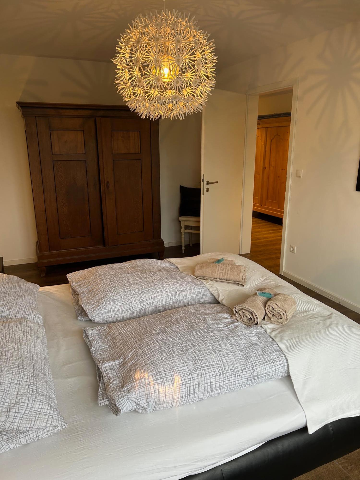 2 separate Schlafzimmer (1 Doppelbett, 1 Stockbett, max 2 Erwachse und 2 Kinder), Großer Flachbildschirm, Kabel-TV, WLAN. Badezimmer mit Dusche, Waschmaschine sowie großzügige Diele.