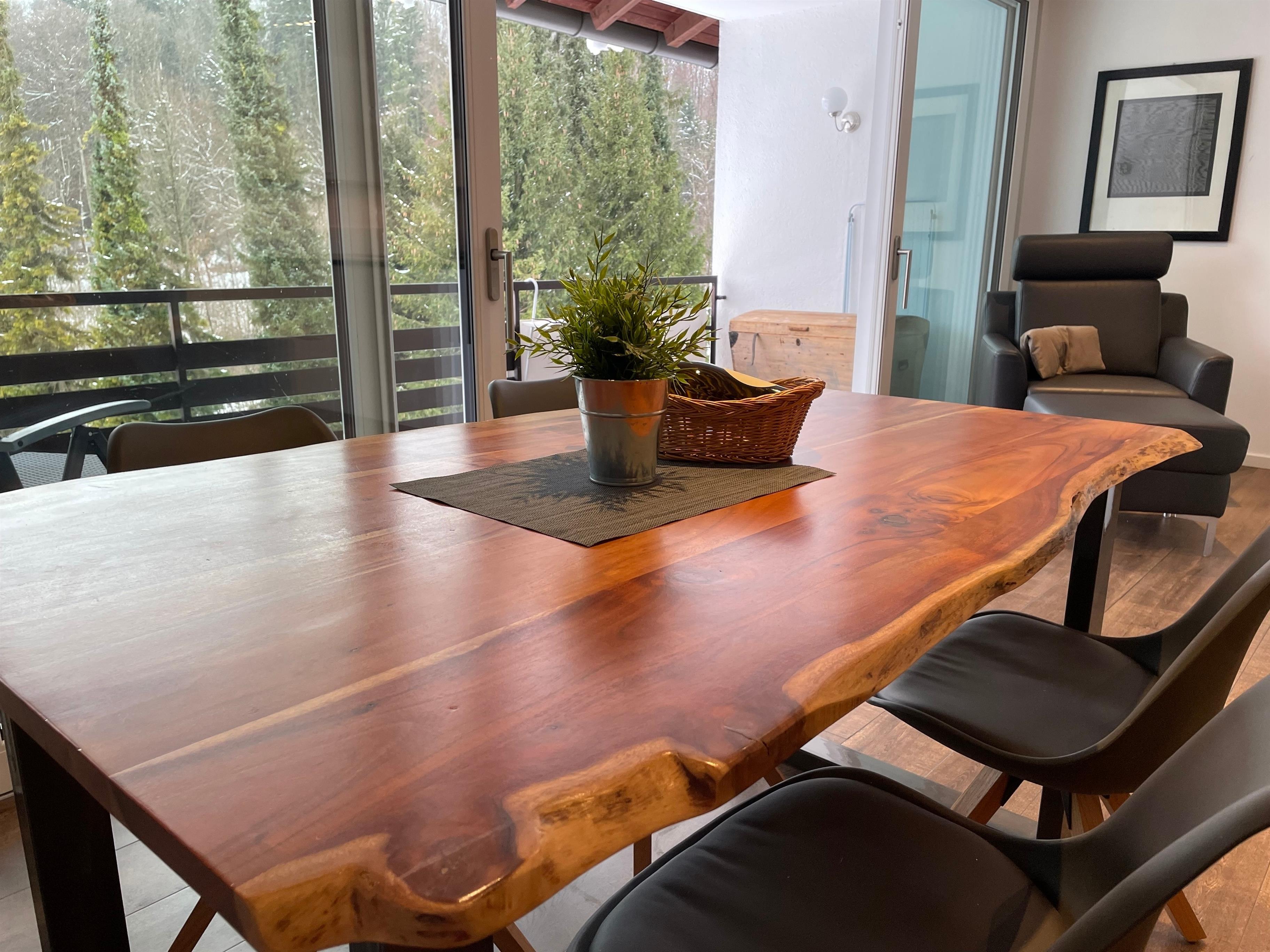 90 qm. TOP modern eingerichtete, großzügige Ferienwohnung mit großem, überdachten Süd-Balkon, offener Wohn/Essbereich mit voll eingerichteter Küche (Geschirrspüler, Herd, Kühlschrank).