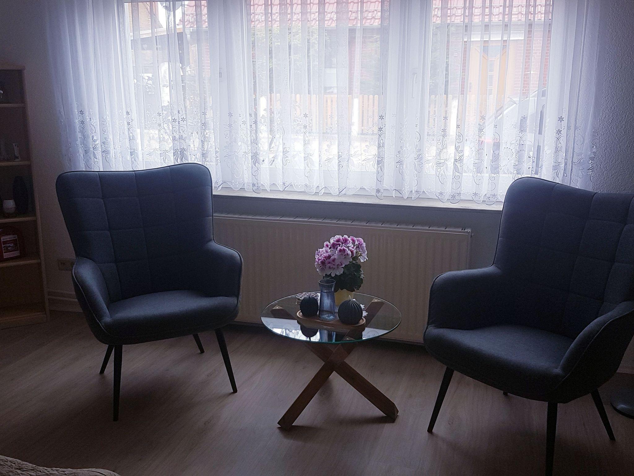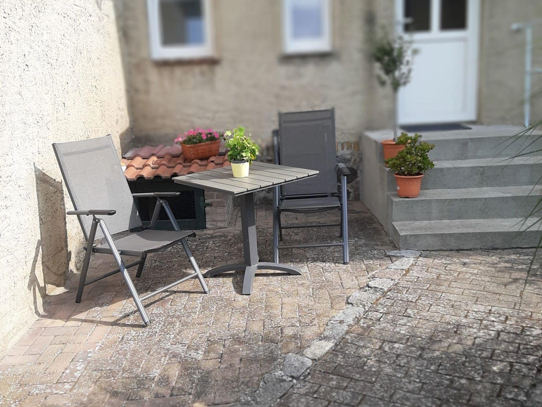 Auf dem Grundstück gibt es auch eine Sitzecke mit Gartenmöbeln und Grill für Sie - direkt vor dem Wohnungseingang. Dort können Sie dann bei einem Gläschen Wein gemütlich den Tag ausklingen lassen.