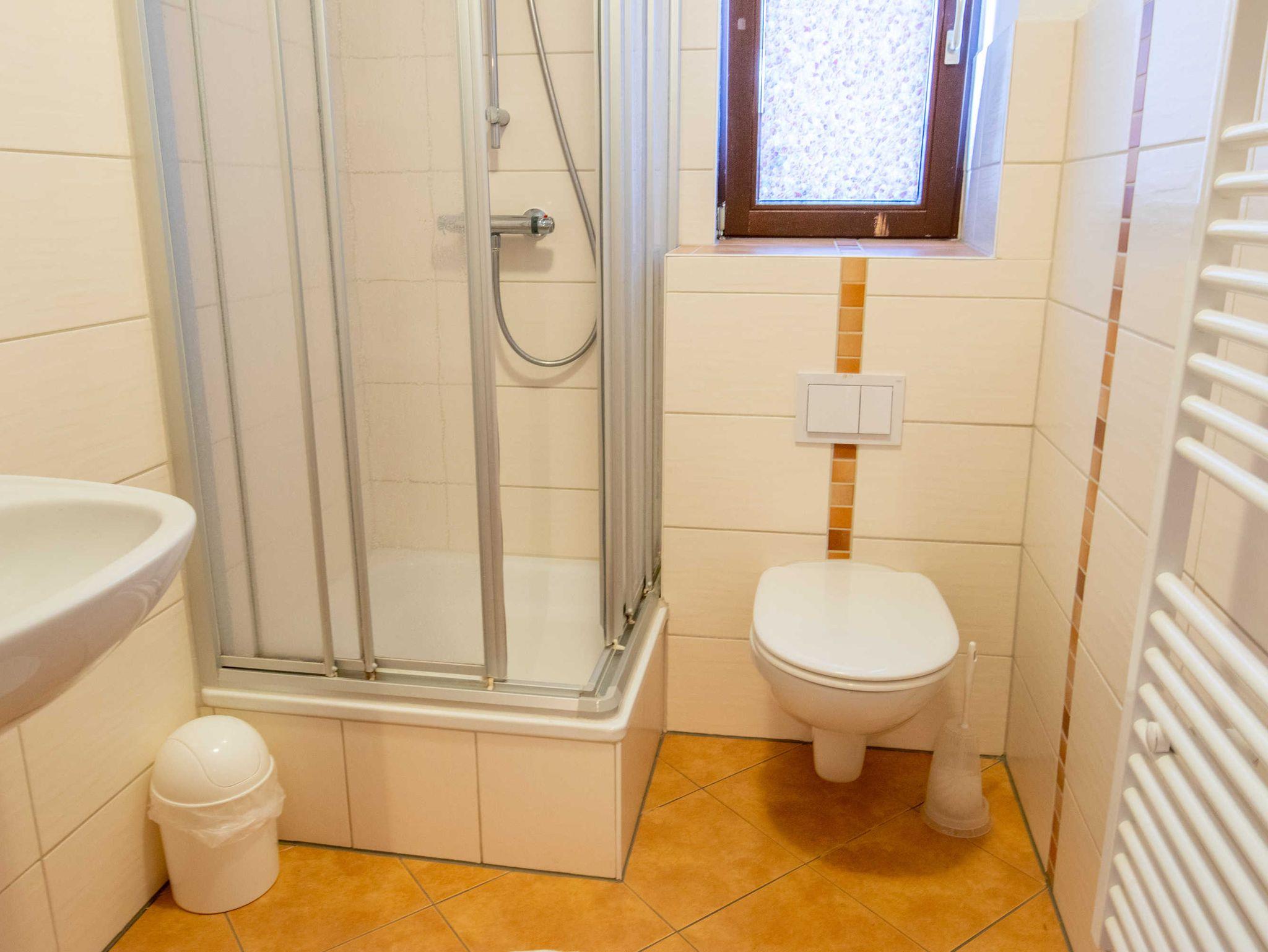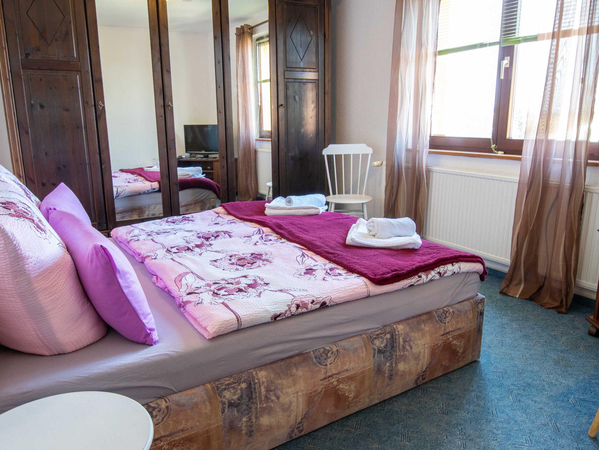 Das Doppelzimmer ist eingerichtet mit 2 Einzelbetten (90x200), außer in Zimmer 19, dort befindet sich ein Doppelbett (180x200), einem TV (teilweise Flachbild-TV), einer Sitzgelegenheit, Kleiderschrank, einem Bad mit Fenster, Dusche und WC sowie einem kleinen Vorflur.