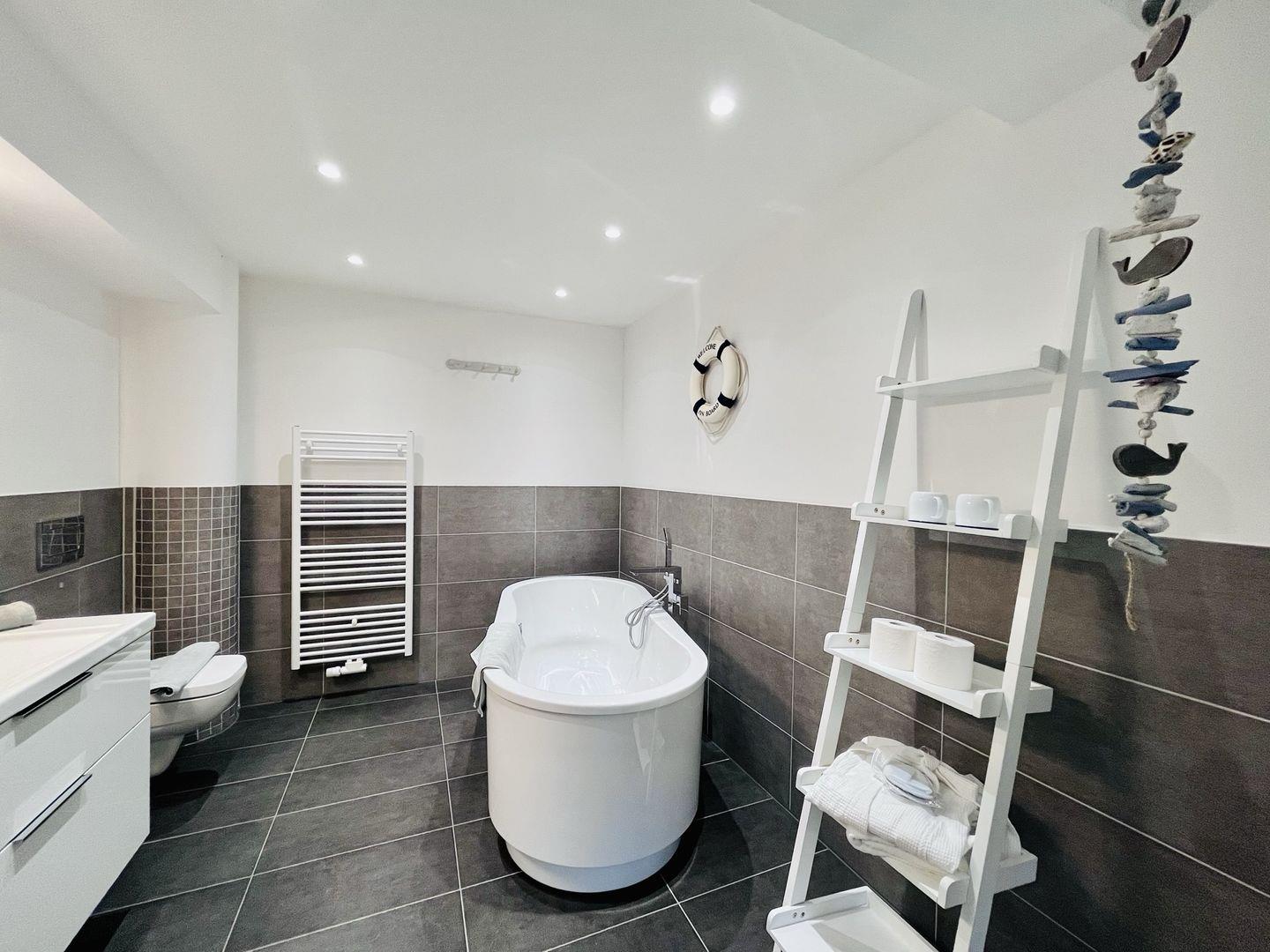Im ersten Schlafzimmer befindet sich ein gemütlichen Boxspringbett mit Kleiderschrank, direkt daneben befindet sich, dass Bad mit Badewanne. Im zweiten Schlafbereich befinden sich zwei Boxspringeinzelbetten, ein TV mit einer Kommode. In beiden Schlafzimmern sorgen zusätzliche Verdunklungsplissees für einen erholsamen Schlaf. Ein kostenloser Parkplatz steht Ihnen am Haus ebenfalls zur Verfügung.
