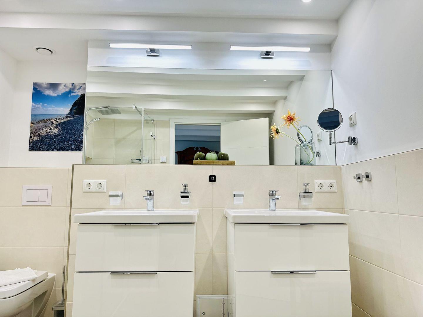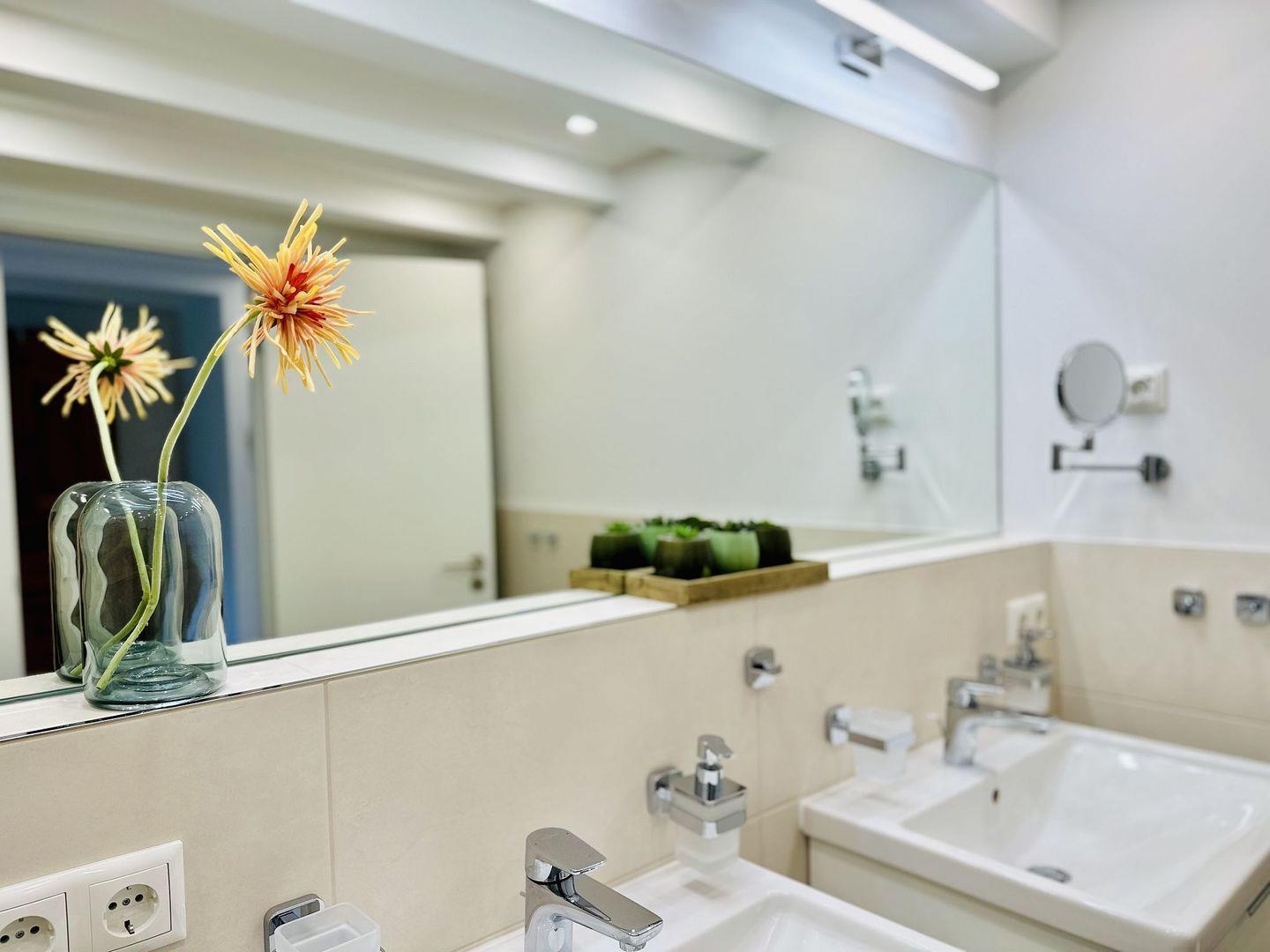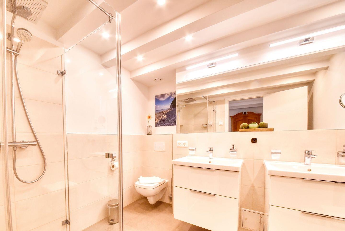 Ein edel ausgestattetes Duschbad biete weitere Annehmlichkeiten für Ihren Aufenthalt.