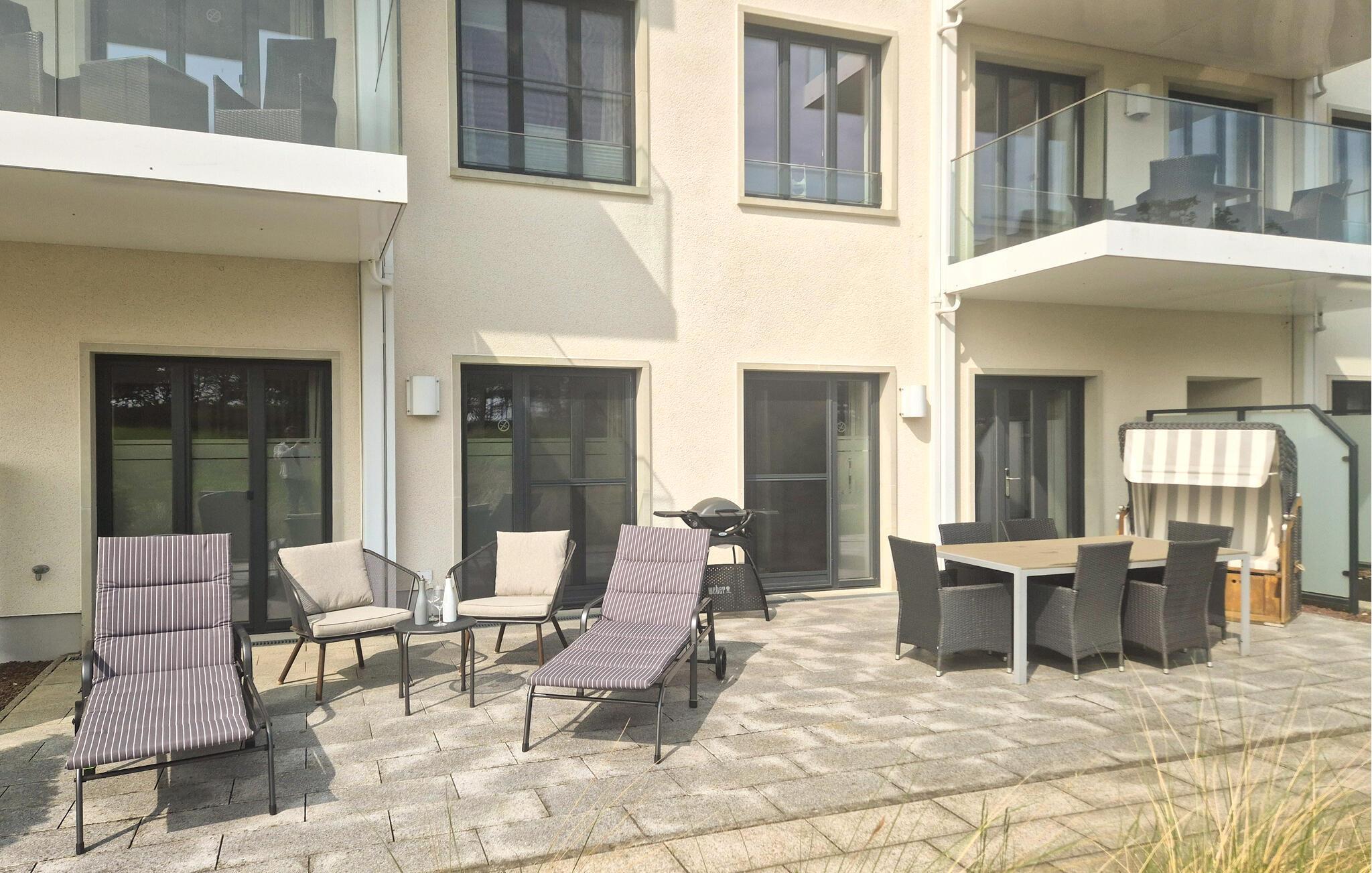Denne ferielejlighed giver jer de bedste rammer til at slappe af og have det rart. De eksklusive møbler er udvalgt med stor omhu, og udtrykket virker elegant og harmonisk. Intet ved indretningen er overladt til tilfældighederne, og der er lagt vægt på et godt indeklima samt allergivenlige materialer. De tre meter til loftet gør rummet ekstra rart at opholde sig i. På den næsten 40 m² store terrasse er der rigeligt med plads, for at nyde Østersøens luft helt privat omgivet af jeres nærmeste om aftenen. Forældresoveværelset er udstyret med boksspringmadrasser af høj kvalitet og et eget garderobeværelse.
