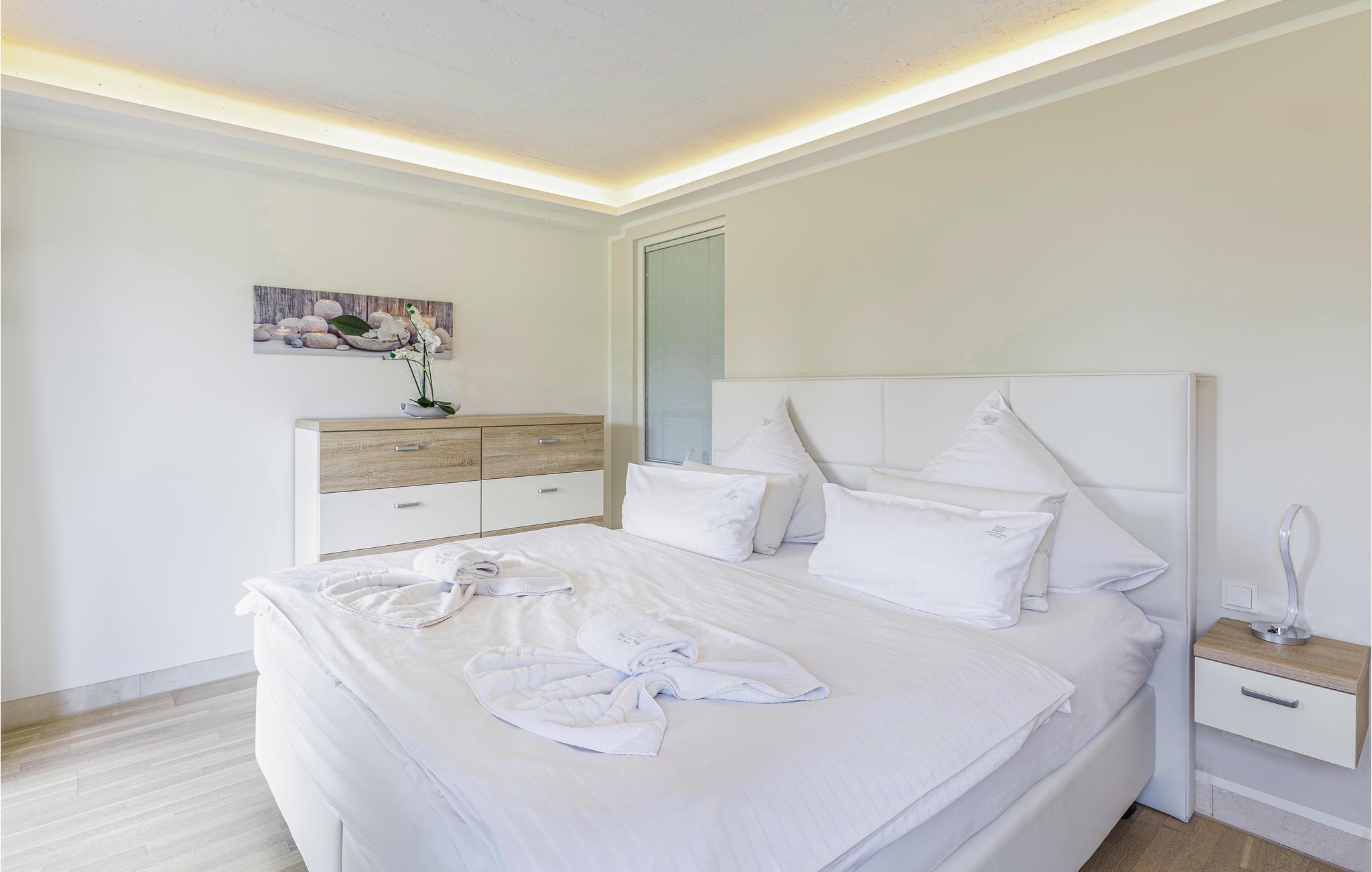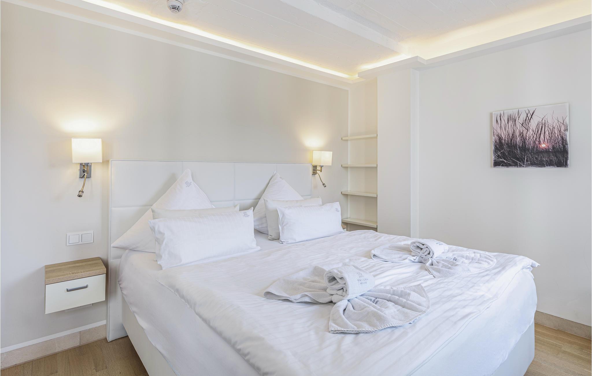 Denne ferielejlighed af typen "Capt'n" byder på over 120 m² plads til hele familien. I råder over 3 soveværelser og 2 badeværelser. Fra det store soveværelse 1 har I direkte adgang til en af de to altaner, så I kan ånde den friske havluft lige når I står op, mens I nyder udsigten helt til Østersøen. De eksklusive møbler er udvalgt med stor omhu, og udtrykket virker elegant og harmonisk. Intet ved indretningen er overladt til tilfældighederne, og der er lagt vægt på et godt indeklima samt allergivenlige materialer.