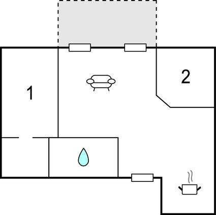 Opholdsstue/køkken - 1 Soveplads. (Sofa, madras eller lignende).