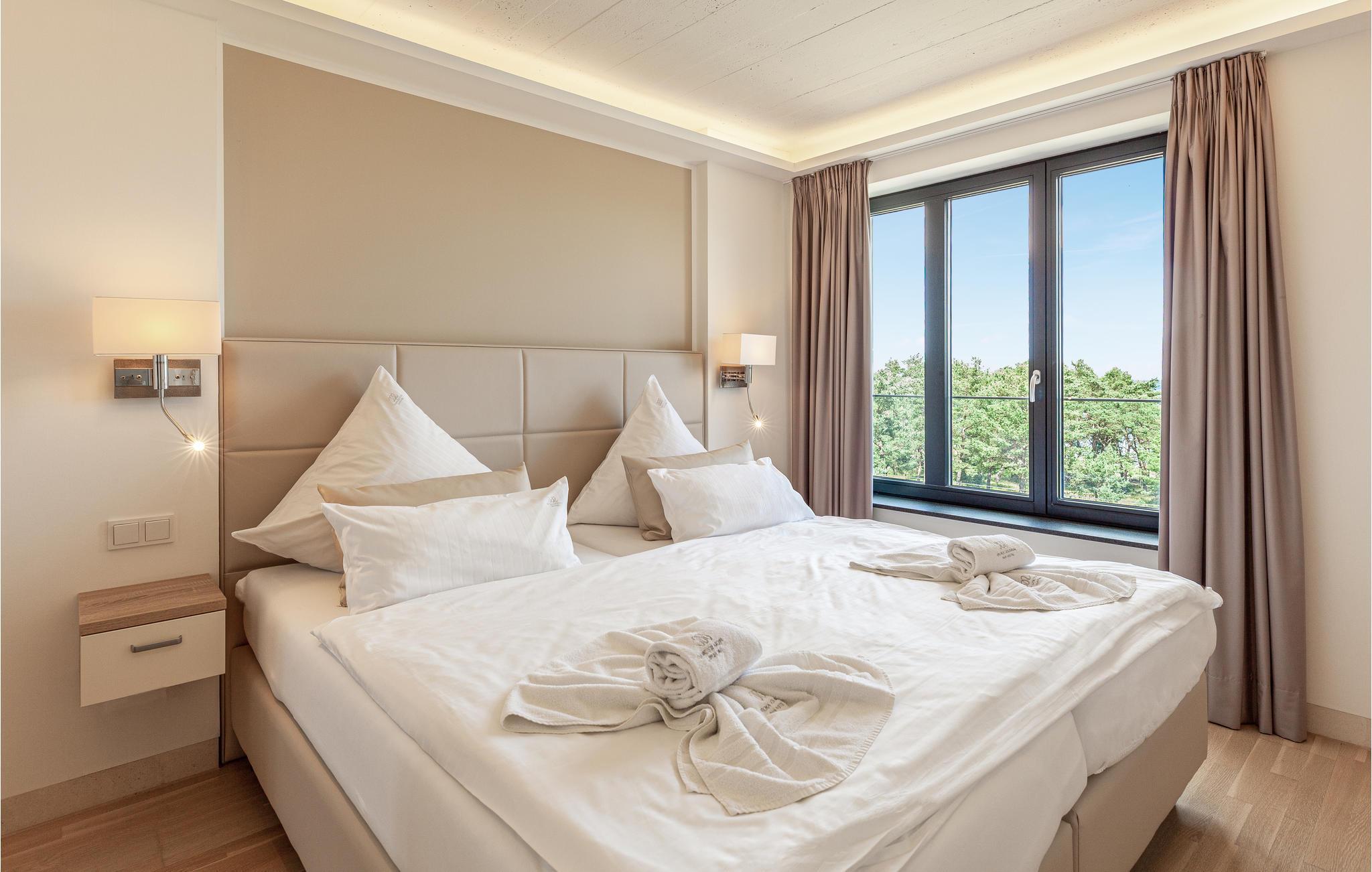 Lejligheden ligger i det historiske feriekompleks Prora, der blev påbegyndt i 1936. I dag er det omdannet til et moderne feriested og inviterer jer indenfor til en behagelig ferie. Nyd godt af wellnessafdelingen med sauna og pool. I finder også et fitnesscenter med træningsudstyr, så I også kan holde jer i form på ferien.