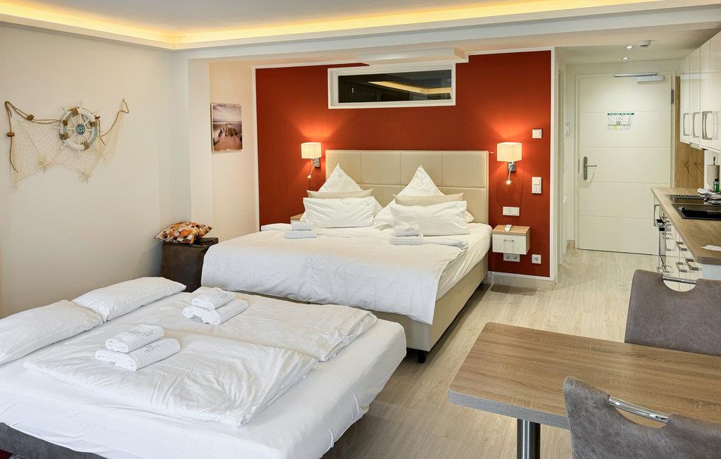 Denne moderne lejlighed venter sine gæster kun få skridt fra den smukke strand. Lejligheden er smart designet og tilbyder alt, hvad I behøver for en afslappende ferie for to i et kompakt rum.