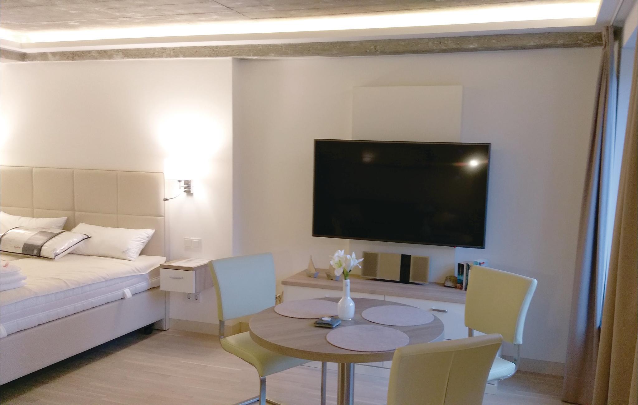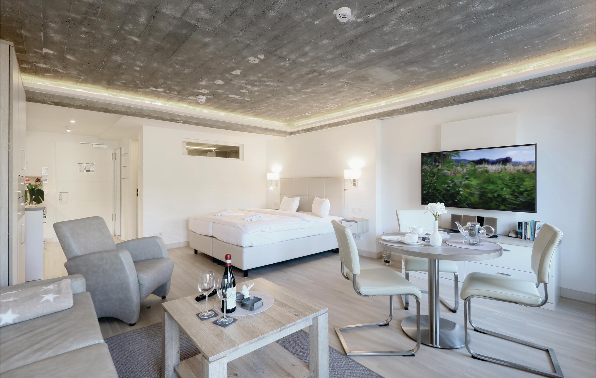 Denne eksklusive etværelseslejlighed er den perfekte bolig til en drømmeferie for to på den smukke ø Rügen. Lejligheden er raffineret indrettet, så I kan finde alt, som I har brug for på lidt plads: Det praktiske køkkenhjørne med spisebord, soveområde med boksmadras af høj kvalitet, et hyggeligt, lyst dagligområde og naturligvis lejlighedens highlight, jeres egen terrasse tæt på stranden.