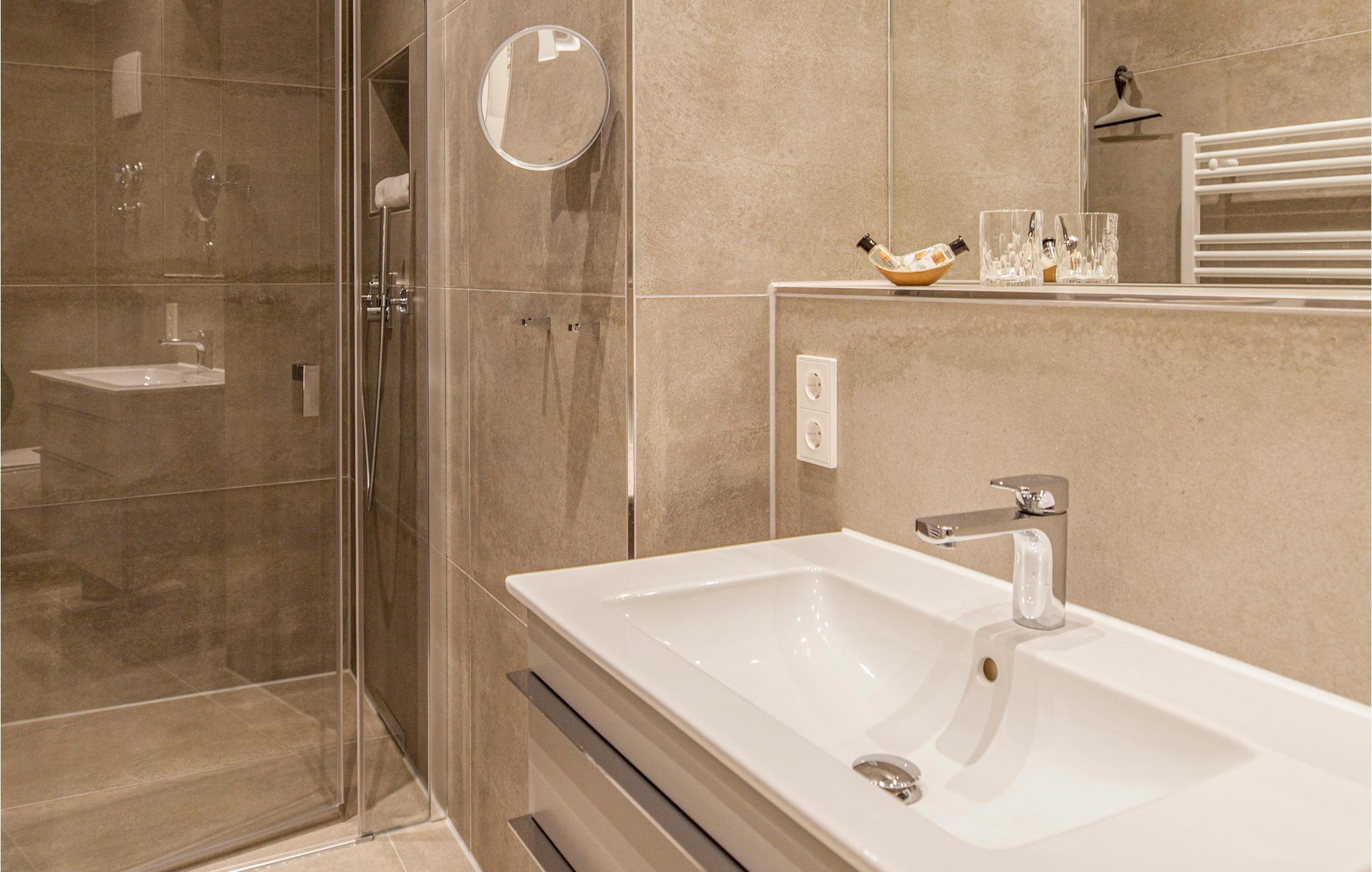 Det højkvalitets og allergivenlige "Panorama Studio" ligger i stueetagen og lige ud til siden af ??udendørspoolen. På terrassen kan I nyde morgenmad med udsigt over poolen og med lidt held endda høre havets brusen, mens I nyder de første solstråler. Etværelseslejligheden kombinerer søvn, madlavning og ophold i ét rum. Ud over den komfortable dobbeltseng er der en ekstra soveplads på sovesofaen. Tekøkkenet er af høj kvalitet og fuldt udstyret, så I ikke mangler noget på jeres ferie. Der er opvaskemaskine, fryser og kaffemaskine. Kaffeelskere vil sætte pris på den ekstra Nespresso-maskine (medbring venligst jeres egne kapsler).