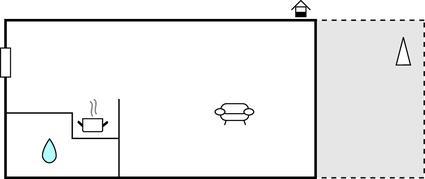 Opholdsstue/køkken 37m2 - 2 Sovepladser. (Dobbeltseng(e)). 1 Soveplads. (Sofa, madras eller lignende).