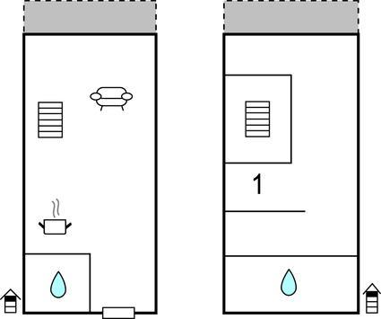Opholdsstue/køkken 45m2 - 1 Soveplads. (Sofa, madras eller lignende).