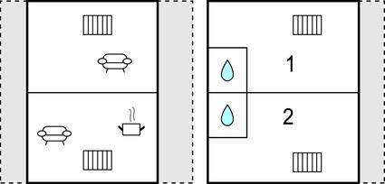Opholdsstue/køkken - 1 Soveplads. (Sofa, madras eller lignende).