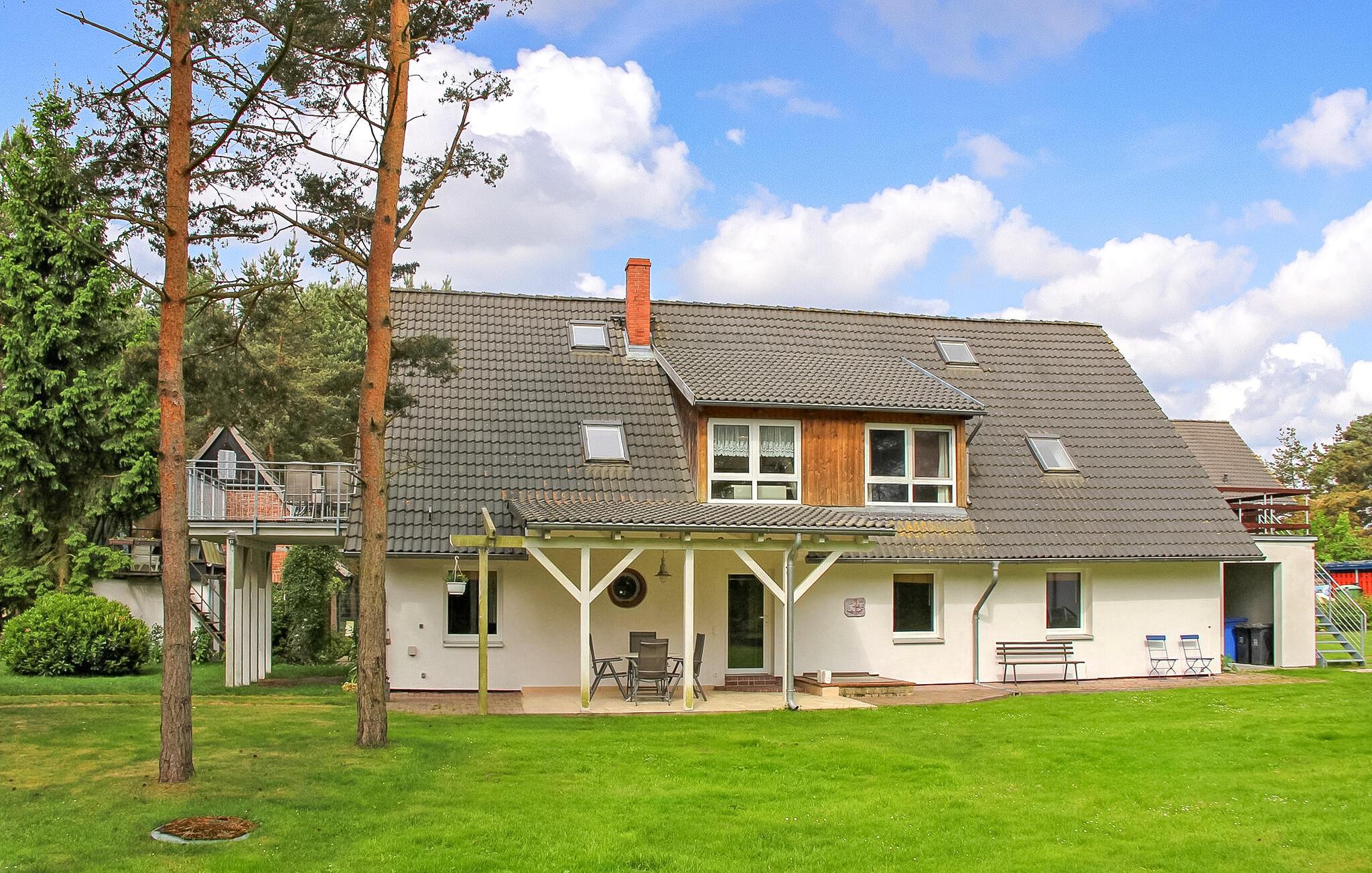 De to ferielejligheder ligger hver for sig i stueetagen og øverste etage i et sommerhus på ejerens 3000 kvadratmeter keramik- og feriegård i direkte skovbeliggenhed. Der tilbydes i alt seks ferielejligheder i forskellig størrelse. Alle boligenheder har separat adgang. Der er en udendørs pool (fælles brug), en møbleret terrasse, grill og parkeringsplads samt WiFi. Den samlede pris inkluderer vand, energi og slutrengøring. Håndklæder og sengetøj skal medbringes. Husdyr: En lille hund op til en højde på 40 cm er tilladt i denne ejendom. Betales på stedet: spaskat. Lejligheden ligger i stueetagen. Den er udstyret med: stue (polstrede møbler med sovefunktion, satellit-tv, radio), soveværelse (dobbeltseng), køkken (spiseplads, keramisk kogeplade, køleskab, opvaskemaskine), bad/toilet, centralvarme. Pruchten er en lille by i det sydlige lagunelandskab, cirka 6 km fra feriestedet Zingst ved Østersøen. I byen: restaurant, shopping, lille. Havn, båd- og cykeludlejning, ridestalde og de bedste fiskemuligheder.