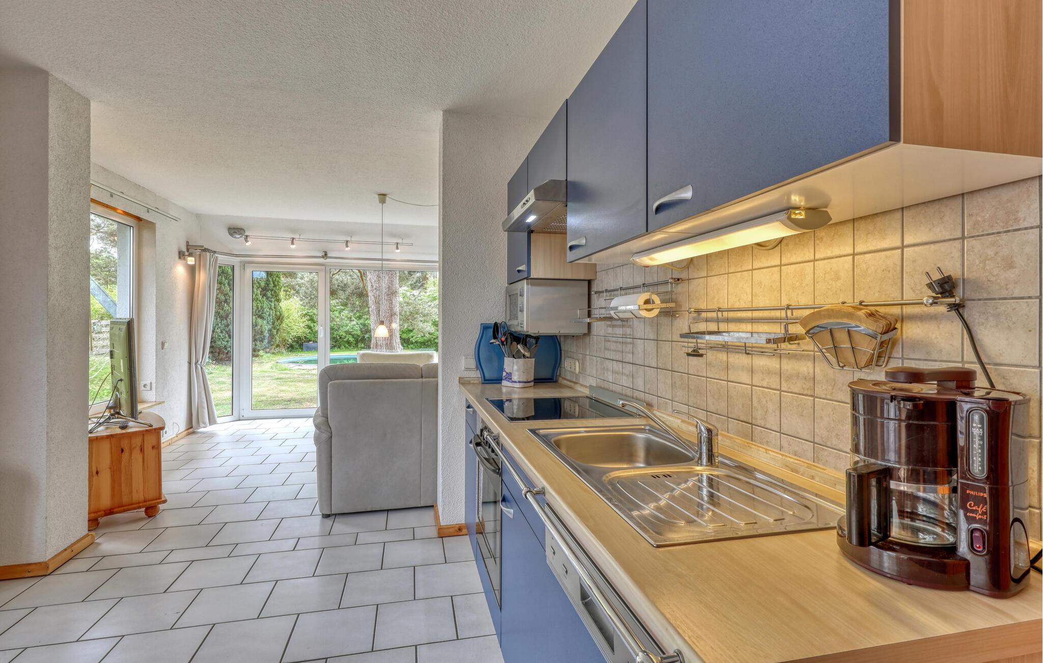 Ferielejligheden ligger (sammen med en anden lejlighed) i stueetagen i en beboelsesejendom på den cirka 3.000 kvadratmeter store keramik- og feriegård i direkte skovbeliggenhed og har separat adgang. Lejligheden er udstyret med stue/spisestue (polstrede møbler, spiseplads, satellit-tv, radio), to soveværelser (1 x dobbeltseng, 1 x to enkeltsenge), tekøkken, bad/toilet og gulvvarme. Der er også en udendørs pool (fælles brug), en terrasse, grill, en parkeringsplads og WiFi. En barneseng kan stilles til rådighed efter aftale. Den samlede pris inkluderer vand, energiforbrug og slutrengøring. Medbring venligst dine egne håndklæder og sengetøj. Betales på stedet: spaskat. Pruchten er en lille by i det sydlige lagunelandskab, cirka 6 km fra feriestedet Zingst ved Østersøen. I byen: restaurant, shopping, lille. Havn, båd- og cykeludlejning, ridestalde og de bedste fiskemuligheder.