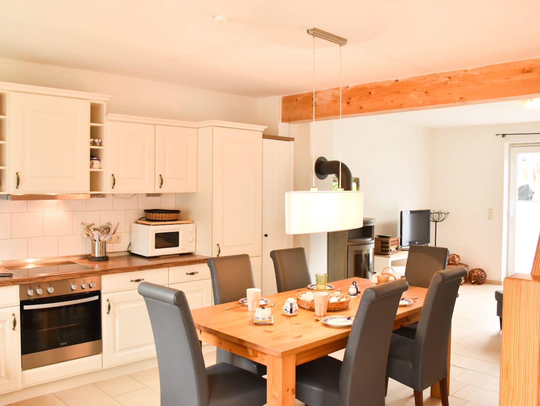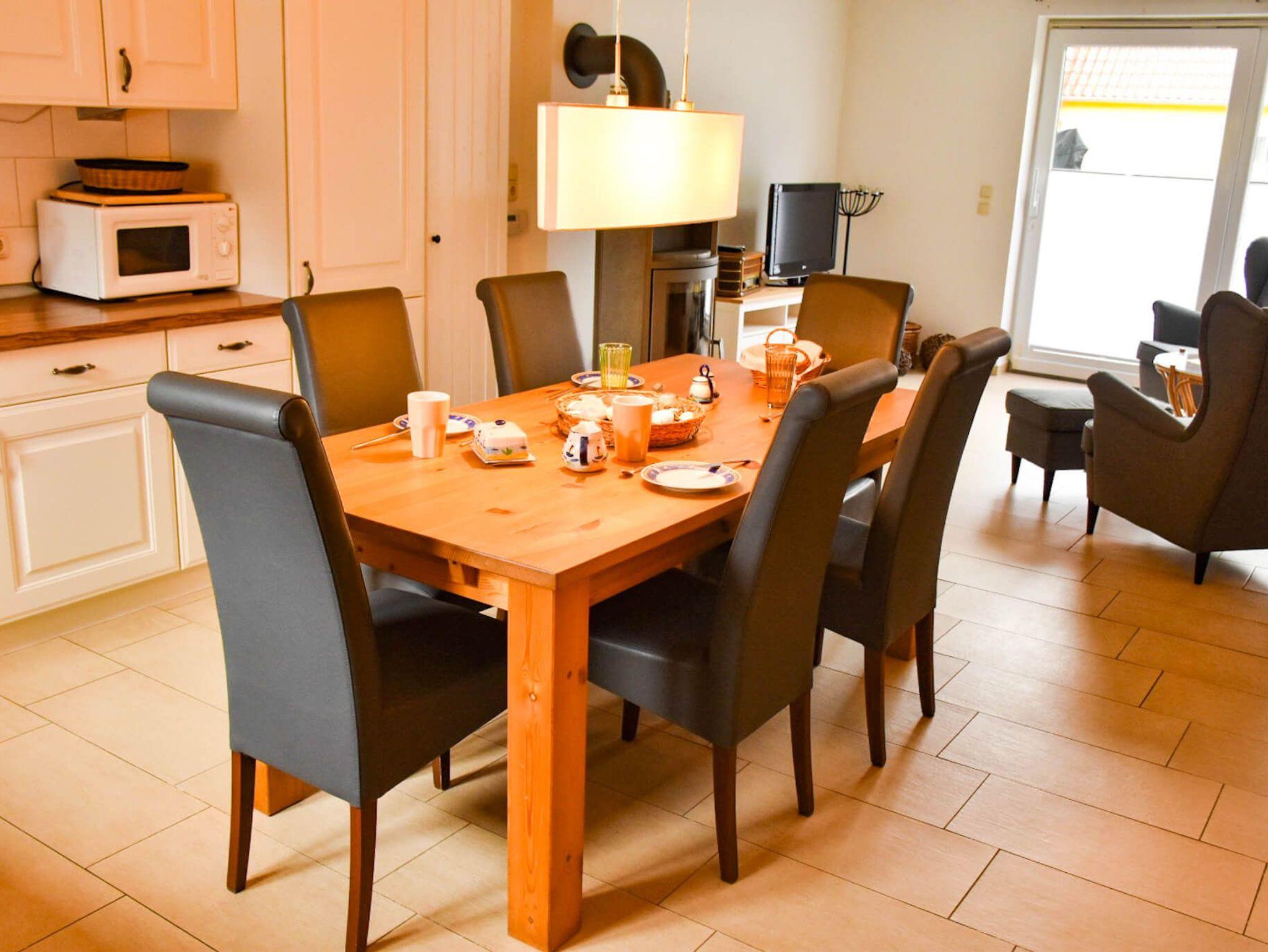 Unser gemütliches Reihenmittelhaus bietet Platz für bis zu 4 + (2) Personen und verfügt über eine voll ausgestattete Einbauküche, eine Waschmaschine, Fußbodenheizung im Erdgeschoss und Heizkörper im Obergeschoss. Sie werden sich schnell wie zu Hause fühlen, wenn Sie den großzügigen Wohn- und Essbereich im Erdgeschoss betreten, der Platz für gemeinsame Mahlzeiten und entspannte Abende bietet. Und was wäre ein gemütlicher Abend ohne den warmen Schein eines Kamins? In unserem Ferienhaus können Sie es sich vor dem Kamin so richtig gemütlich machen und den Abend bei einem Glas Wein ausklingen lassen.