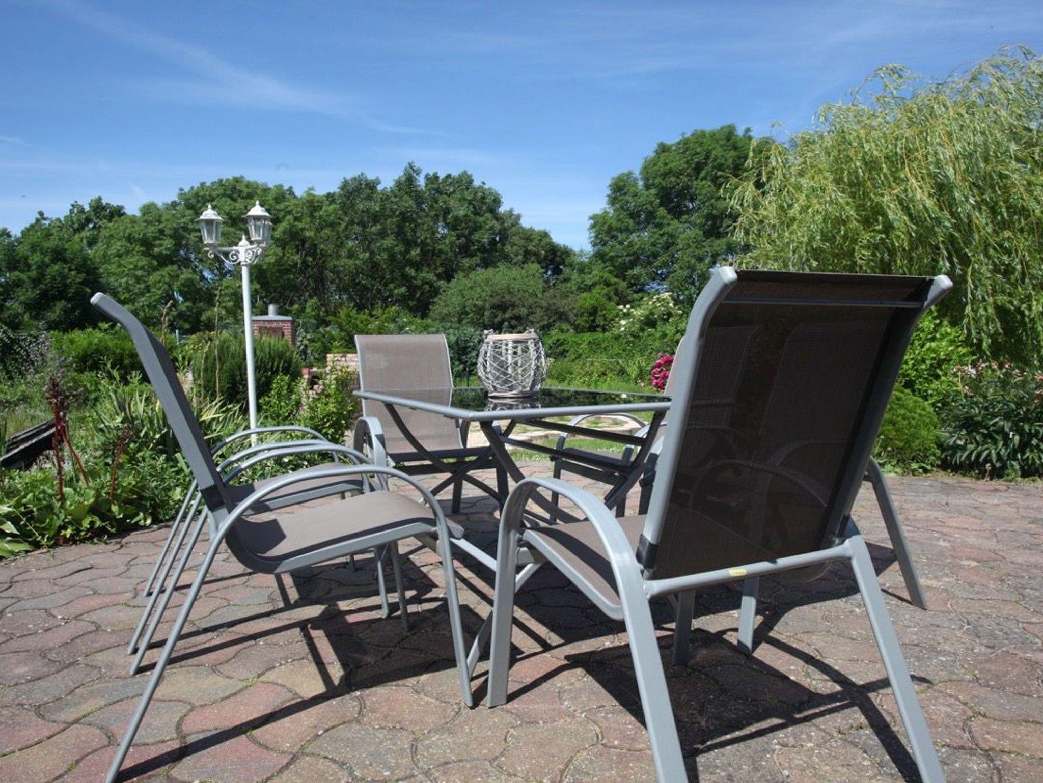 Den wunderschönen Garten erreichen Sie durch die große Terrassentür im Flur. Die teilüberdachte Terrasse ist mit einem Strandkorb, mehreren Gartenstühlen und einem großen Gartentisch ausgestattet. Für gesellige Abende steht Ihnen eine großzügige Grillecke zur Verfügung. Der Carport verfügt über zwei Stellplätze für Autos.