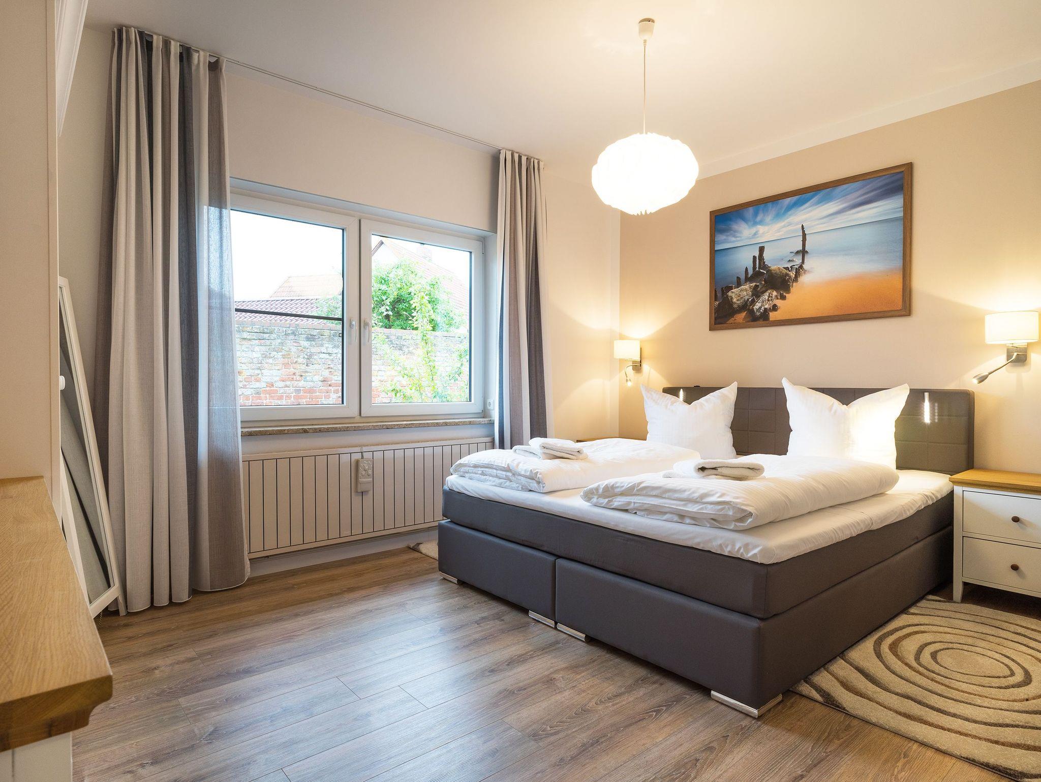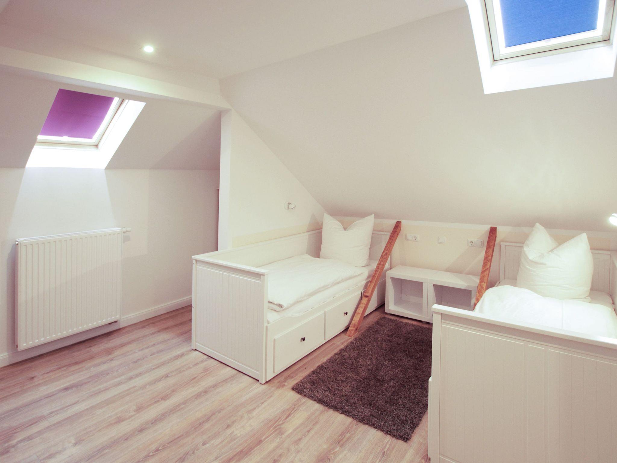 • Ein weiteres Schlafzimmer mit Doppelbett und Durchgang zum Kinderzimmer mit zwei Einzelbetten