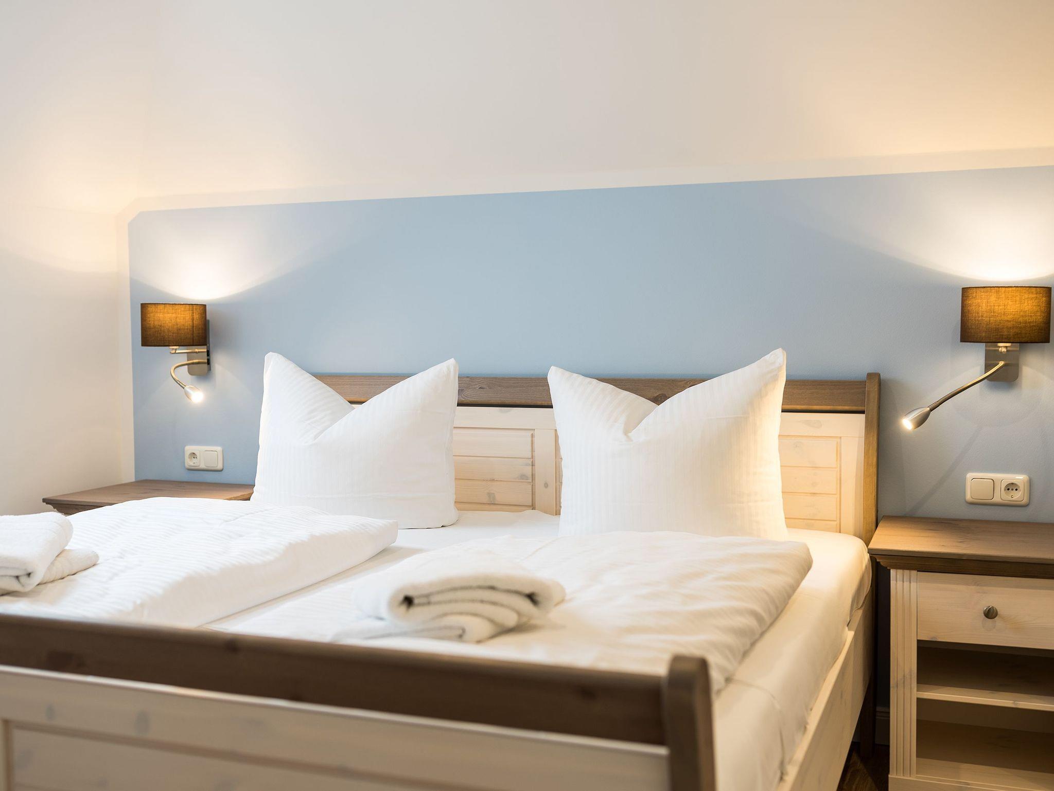 • Schlafzimmer mit einem Doppelbett und einem Einzelbett