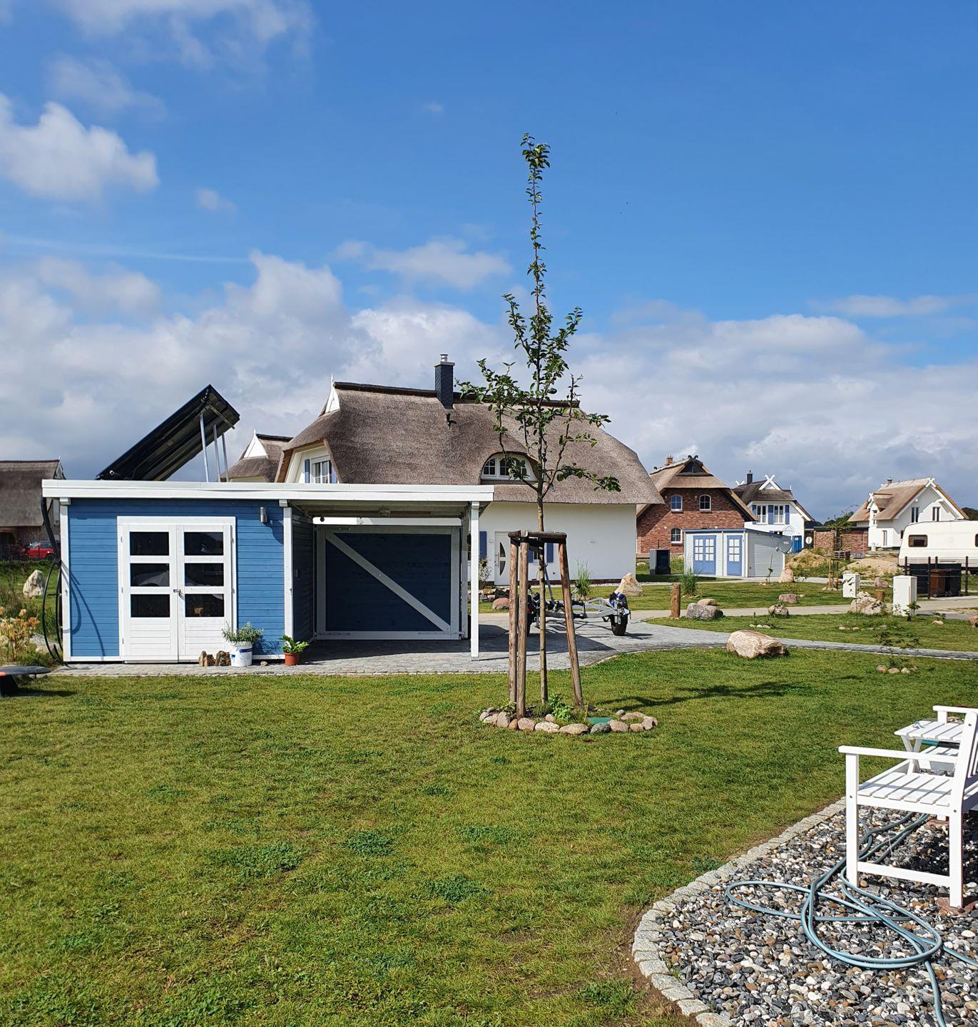 Das 930 m² große Grundstück ist liebevoll angelegt. Auf der sonnigen Südterrasse können Sie entspannte Stunden genießen oder beim Grillen mit dem Gasgrill den Tag ausklingen lassen. Ihr wohlerzogener Vierbeiner ist herzlich willkommen – bitte beachten Sie jedoch, dass das Grundstück nicht eingezäunt ist.