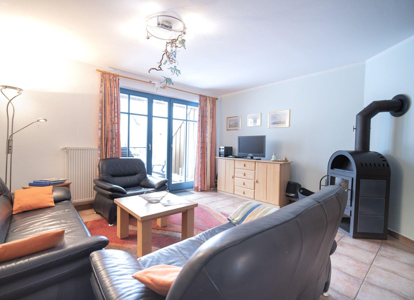 Auf drei Etagen bietet das Haus Platz für bis zu 6 Personen. Im offenen Wohnbereich erwartet Sie eine gemütliche Sofaecke mit Kaminofen – perfekt für kuschelige Abende nach einem Strandspaziergang. Die voll ausgestattete Küche und der freundliche Essbereich laden zum gemeinsamen Kochen und Genießen ein. Durch die große Terrassentür gelangen Sie auf die sonnige Westterrasse, wo Sie den Tag entspannt ausklingen lassen können.
