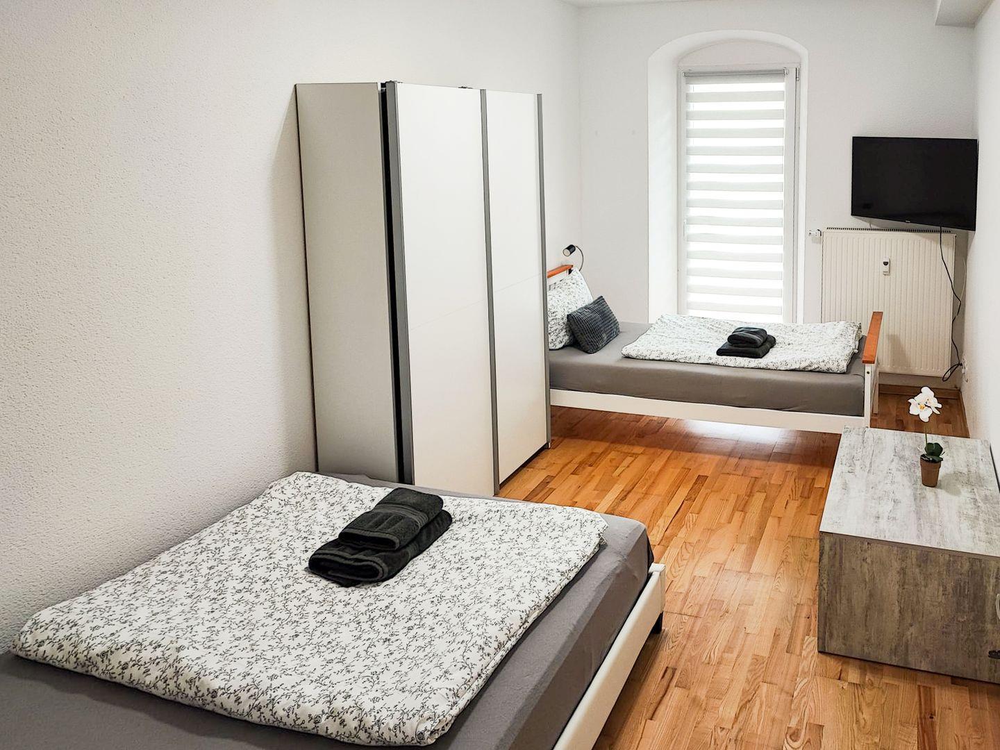 Die Wohnung verfügt über zwei gemütliche Schlafzimmer, die durch sanfte Farben und stilvolle Einrichtung zum Entspannen einladen. Für maximal vier Personen ist die Unterkunft perfekt geeignet, um unvergessliche Momente zu schaffen. Das Badezimmer ist modern gestaltet und bietet eine bodengleiche Dusche sowie alle notwendigen Annehmlichkeiten, um Ihren Aufenthalt so angenehm wie möglich zu gestalten.