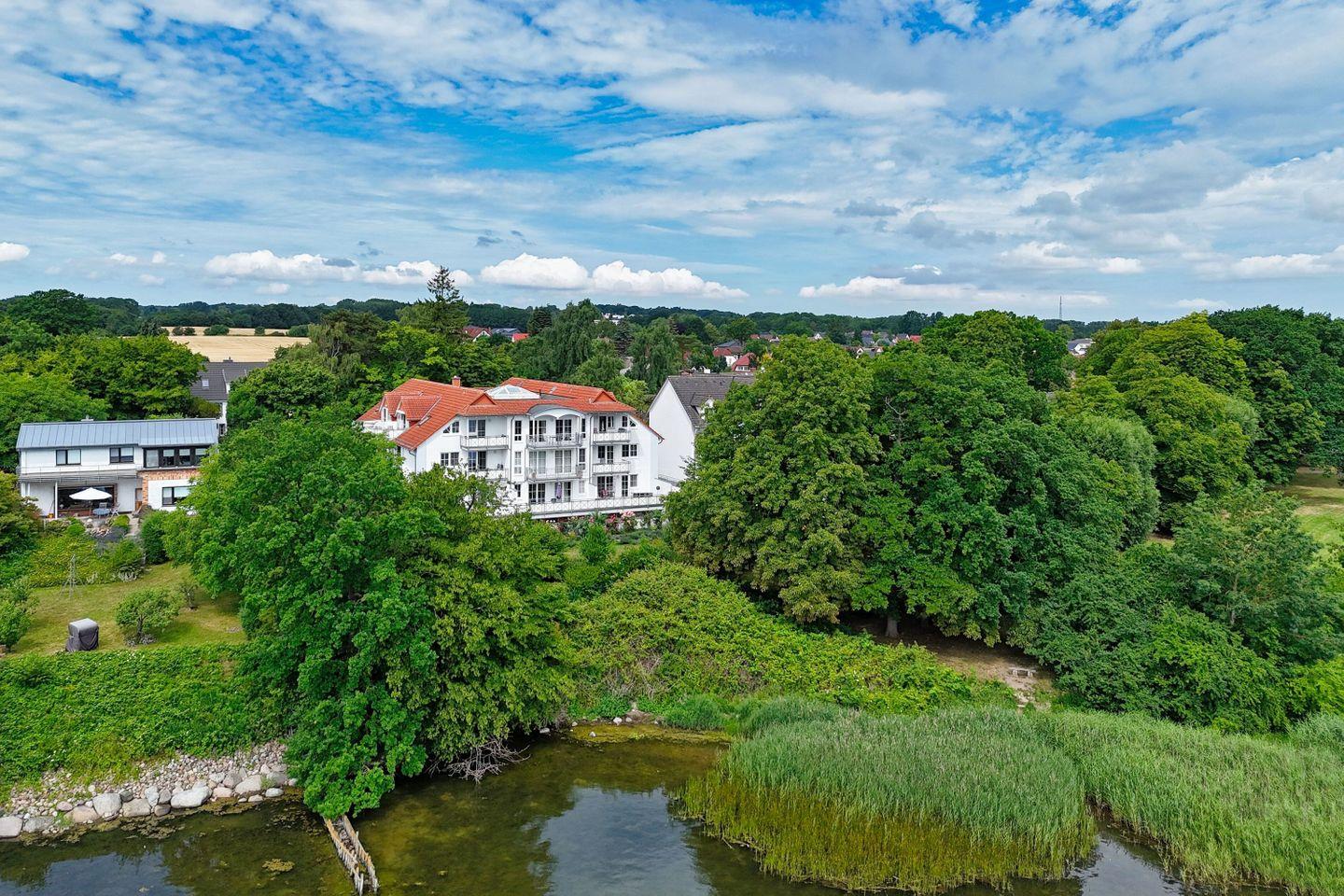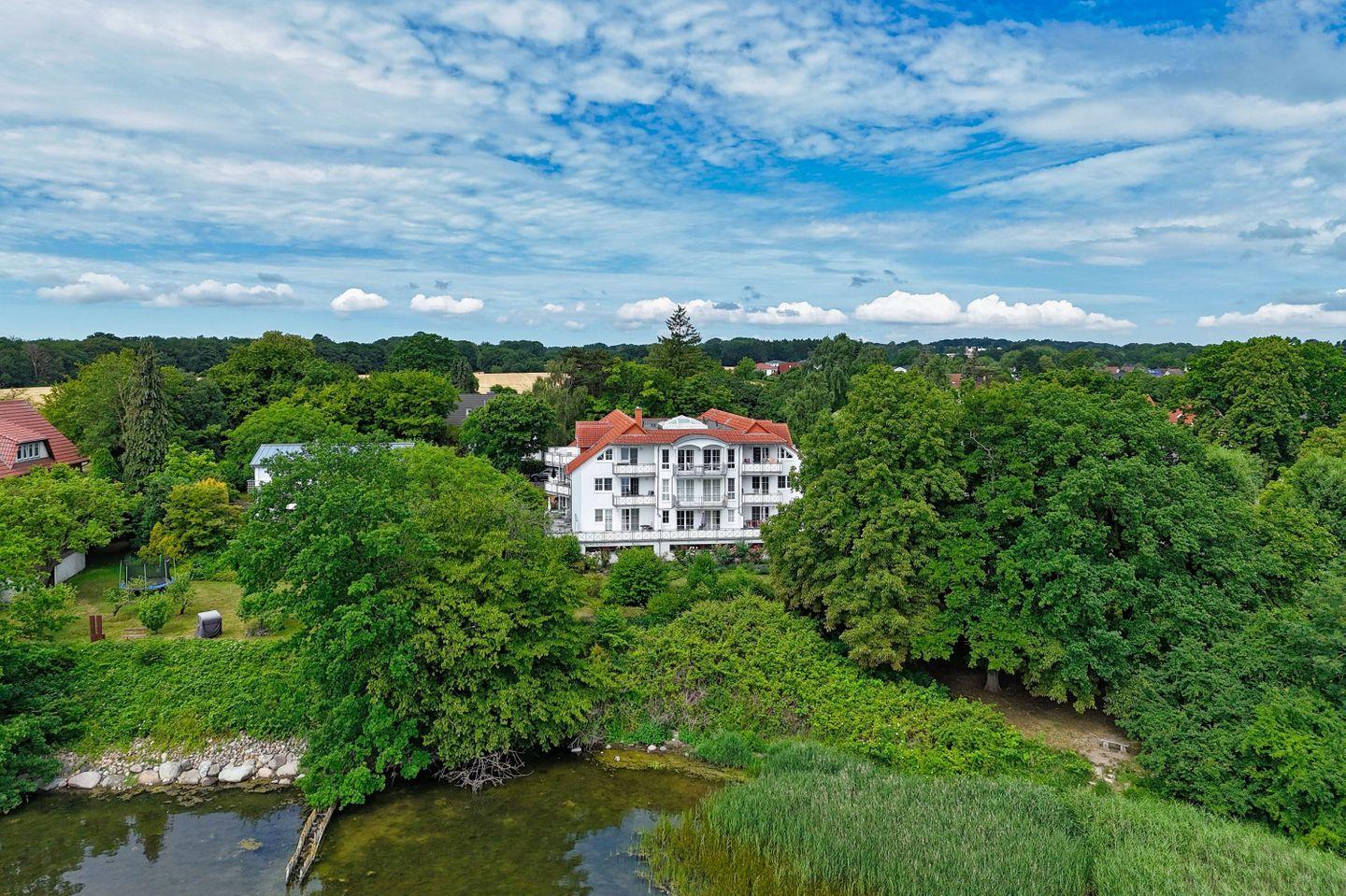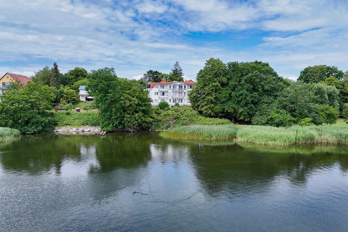 Das Haus liegt an einer ruhigen Nebenstraße und verfügt über einen schönen Garten, der einen traumhaften Blick über den Bodden und auf die Insel Vilm bietet. Die Entfernung zum Bodden beträgt 50 m und man hat einen direkten Wasserzugang von der Villa aus. Hier können Sie das rege Treiben auf dem Wasser beobachten.