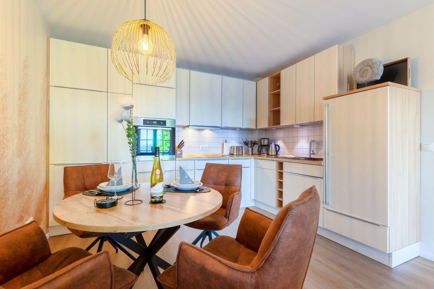 KÜCHE // Küchenzeile, Ceranfeld, Spülmaschine, Kühlschrank mit Gefrierfach, Backofen, Mikrowelle, Toaster, Wasserkocher, Kaffeemaschine, reichlich Besteck, Geschirr und Küchenutensilien ++