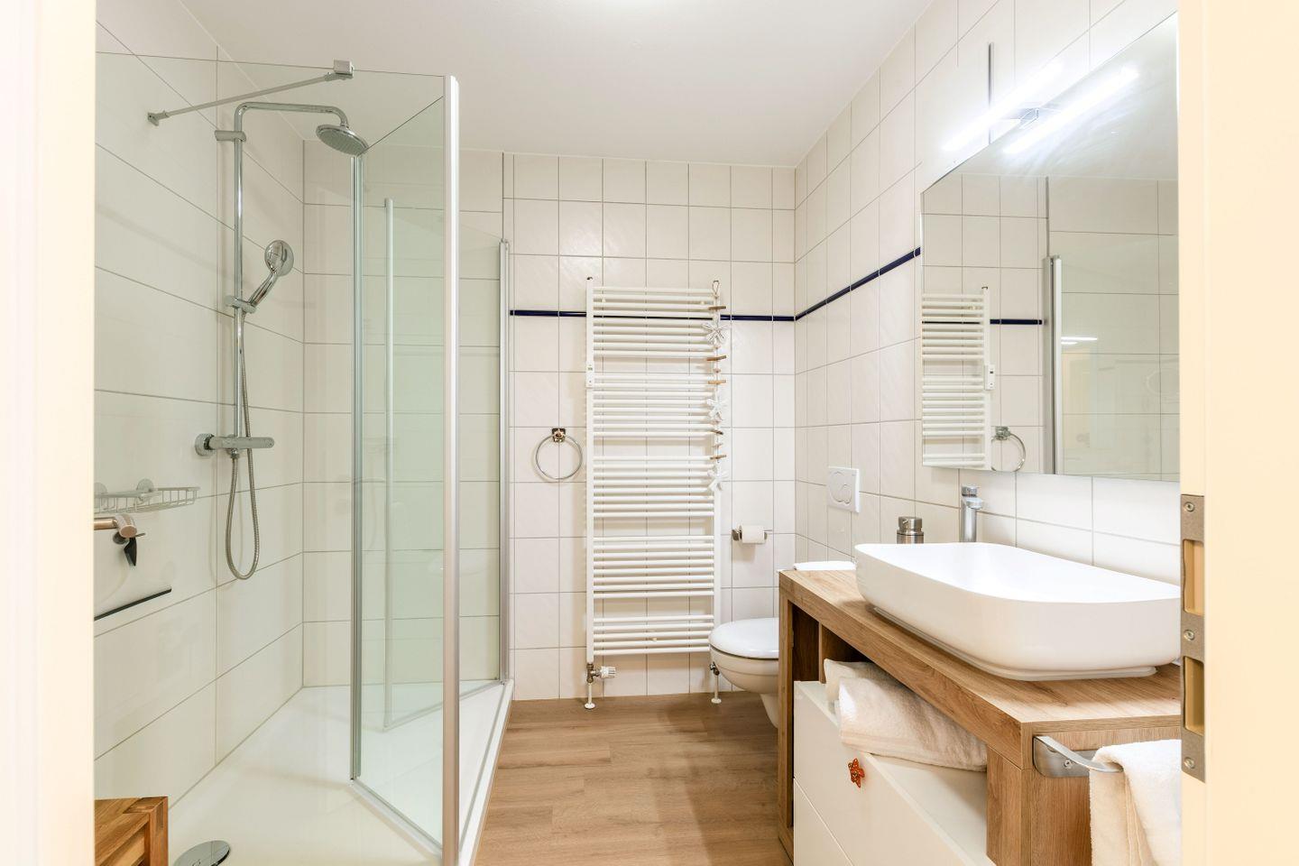 BAD // innen liegendes Badezimmer mit Dusche, Waschtisch und WC ++
