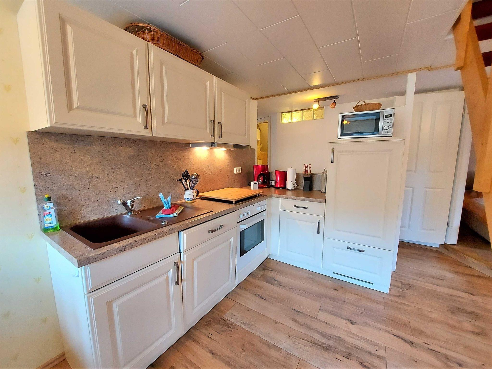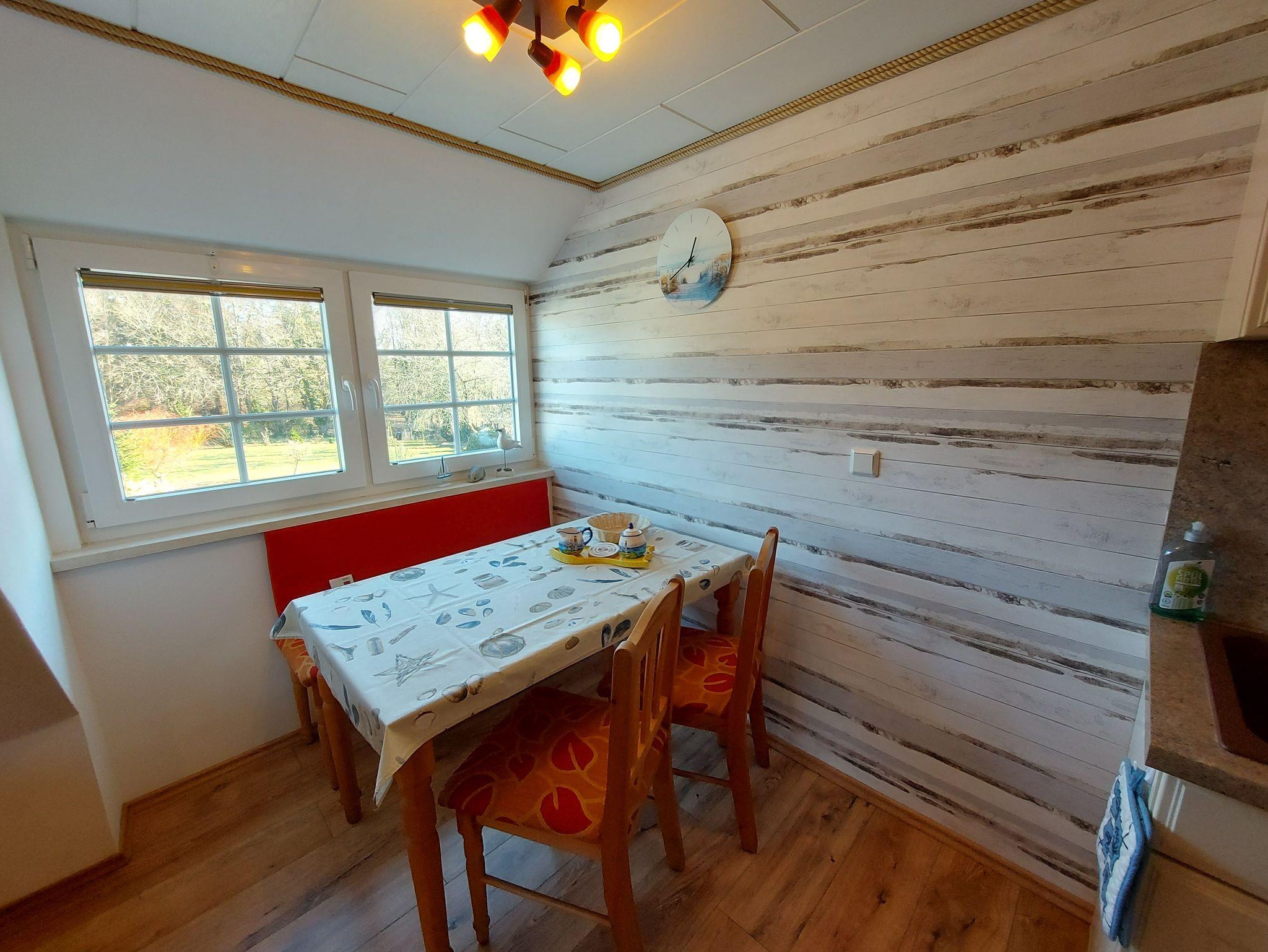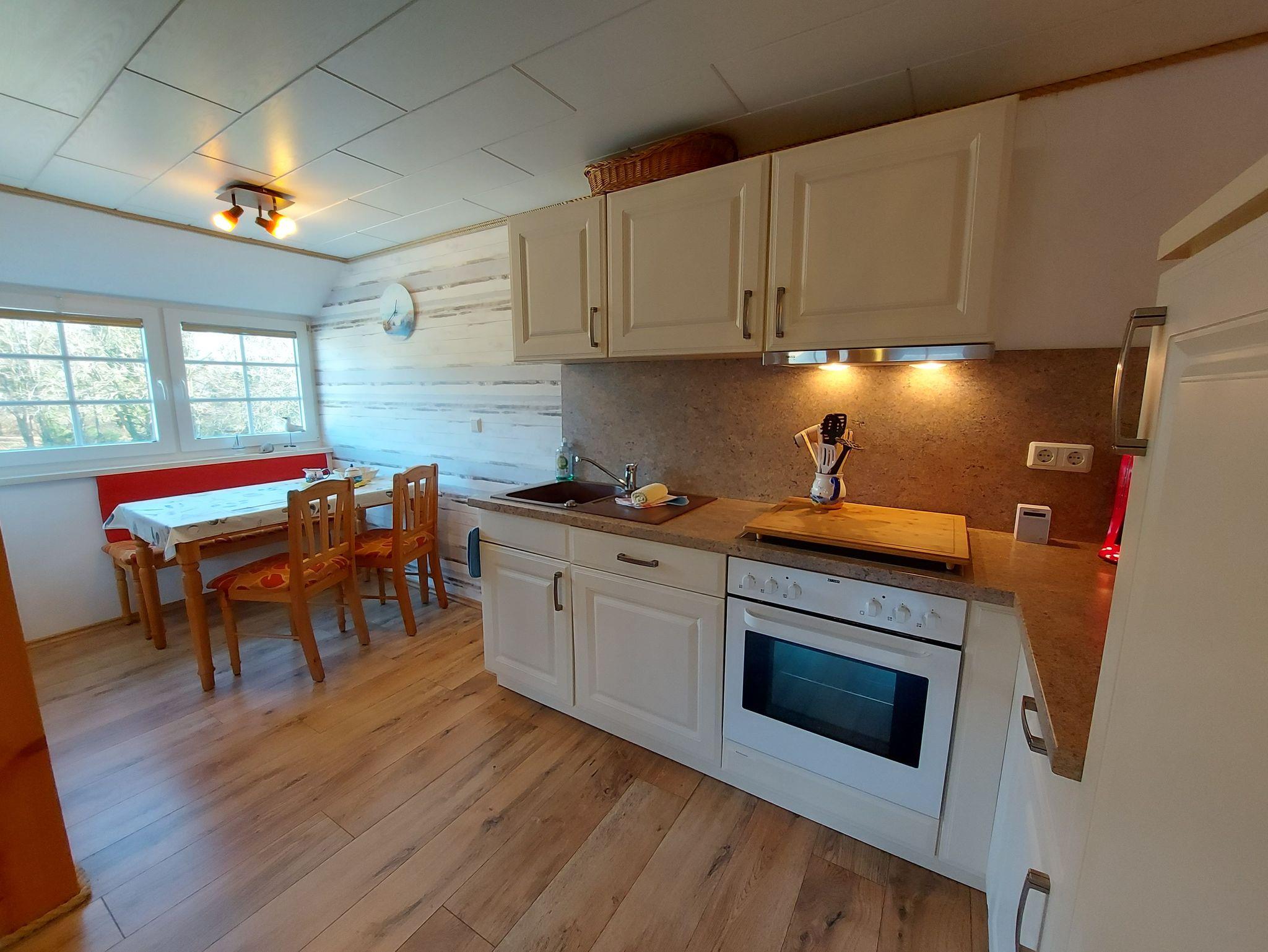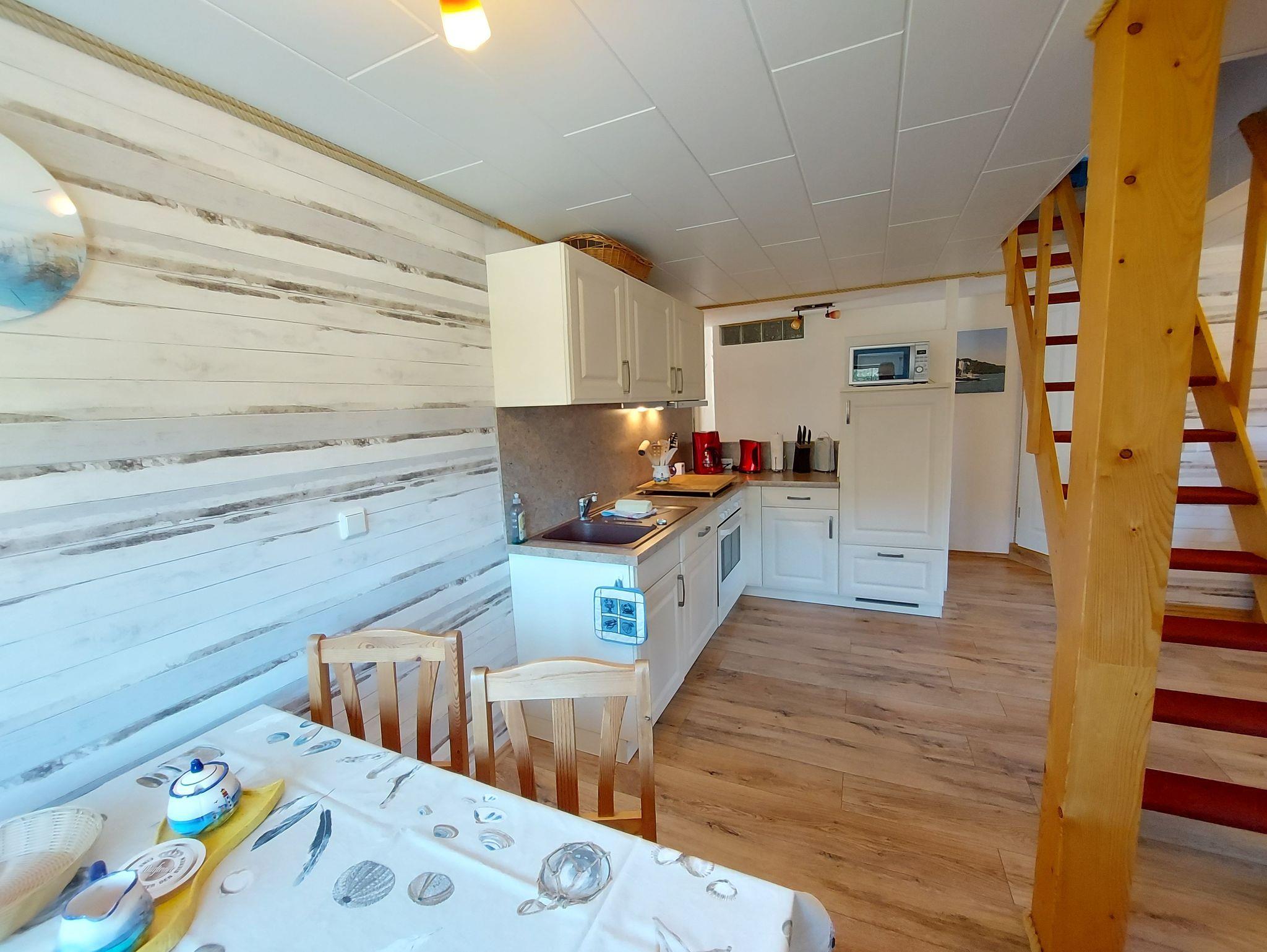 Ferienwohnung Putbus OT Kasnevitz. Im Dachgeschoss unseres Reetgedeckten Landhauses erstreckt sich diese schicke Wohnung über 2 Etagen.Das Haus liegt in einem schönen Dorf 3km von der Fürsten- und Rosenstadt Putbus entfernt. Sie besteht aus dem Eingangsbereich mit Garderobe,einem grossen Wohnraum, Essplatz für 4 Personen mit Blick in den großen Garten und Einbauküche mit allem Komfort (4 Platten Ceranfeld,Backofen mit Umluft, KühlGefrierkombi, Geschirrspüler, Kaffeemaschine, Toaster, Wasserkocher, Mikrowelle). Der Wohnbereich ist mit einer gemütlichen Eckcouch, mit hochwertigen Holzmöbeln und mit Sateliten TV ausgestattet. Auf dieser Etage befindet sich noch ein Schlafzimmer mit Doppelbett mit hochwertigen Kaltschaummatratzen auf verstellbaren Lattenrahmen und ein sehr schickes Bad mit Dusche. Über eine Holztreppe gelangen sie ins Obergeschoss wo sich ein Schlafbereich mit 2 Einzelbetten und ein weiteres WC Bad mit Waschbecken befindet. Im Garten haben sie eigene Sitzecken mit hochwertigen Holzmöbeln und Sonnenliegen. Fahrradunterstellmöglichkeit vorhanden.