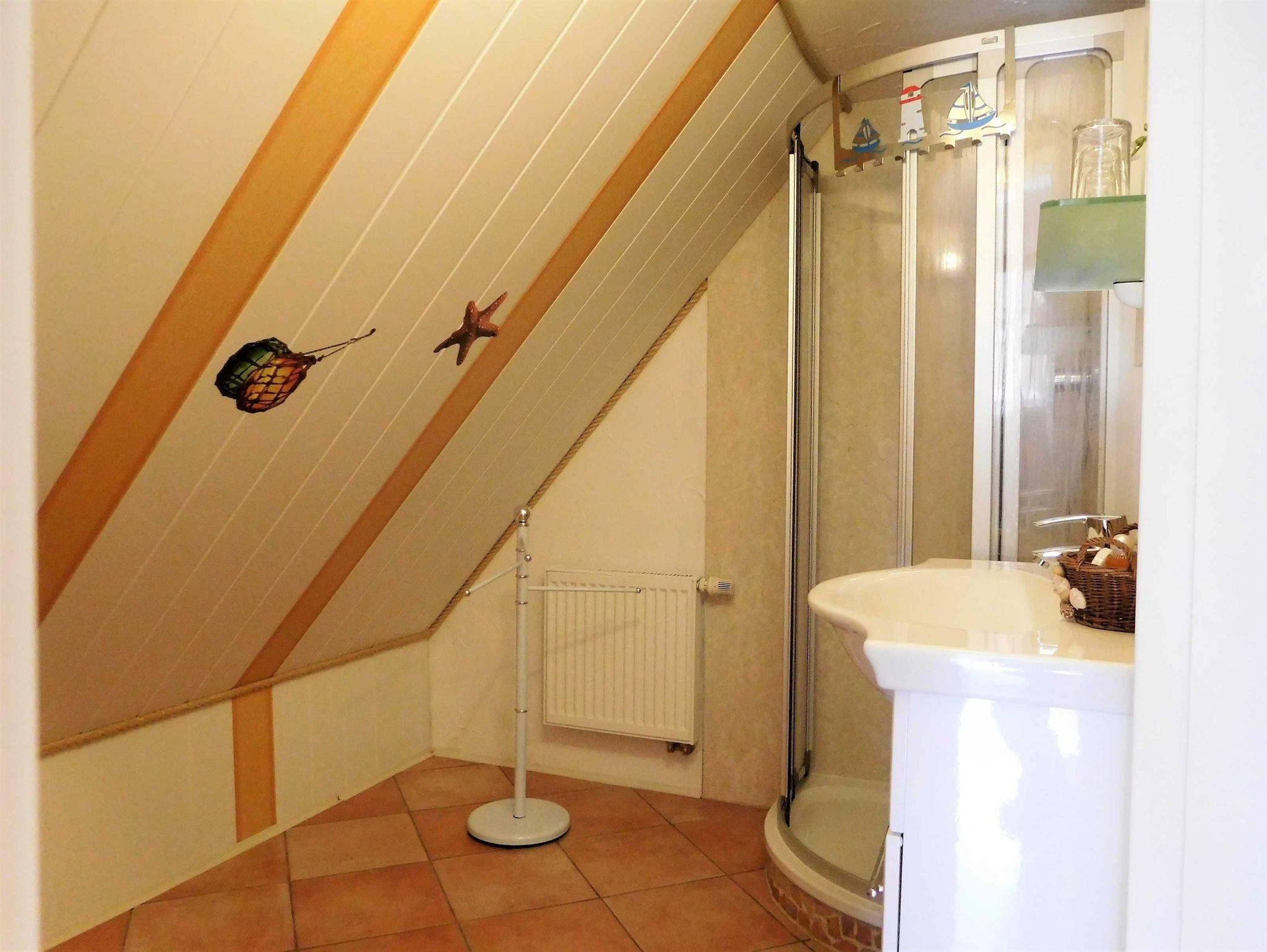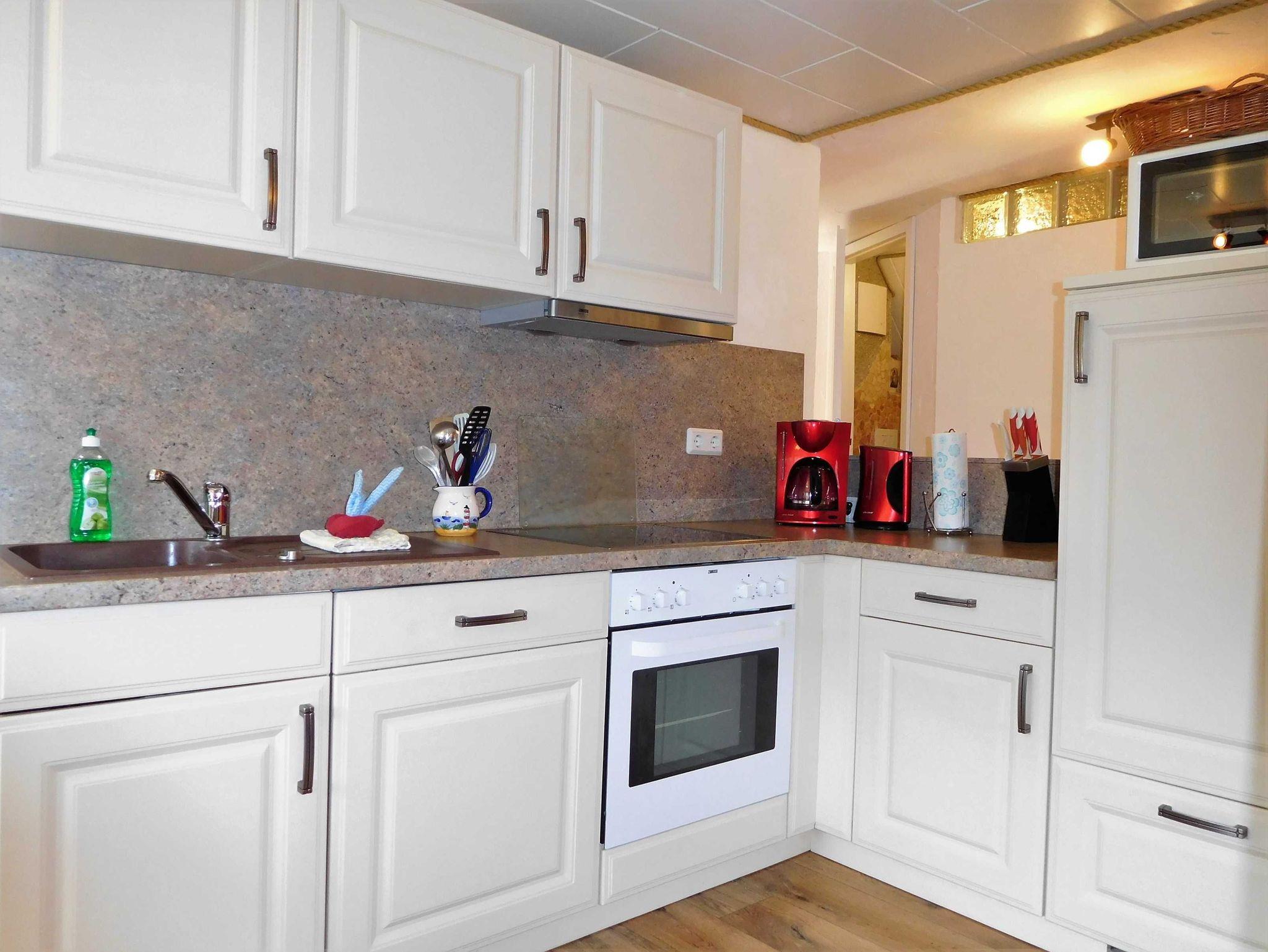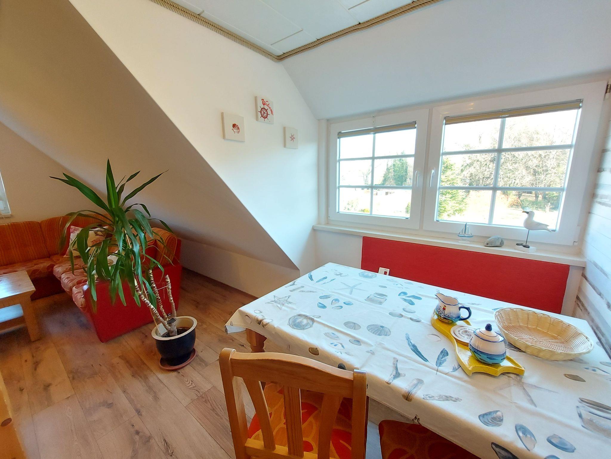 Ferienwohnung Putbus OT Kasnevitz. Im Dachgeschoss unseres Reetgedeckten Landhauses erstreckt sich diese schicke Wohnung über 2 Etagen.Das Haus liegt in einem schönen Dorf 3km von der Fürsten- und Rosenstadt Putbus entfernt. Sie besteht aus dem Eingangsbereich mit Garderobe,einem grossen Wohnraum, Essplatz für 4 Personen mit Blick in den großen Garten und Einbauküche mit allem Komfort (4 Platten Ceranfeld,Backofen mit Umluft, KühlGefrierkombi, Geschirrspüler, Kaffeemaschine, Toaster, Wasserkocher, Mikrowelle). Der Wohnbereich ist mit einer gemütlichen Eckcouch, mit hochwertigen Holzmöbeln und mit Sateliten TV ausgestattet. Auf dieser Etage befindet sich noch ein Schlafzimmer mit Doppelbett mit hochwertigen Kaltschaummatratzen auf verstellbaren Lattenrahmen und ein sehr schickes Bad mit Dusche. Über eine Holztreppe gelangen sie ins Obergeschoss wo sich ein Schlafbereich mit 2 Einzelbetten und ein weiteres WC Bad mit Waschbecken befindet. Im Garten haben sie eigene Sitzecken mit hochwertigen Holzmöbeln und Sonnenliegen. Fahrradunterstellmöglichkeit vorhanden.