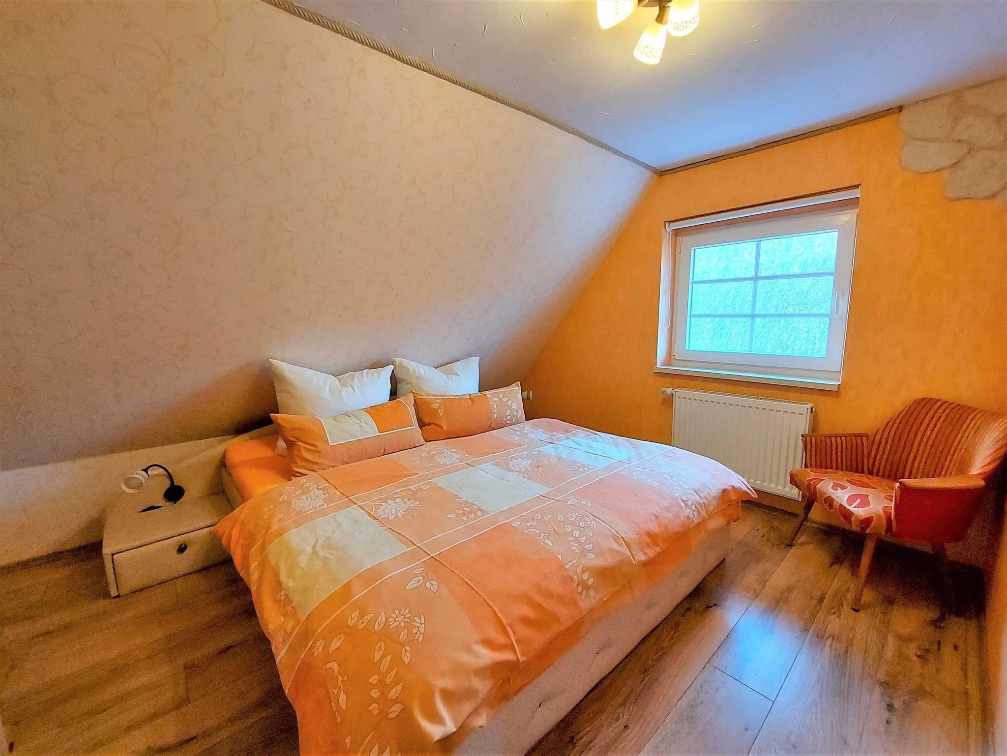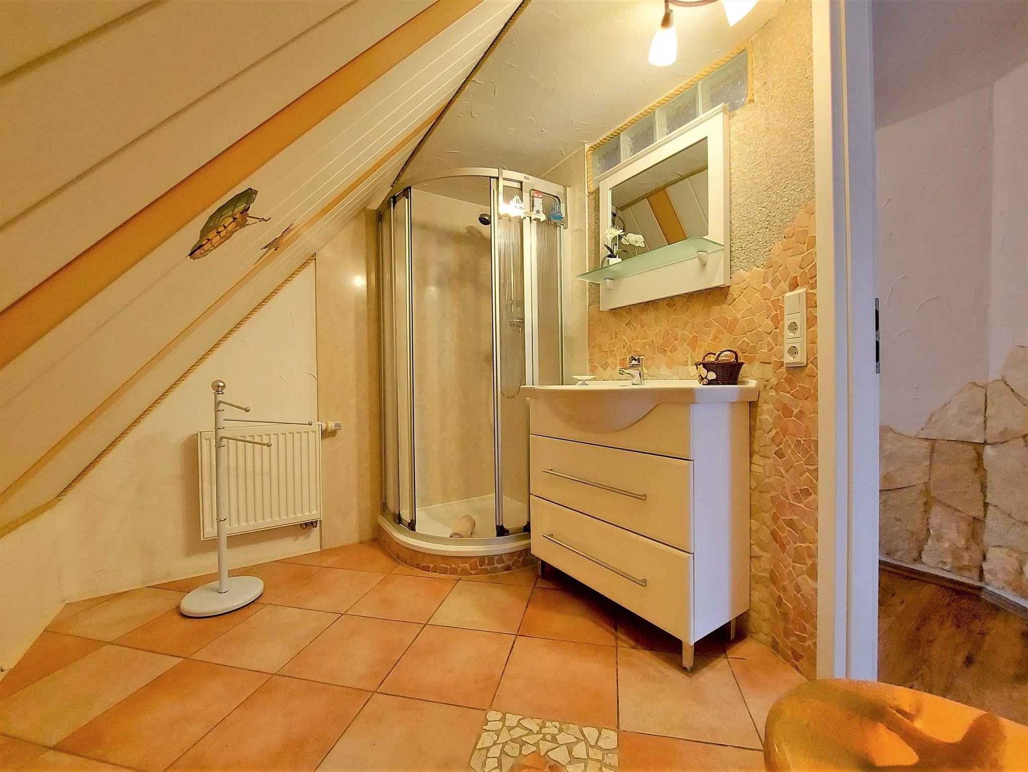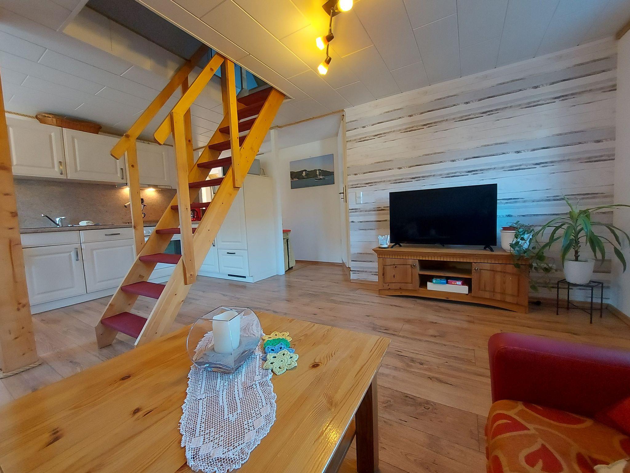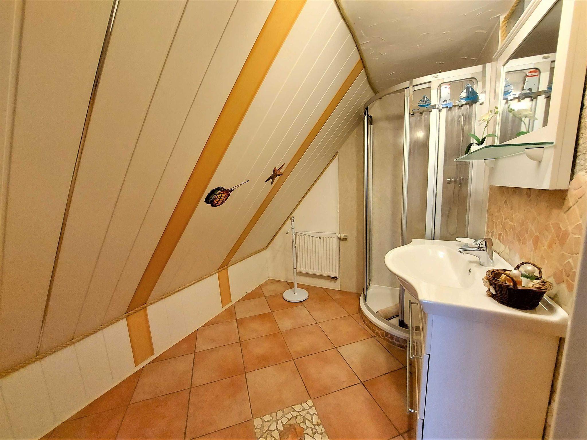 Ferienwohnung Putbus OT Kasnevitz. Im Dachgeschoss unseres Reetgedeckten Landhauses erstreckt sich diese schicke Wohnung über 2 Etagen.Das Haus liegt in einem schönen Dorf 3km von der Fürsten- und Rosenstadt Putbus entfernt. Sie besteht aus dem Eingangsbereich mit Garderobe,einem grossen Wohnraum, Essplatz für 4 Personen mit Blick in den großen Garten und Einbauküche mit allem Komfort (4 Platten Ceranfeld,Backofen mit Umluft, KühlGefrierkombi, Geschirrspüler, Kaffeemaschine, Toaster, Wasserkocher, Mikrowelle). Der Wohnbereich ist mit einer gemütlichen Eckcouch, mit hochwertigen Holzmöbeln und mit Sateliten TV ausgestattet. Auf dieser Etage befindet sich noch ein Schlafzimmer mit Doppelbett mit hochwertigen Kaltschaummatratzen auf verstellbaren Lattenrahmen und ein sehr schickes Bad mit Dusche. Über eine Holztreppe gelangen sie ins Obergeschoss wo sich ein Schlafbereich mit 2 Einzelbetten und ein weiteres WC Bad mit Waschbecken befindet. Im Garten haben sie eigene Sitzecken mit hochwertigen Holzmöbeln und Sonnenliegen. Fahrradunterstellmöglichkeit vorhanden.