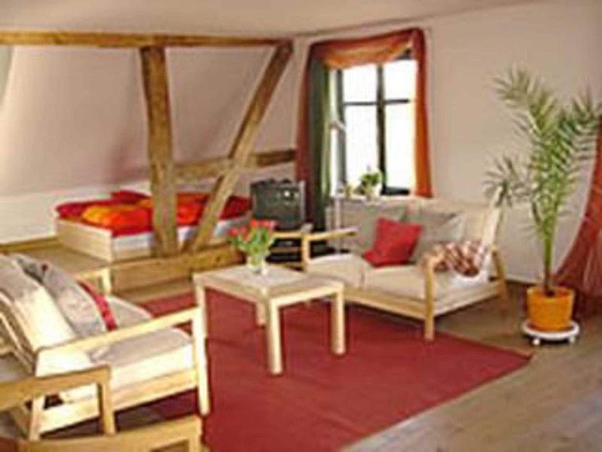 Das Gartenzimmer ist ?ein riesiges Zimmer? (Gruppenraum) mit 60 m² im ersten Stock. Das sehr helle Zimmer hat einen Blick nach Osten, Süden, Westen. Eine Sitzecke mit zwei Sofas und Tisch schafft eine Atmosphäre zum Verweilen. TV mit Satellitenanschluss ist vorhanden. Die Schrankküche erlaubt eigene Gerichte herzustellen und ist mit allem ausgestattet was man braucht. Maximal sind 6 Schlafgelegenheiten zu nutzen. Es gibt eine Dusche und ein seperates WC mit Waschgelegenheit.