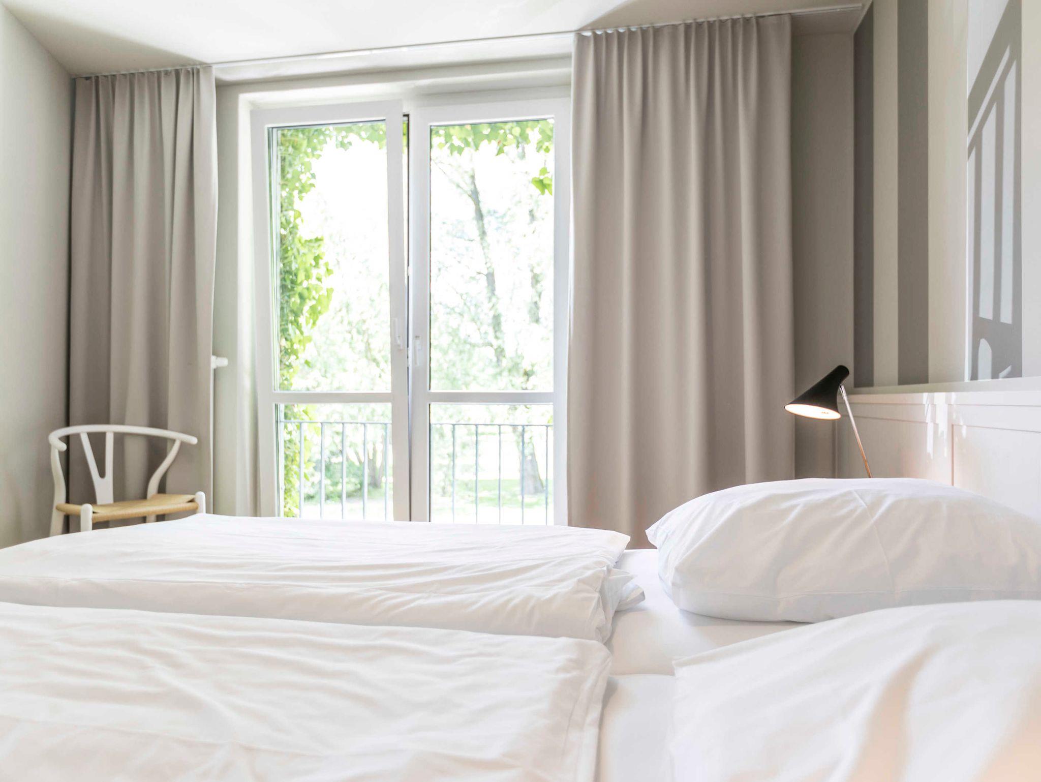 Zwei Schlafräume mit Doppelbetten und ein Wohnraum mit Aufbettung für zwei Personen (Schlafcouch), Küchenzeile, SAT-TV, Musikanlage, Bad mit WC und Dusche, Balkon oder Terrasse.