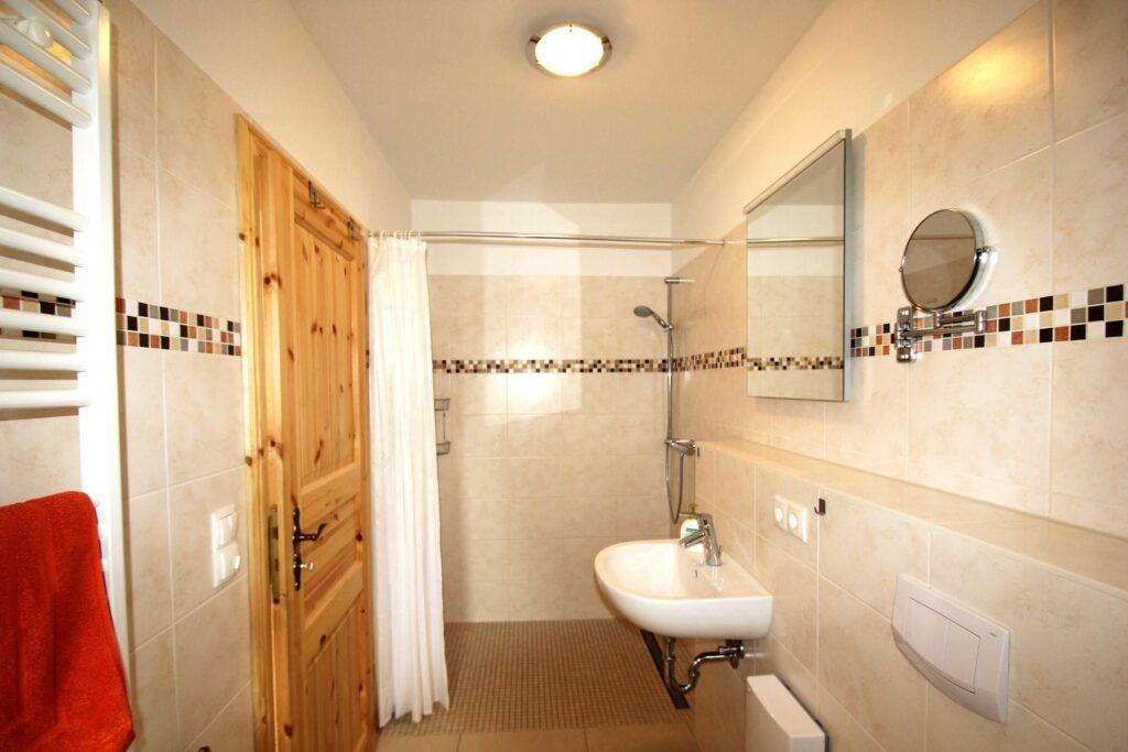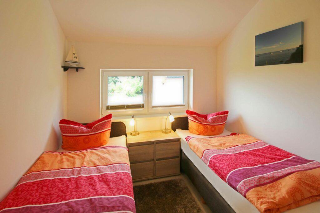Zwei Schlafzimmer stehen Ihnen zur Verfügung, eines mit Doppelbett und eines mit zwei Einzelbetten. Das Tageslichtbad verfügt über eine bodengleiche Dusche und eine Waschmaschine.