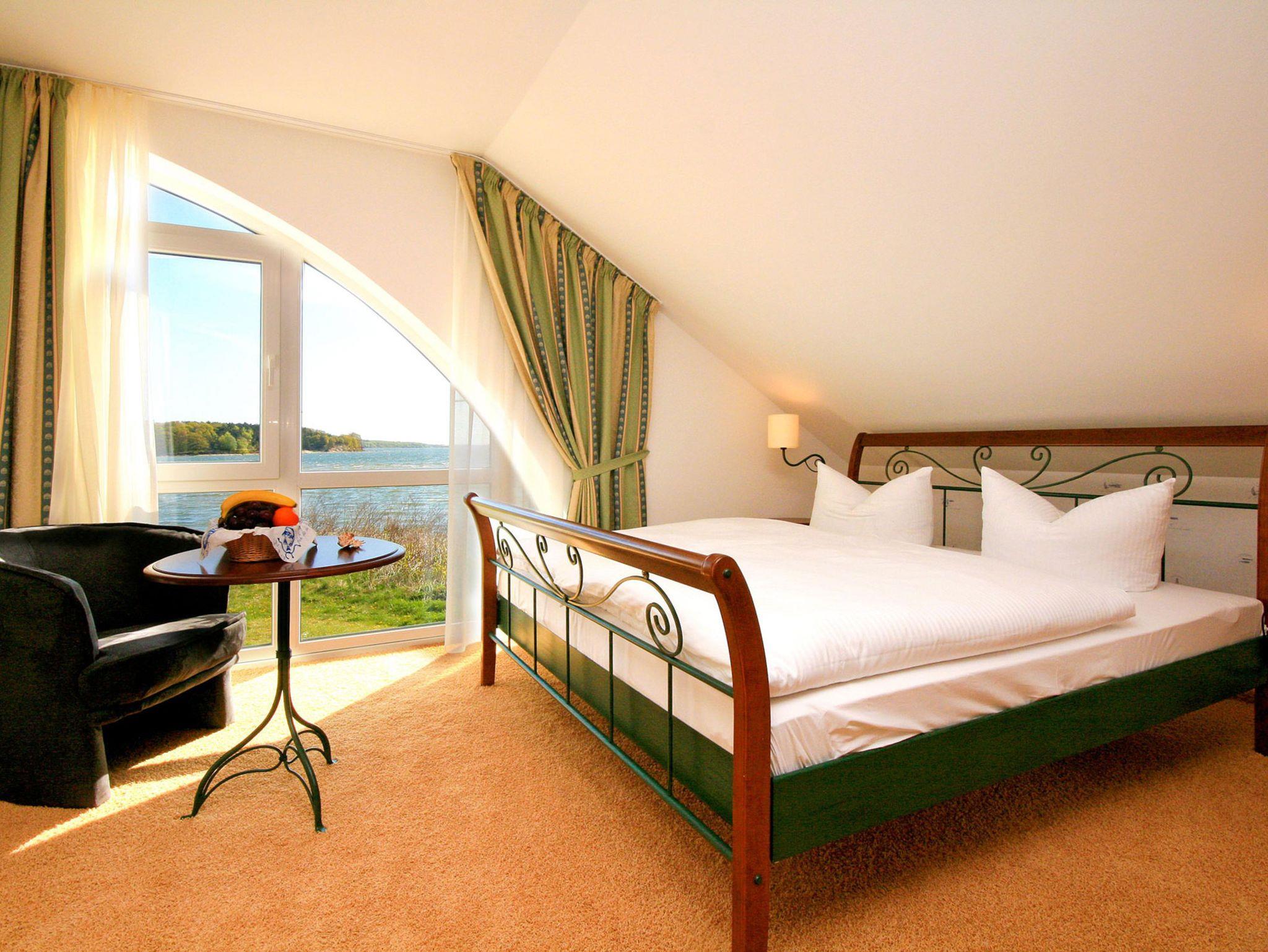 Unsere modern und originell eingerichteten Hotelzimmer (Minibar, Telefon, Dusche/WC, Flachbild-TV, Internet, teilw. Terrasse, max. 4 Gäste) liegen ruhig in dem kleinen Fischerdorf Neukamp, im südöstlichen Teil Rügens, wenige Schritte vom Rügenschen Bodden entfernt und ringsum von Wasser umgeben. Teilweise haben Sie einen herrlichen Blick auf den Rügenschen Bodden.